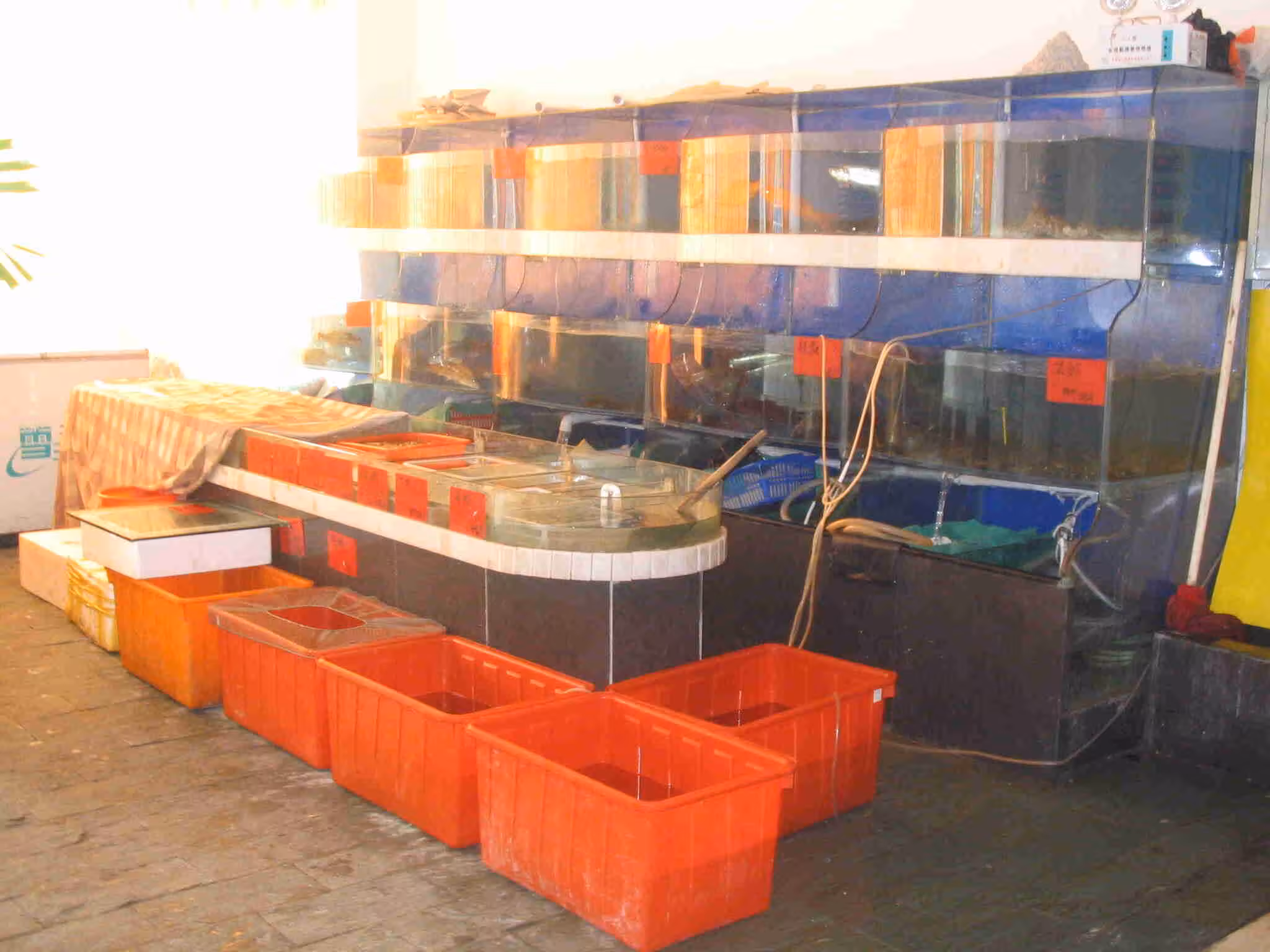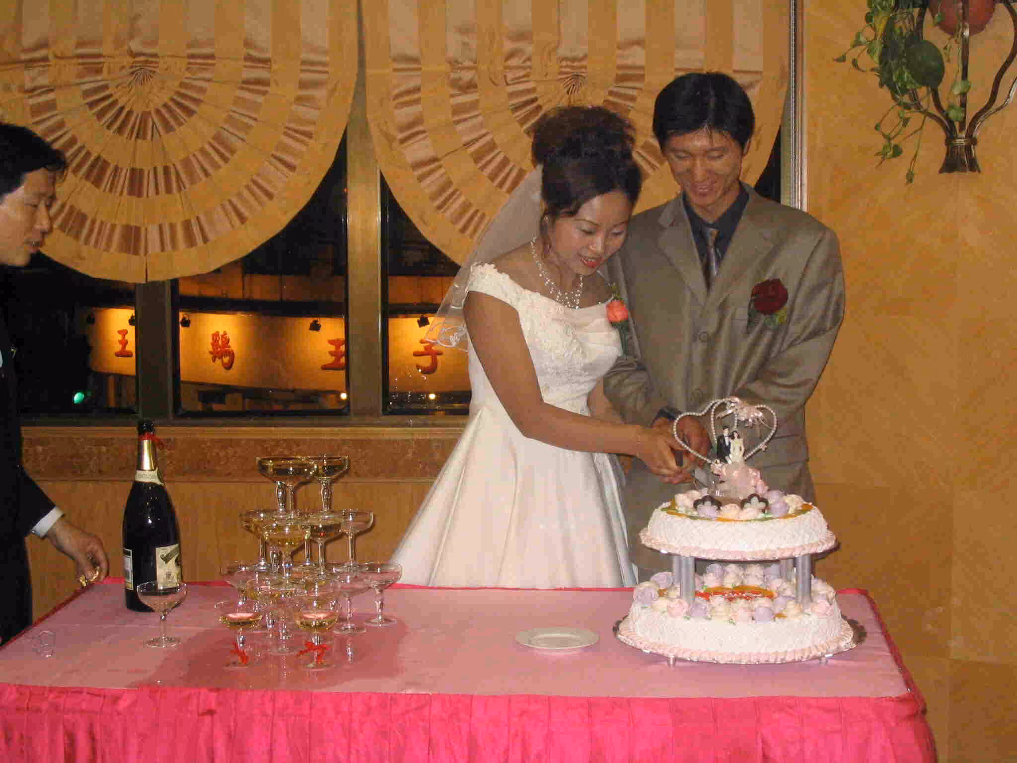 As “Wedding Part 1” was hosted by the bride’s parent. This time “Wedding Part 2”, held on Friday, was an urban (Shanghai) celebration hosted by the groom’s parent. Again we got the fireworks announcement that the bride and groom had arrived. The majority of the attendees had been bused over from the bride’s small town. For lunch, the group of 30 or so walked over to a local restaurant where three connecting private rooms accommodated us. I noticed that most large restaurant maintain several aquariums on their premises to offer fresh seafood and other delicacies (snake, turtle, etc). After a break of a few hours, the group re-assembled to be bused into the downtown area, at a nice restaurant near Nanjing Road. There a larger group had showed up to celebrate the newly weds. Again much eating, drinking and smoking took place. A old custom among Chinese is to “bottom-up” with others at the table. Thank God, Jenny explained to some that it was not one of my customs (actually I don’t really know what see told them!). By now, I had discovered that a plate of watermelon usually marked the end of meal. I was always eager to see the watermelon arrive – but this time they did not have any (just to confuse me a bit more!).