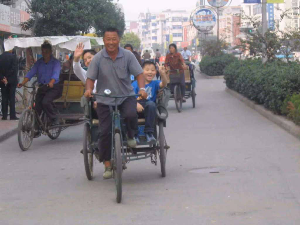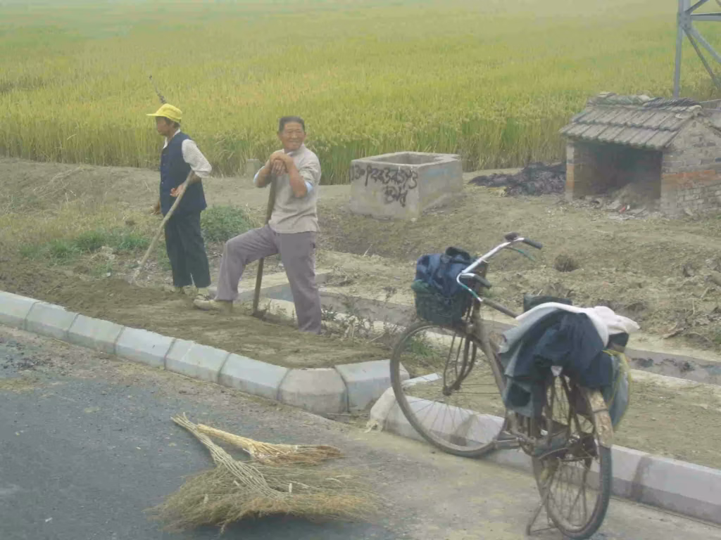 The next day Wedding Part 3 started with a small contingent of the immediate bride and groom family members embarking at 11am on a local city bus to get to the long-distance bus station. There we boarded a bus for a 5 hour journey to the town of Funing – where Jenny’s mom was raised and where her mom’s brother and sister still live. The bus ride was another opportunity to see a bit more of the countryside – although mostly from the highway. Arriving in Funing, we were lodged, courtesy of the groom’s parent, at a very nice hotel. For supper, we were invited at the restaurant. In the evening, we walked the waterfront. The next morning, we walked over to Jenny’s uncle’s apartment (retired doctor). Jenny and her younger brother had not visited their uncle for the past 20 years, although the uncle had visited them in Shanghai a number of times. After several hours of lively discussion, the group walked to a local restaurant for lunch. Jenny had hinted that we could possibly try cycling in this small town (pop. 100,000) in the afternoon. We started the afternoon by visiting the countryside, by car, where Jenny’s mom lived – a truly rural area. There, we finally saw large rice fields. Victoria was really happy to discover where her rice came from. I enjoyed the up-close and personal walk of this rural area.