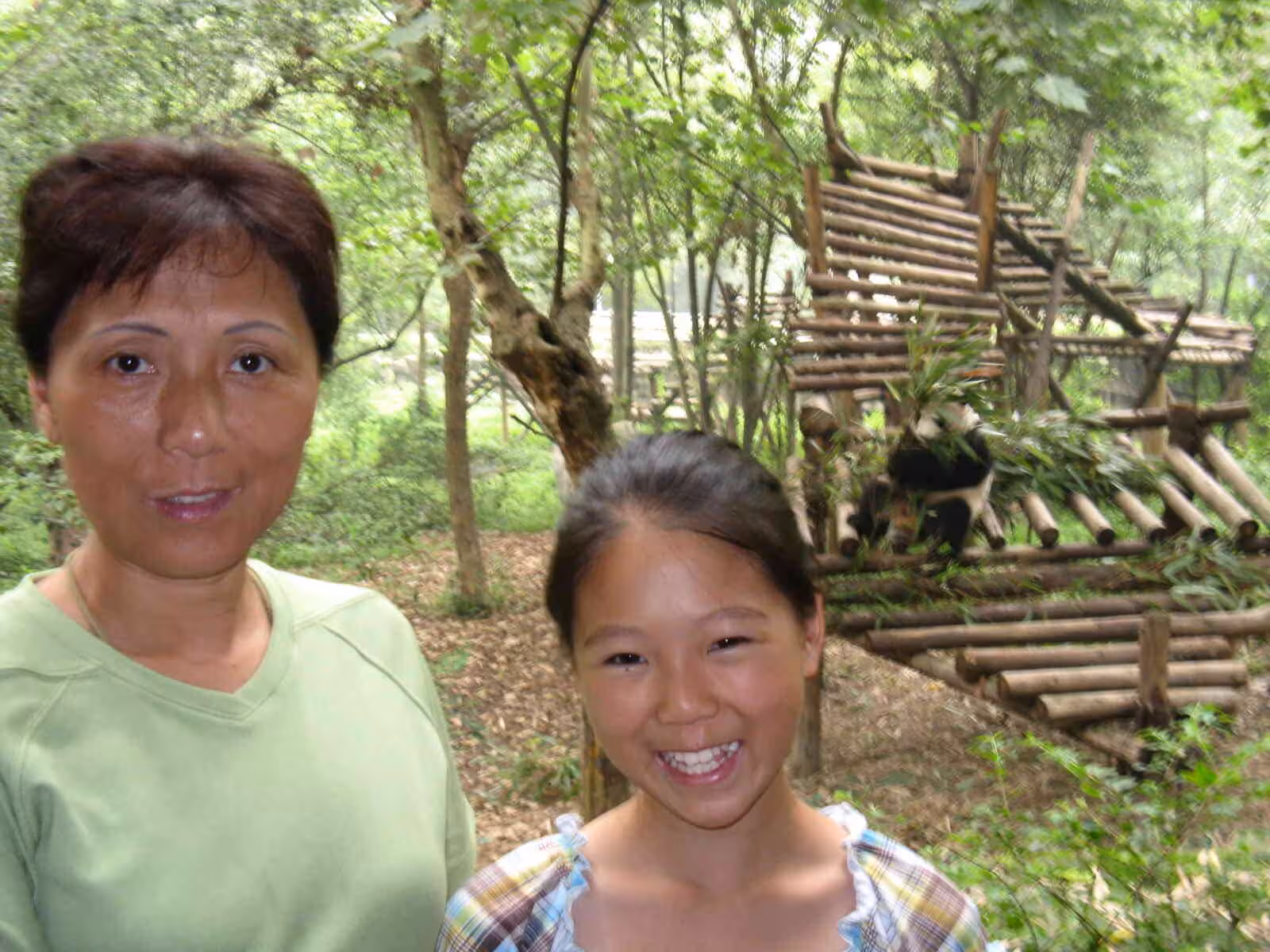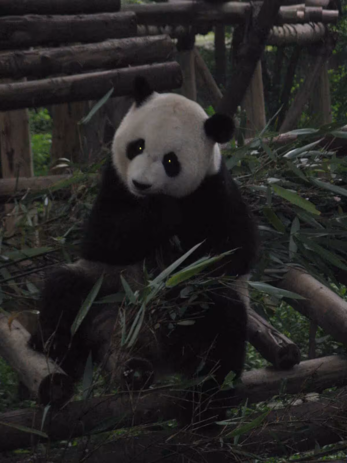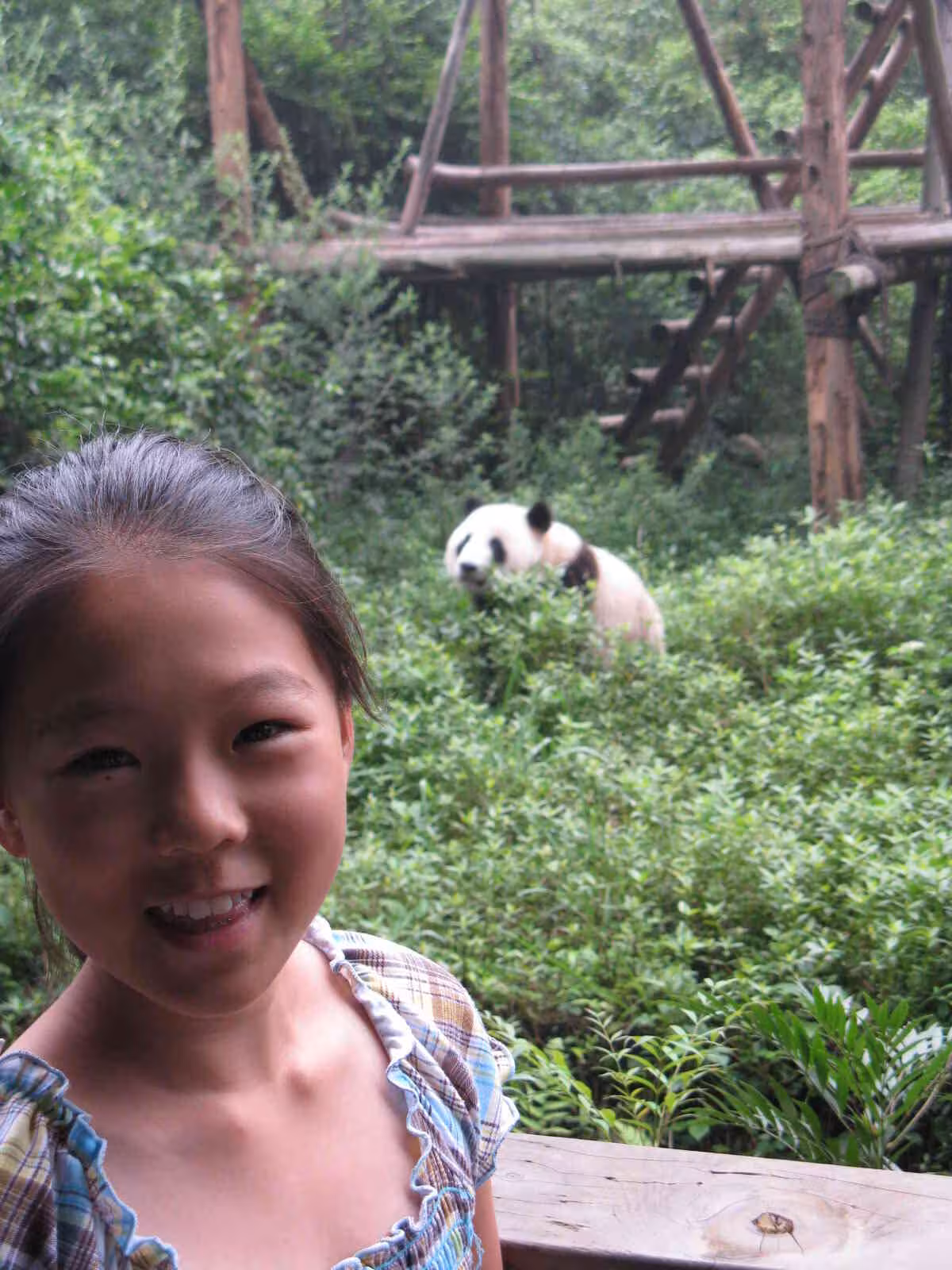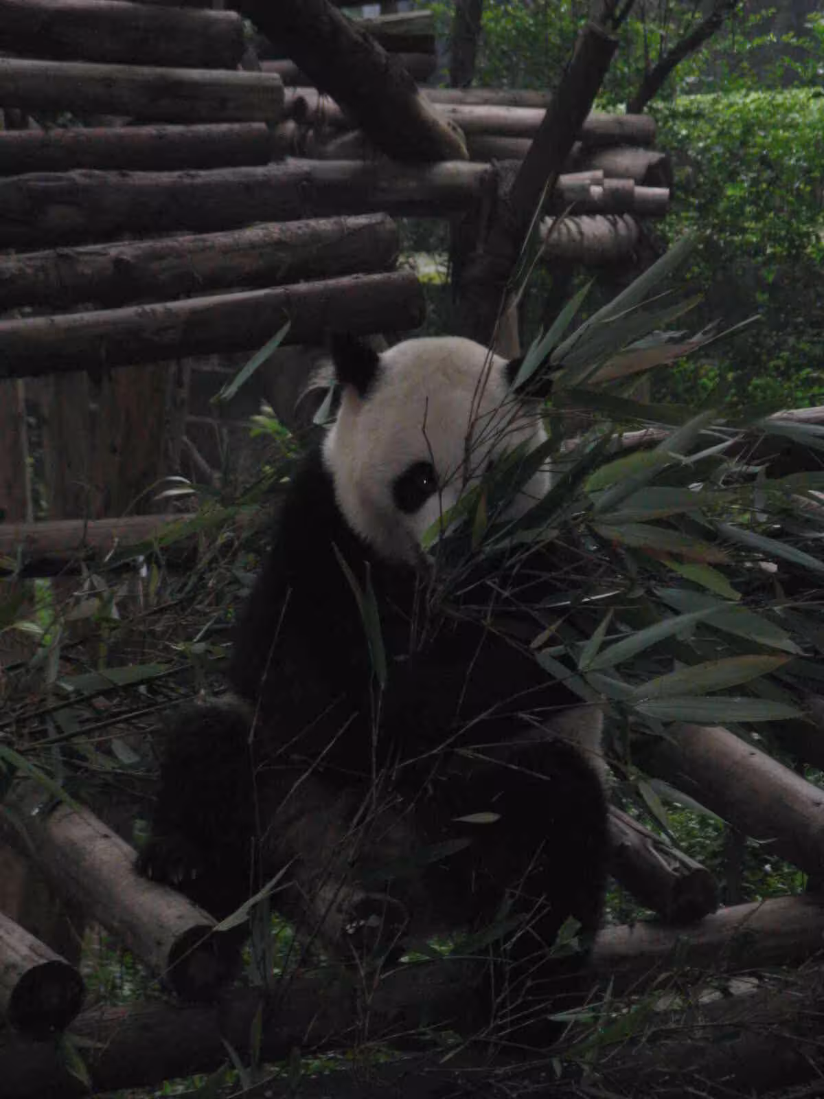 On Wednesday July 22, we left our hotel early morning to visit the famous Panda Breeding Center. After a bus ride followed by a rickshaw ride, we arrived at the entrance of the Center by 8am, we learned that the Center would only open at 9:30am this morning instead of its usual 9am. The reason for this delay was linked to the full sun eclipse scheduled for ~9am. The authorities wanted time to observe the behavior of the pandas during the eclipse. By 8:30, a bunch of โlaowaysโ (foreigners) had started to show up at the entrance and started to voice their disappointment to the authorities about the late opening. The protest did not have any impact… we still ended up waited until 9:30 for the park entrance. The long wait allowed plenty of time to talk travel experience among the foreigners in line for tickets. One couple from France had been traveling for 9 months, a couple with their two daughters have been teaching English in ShenZheng for the past few years, an older couple were at their third visit to China, a couple bicycle touring in China, … but the nicest surprise of the morning was to experience the darkening of the sky due to the sun eclipse. Although the sky was fairly covered this morning, we had a few cloud clearing long enough to see the sun being covered by the moon (full eclipse).
