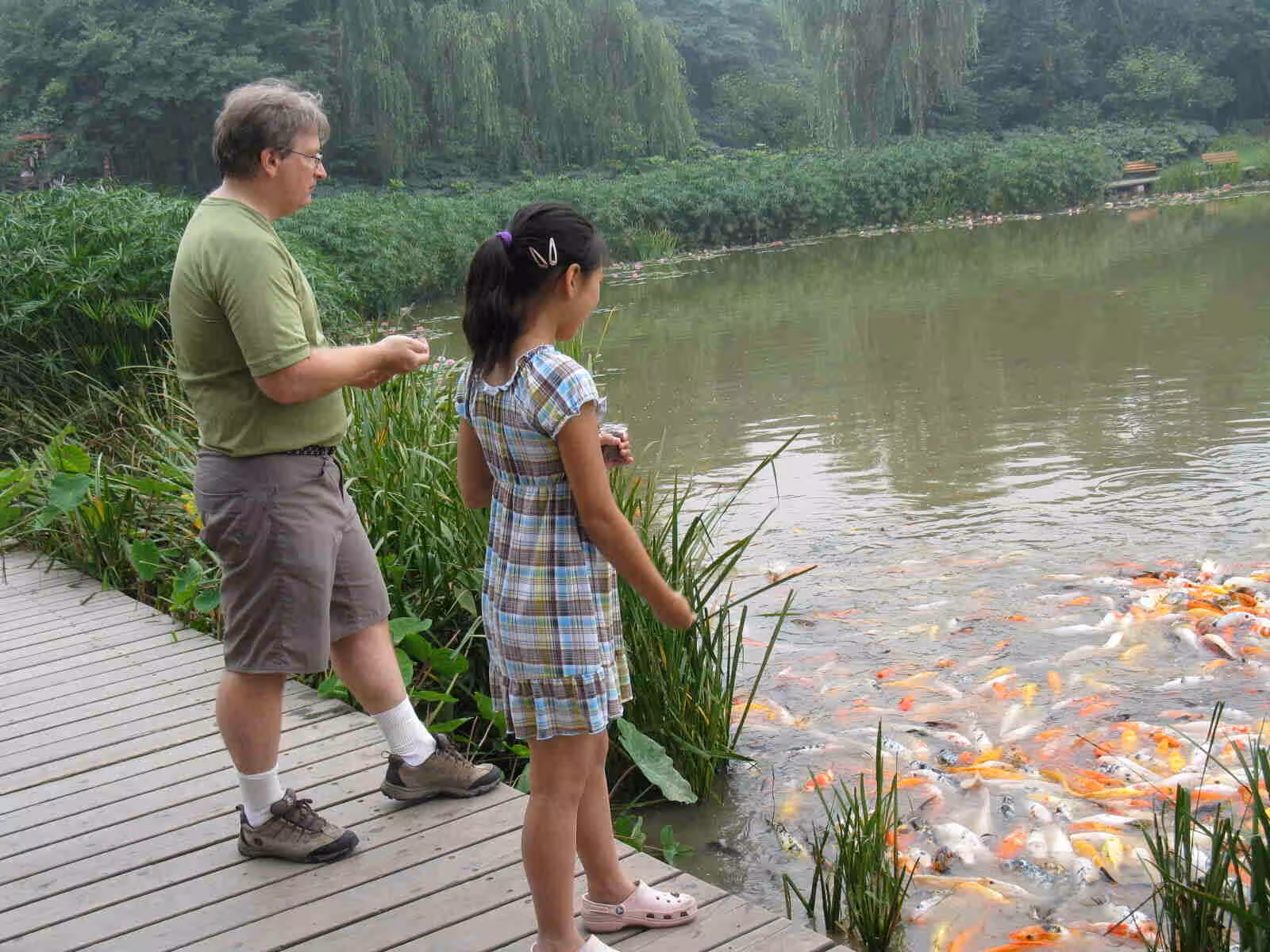 With our late night flight from Yichang, we arrived at Chengdu airport at 1 am. We still managed to take the airport shuttle bus to the downtown area where we then took a taxi in search of a hotel. From Yichang, Jenny had contacted a few targets hotels in Chengdu but we had not been able to secure a reservation. After visiting a first hotel too expensive, we found a very nice room at the Jingdi Hotel (our most luxurious one to date!). The following morning, we slept in to recover from our late arrival. In the afternoon, we set out to visit an important municipal park but once on board the bus, a heavy rainfall came down. So we enjoyed our bus ride for the full length of the bus route.
