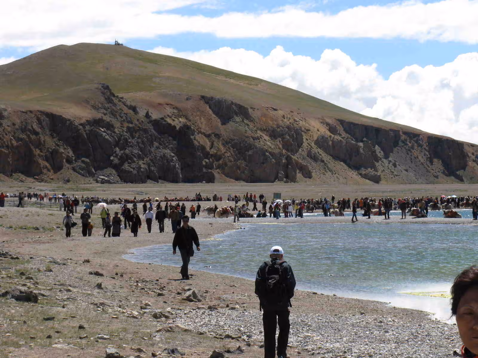 The excursion provided a great opportunity to see more of the Tibetan scenery and people. Lake NamTso was quite a popular site – as the bus load of tourists confirmed it. The lake, said to be the highest salt lake in the world at 4,718 m (1,100 m higher than Lhasa). Although we stayed on-site for only one hour, Jenny, Victoria and I all experienced some symptoms of the high altitude e.g. tingling in the finger tips, lost of breath, etc.