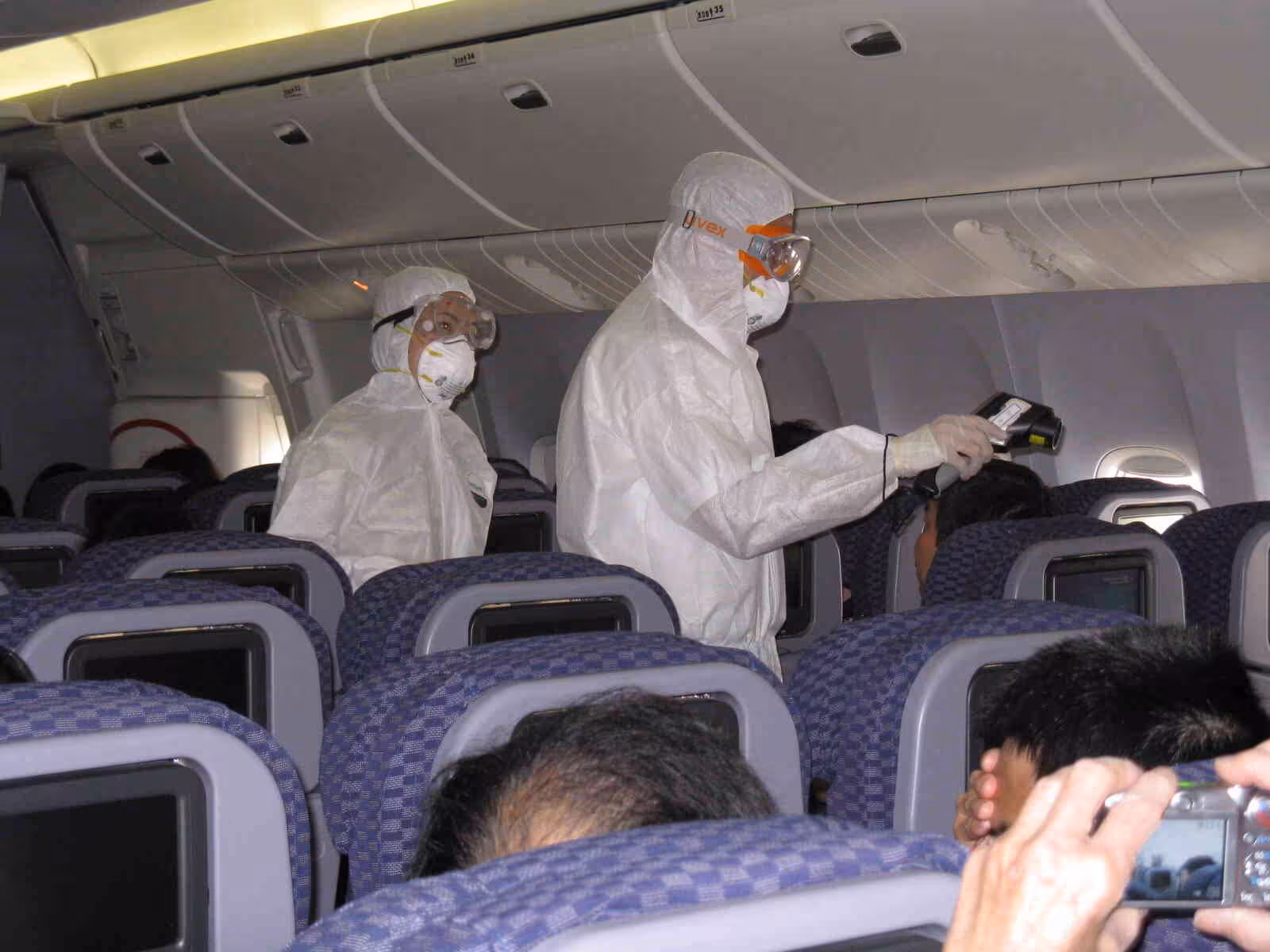 Well, we made our trek from Ottawa to Newark(1 hr) and Newark to Shanghai (13.5 hrs). Even the long flight, we apprehended so much, went well possibly because of the extensive personal entertainment system offered on-board of our plane. We got a bit nervous arriving on the tarmac in Shanghai when we learned that some folks from the Chinese health department would be coming on-board the plane to take everyone’s temperature. Equipped with a laser light reader, the two health teams entered the plane in full quarantine gear and went through each row. Just when we thought we were in the clear the lady in front of us required an additional detailed thermometer reading. Our level of concern escalated a bit because we had heard that once someone is identified with a fever the passengers around the patient are also quarantined. I guess we were lucky, the detailed temperature did not alarm anyone from the health team. N1H1 is taken very seriously. Each passenger has to fill a form to: confirm their health situation, where they plan to be in the next 7 days and finally the seat number they occupied on the plane!!