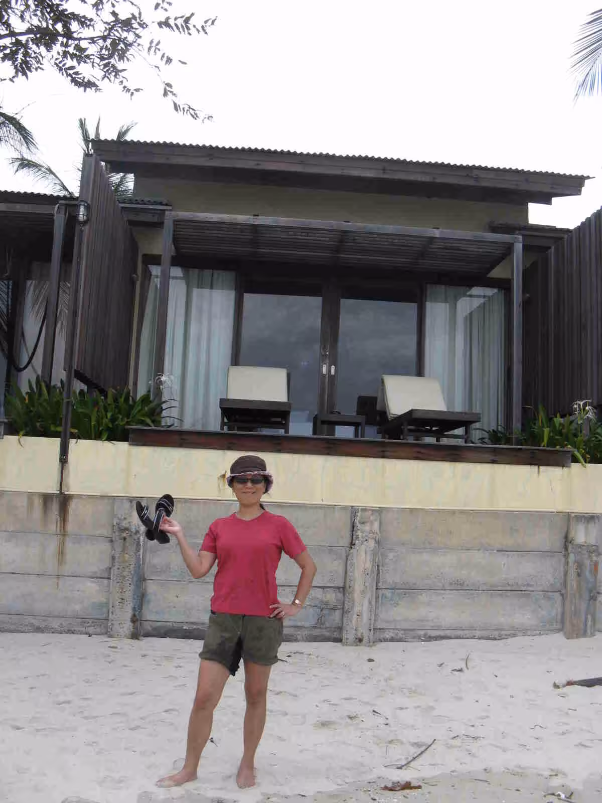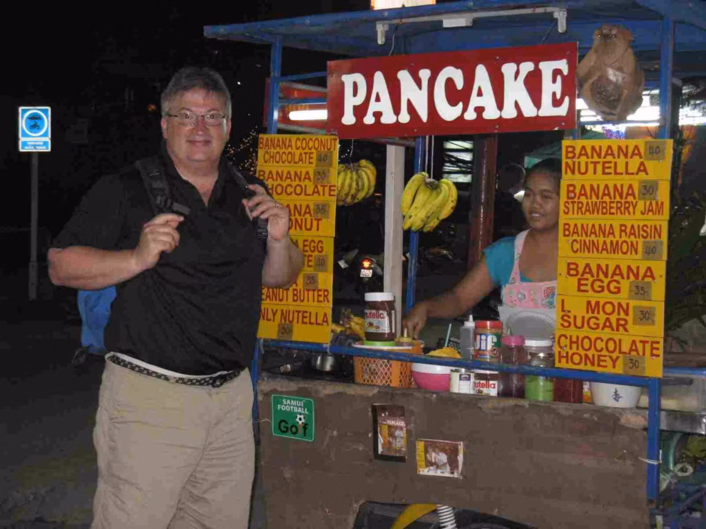 As we had booked our flight from Bangkok to Kok Samui (50 mins. south) for 6am, we left our hotel in the early morning while many tourists were just returning to the hotel after an evening out on the town so to speak. The ride to the airport was much quicker. It was somewhat funny to see the entertainment on the plane included clips from Québec’s production “Just for Laugh”. We had seen similar clips on a bus in Cuba. Arriving in Ko(h) Samui, one of three “popular” islands in this area, we thought the airport was like Walt Disney World with their trolleys to bring passengers from the plane to the airport building. A mini-bus shuttle brought us to our target hotel (Queen Boutique Hotel). By 9am, we had checked into our room. Jenny was a bit disappointed that is was not on a beach front. She was hoping of doing yoga on a porch in front of the ocean. Oh well, next time may be! Of the three popular beach destinations in Koh Samui (Chaweng, Lamai, Bo Phat), we had chosen Chaweng as it was said to be offer the best beach. On our first visit to the beach, the cloud were dark and the waves were heavy. The beach flags were all waving red but we enjoyed a long walk on the beach. In the early afternoon, a heavy rain fell down as we were having lunch at an Italian restaurant. Chaweng feels very much like Playa del Carmen in Mexico’s Yucatan Peninsula. Back at the hotel, we started to look at the long range weather forecast. It was not looking good!