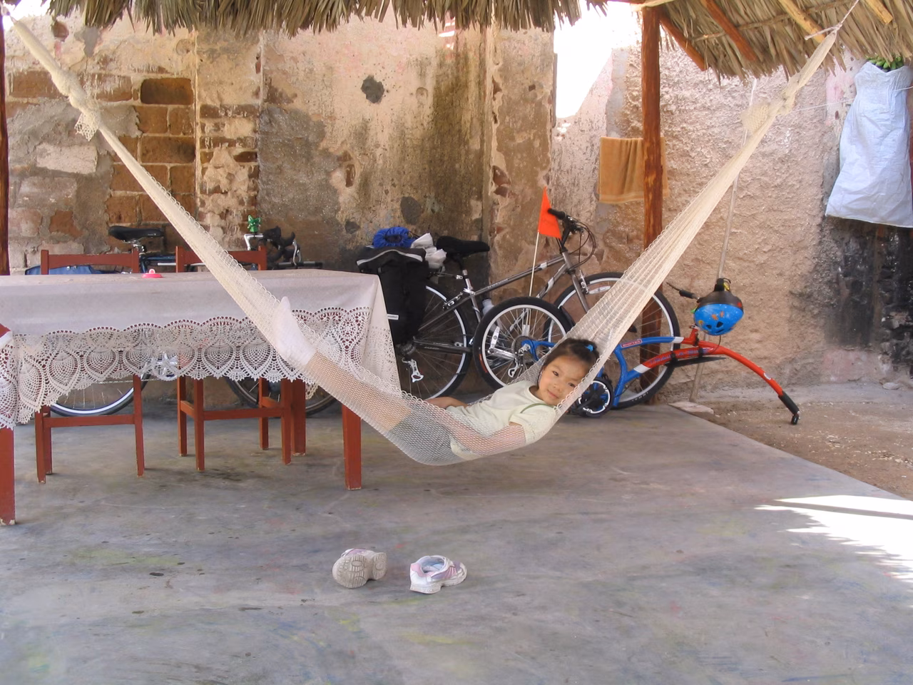 Nous faisons la grâce matinée. Victoria dort toujours à 9h. Nous allons déjeuner au même resto – c’est inclus avec la chambre. Nous récupérons les vélos de la salle d’entrepôt. Nous remontons les bagages en compagnie d’un couple anglais qui font de même. Ils doivent se diriger vers Bayamo. Nous quittons l’hôtel vers 10h45. Nous traversons une partie de la ville pour rejoindre la route pour Gibara. À la sortie de la ville, nous arrêtons à un magasin de dollars pour acheter de l’eau et des biscuits. Victoria dévore un paquet de biscuits. J’ajuste la hauteur de la selle du vélo de Victoria – cela semble être mieux pour réduire balancement. Il vente beaucoup sur la route, mais la circulation est faible. La route vallonne beaucoup. Les montées sont relativement douces. Nous arrêtons fréquemment pour une pause. Jenny roule lentement car elle a exigé que je descende la hauteur de sa selle. Nous rencontrons un cycliste de l’Angleterre qui retourne sur Holguin. À 5kms de Gibara, un local suggère de nous escorter à une casa particular. Nous sommes énergisés par les derniers kms. Notre guide nous amène à une première casa – c’est complet. Une seconde, une troisième – toujours complet. Le quatrième endroit a finalement de la place – Jenny tombe en amour avec l’endroit. Un couple âgé et un jeune couple s’occupe de cette casa particular. Nous prenons une bonne douche et prenons le souper de poisson. À la casa – c’est excellent. En soirée, nous prenons une marche. Victoria met les pieds dans la mer. À la casa, une petite fille de 2½ ans apprivoise Victoria. Victoria et elle s’amusent dans le hamac.