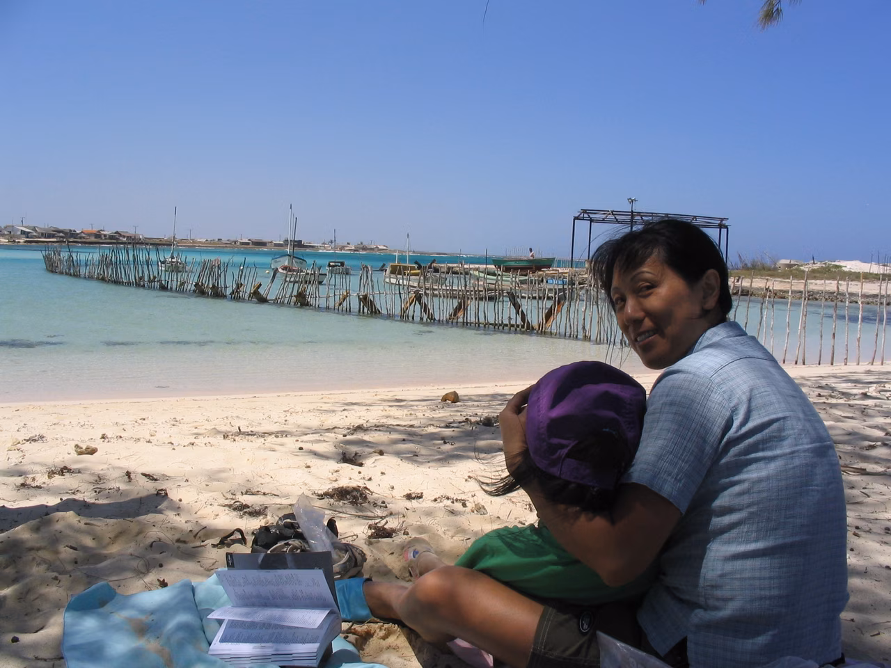 moins de 5 cents. Après une douche, nous soupons au poisson à la casa. Nous revoyons de nouveau un couple d’hommes de la Suisse. En soirée, nous retournons pour notre promenade.