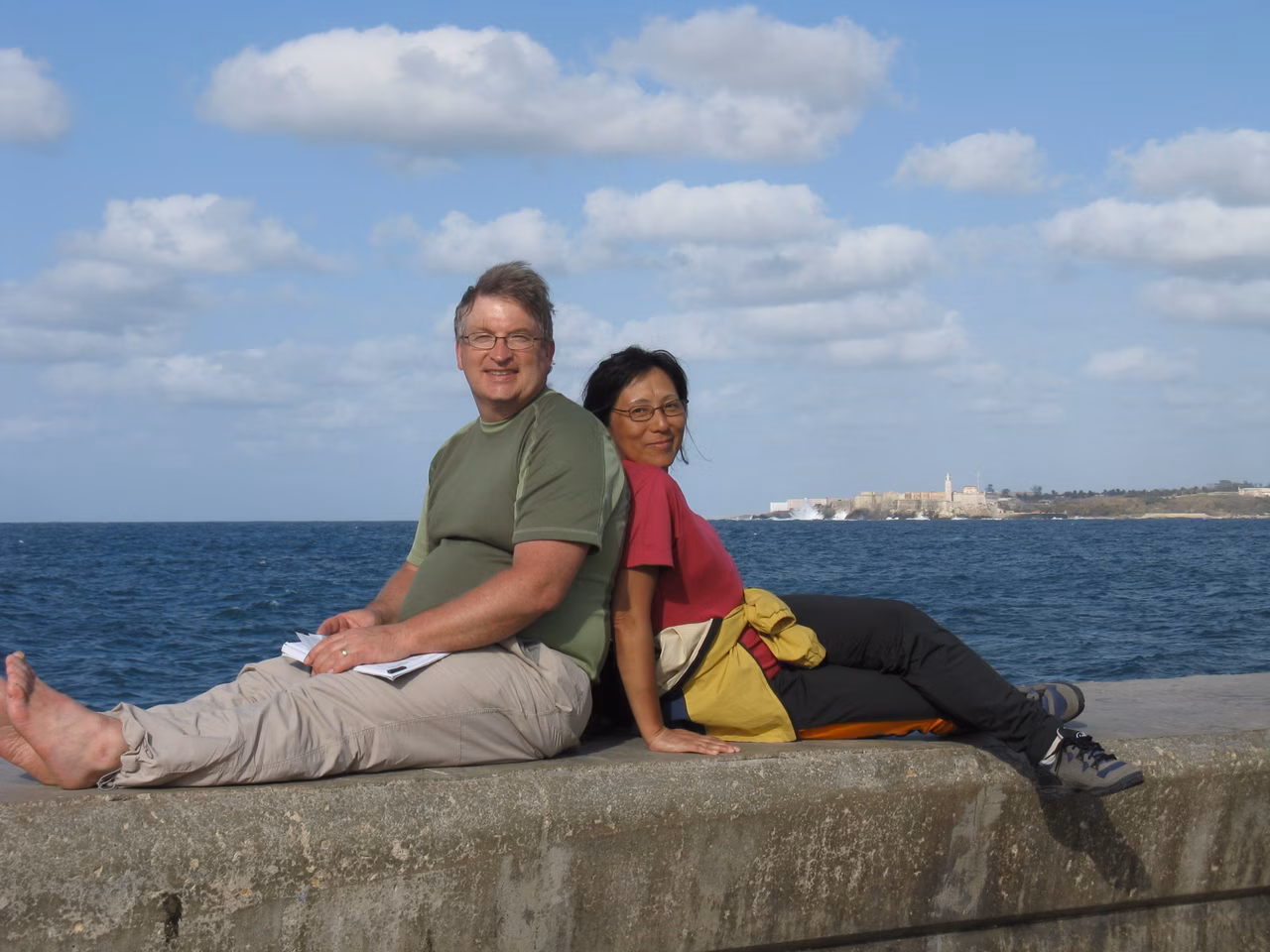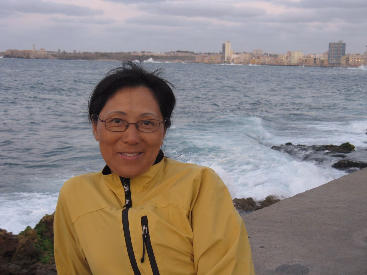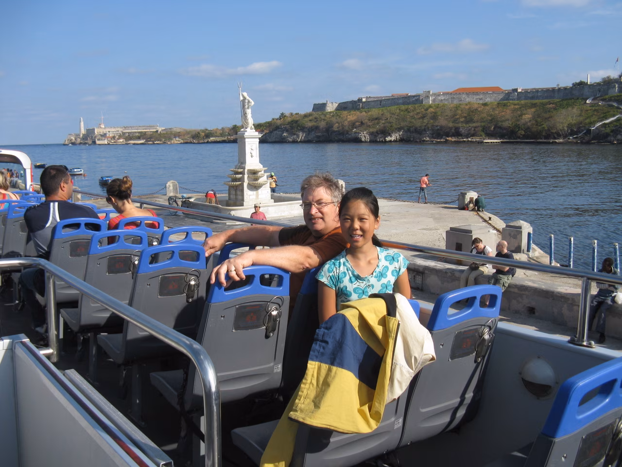 We met two Taiwanese girls on a two year Volunteer program in Saint Lucia. We exchanged a few travel info. We were glad to have made it onto the bus. The bus ride was good once we filtered out the passenger snoring. Once arrived at La Havana, we booked our return ride back to Santa Clara. We took a taxi to explore a few casas. After visiting two, we started to be a bit discouraged, but we finally stopped at a nice place. The lady owner offered a cot bed for Victoria. We reviewed our money situation, and determined that we needed another $300 to finish the trips. We had some inexpensive hot dogs and enjoyed the walk around Calle 23 and on the Melancon. Victoria enjoyed seeing the waves hitting the wall.