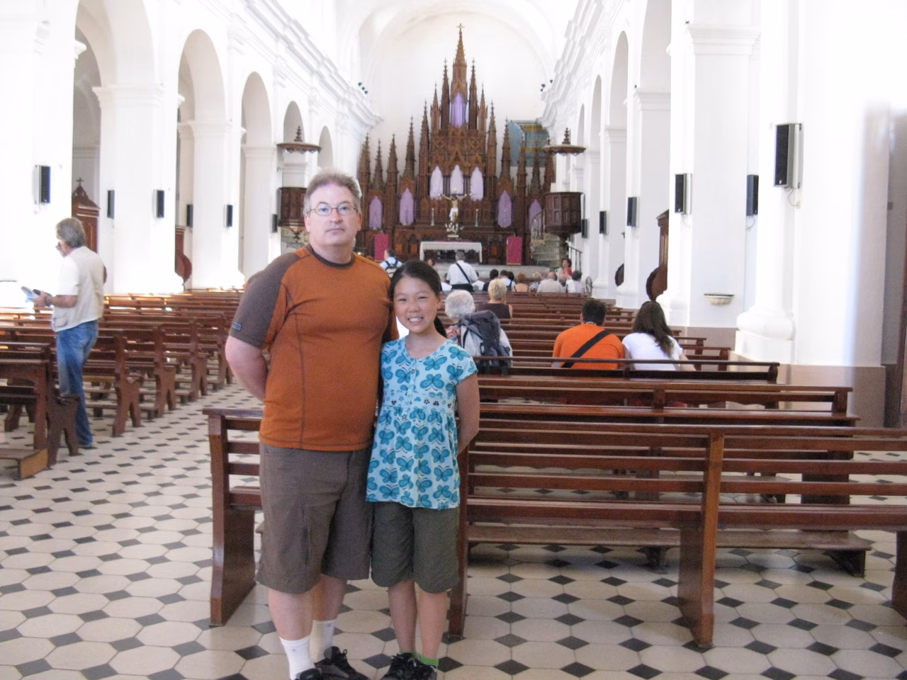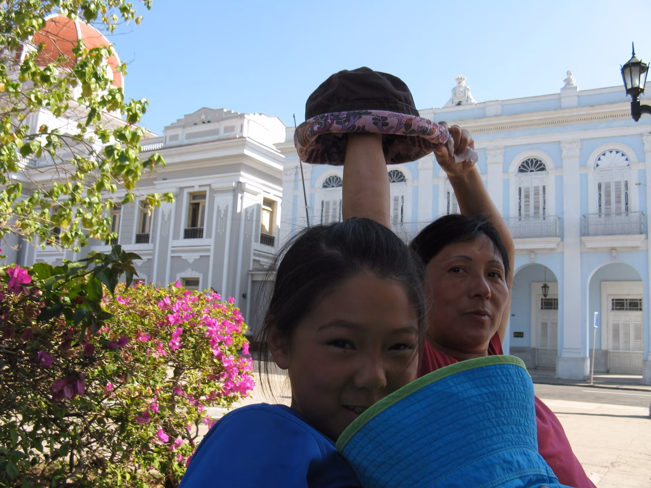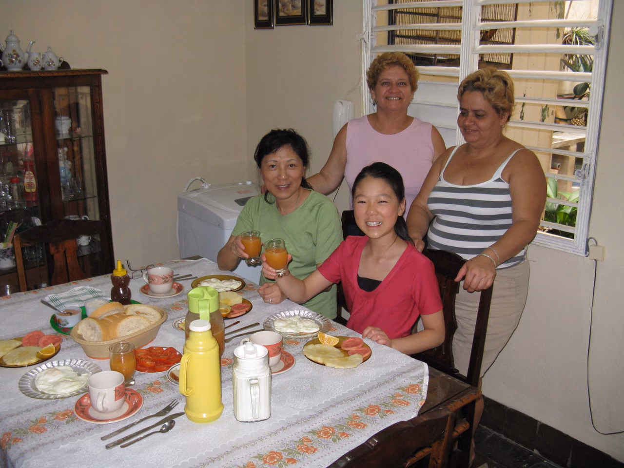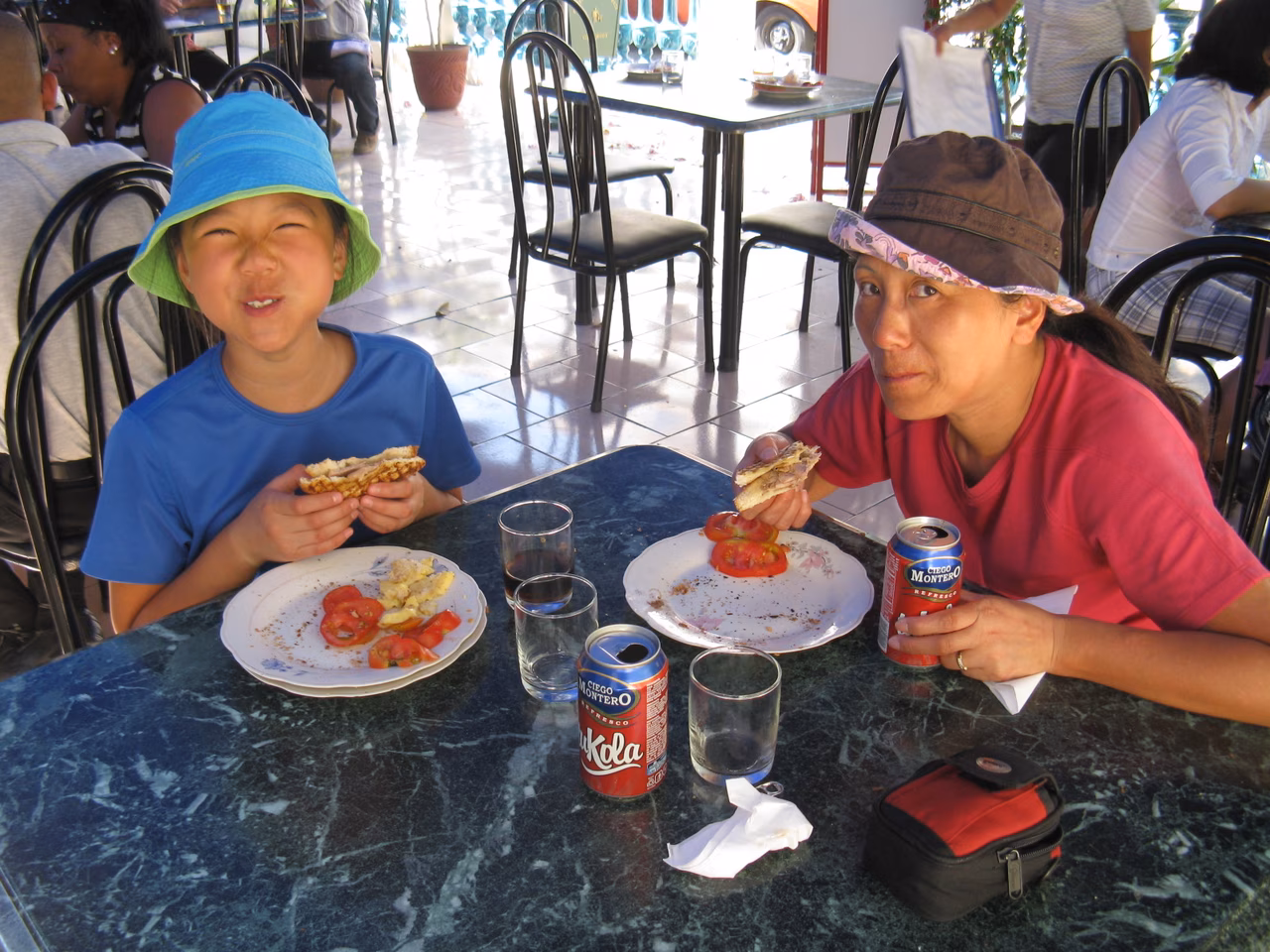 The restaurant of this upscale campismo was almost full by 7:30 am. Breakfast was included with the price of our accommodation. Again the meal was clearly disappointing compared to the breakfast from any casas. We managed to deal with the stairs again and re-assembled the bicycles. Another sunny day awaited us. We cycled the distance to Cienfuegos fairly easily. We stopped at a gas station for ice cream along the way. Arriving in Cienfuegos we stopped at Plaza Marti before heading to our target casa Isabel y Pepe. Our room was a bit cramped but they have a sofa bed for Victoria. The owner was somewhat disturbed by Jenny’s fear of dogs. Supper of lobster and fish was very good. In the evening, Jenny and me went for a walk to buy water. Earlier in the afternoon, we had gone to the Cadeca to change a bit more money. We stopped at a local sandwich place – it was great and really cheap ~3 CUC. We did our laundry at the casa.