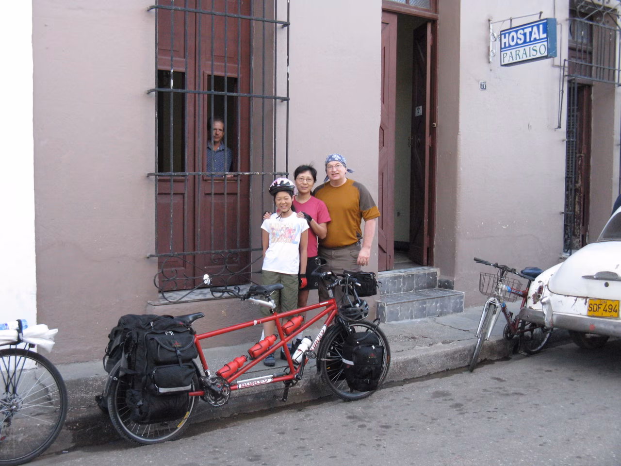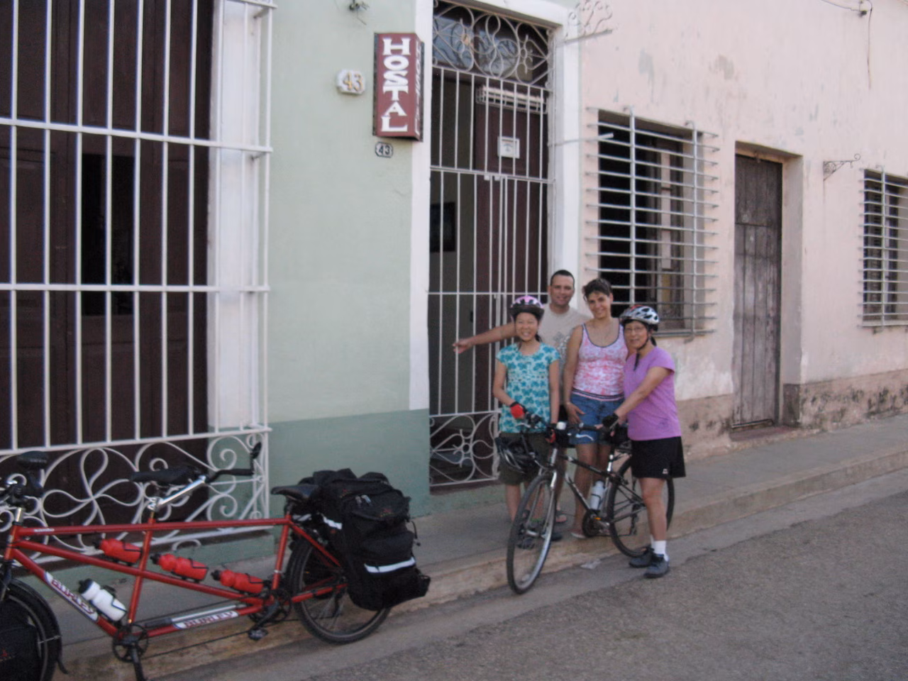 Good night for all of us. After another great breakfast, we packed up the bicycles. We again took pictures of our host in front of the casa. Although our biking book suggested the road was easy between Sancti Spiritus and Trinidad, we felt it much harder with continuous rolling hills – some long ones. We stopped in Banos for water refill. We also stopped at Manaca Iznaga to have a glimpse of the Valley del Ingenios. We were getting pretty tired after KM 60. We managed the last big climb before Trinidad. We found our target casa (Odalis Valdivia Gonzales) fairly quickly. We were very glad to arrive. The rocking chairs in the garden made for a good rest. After a great supper, we went for a brief stroll in the old center.