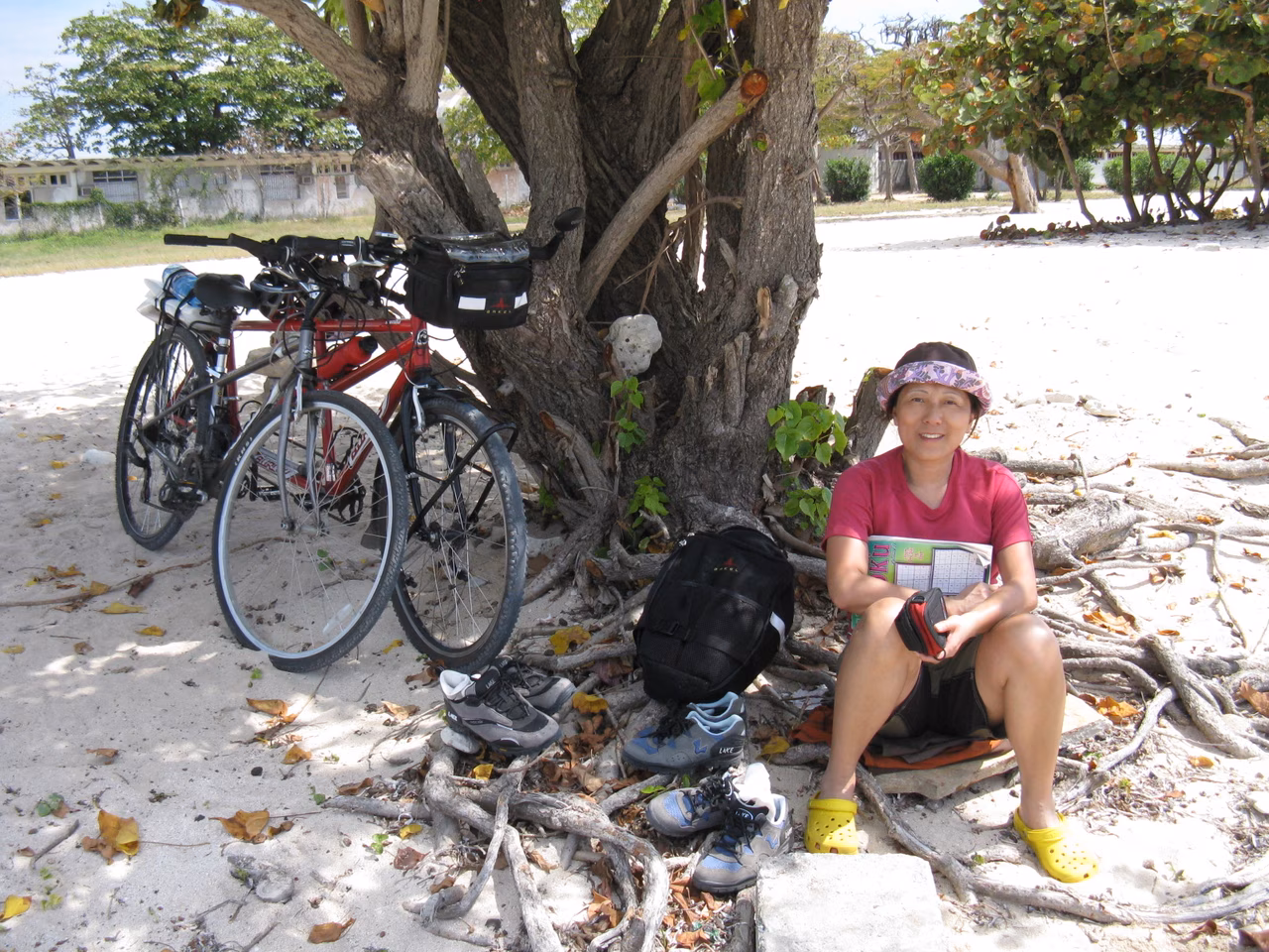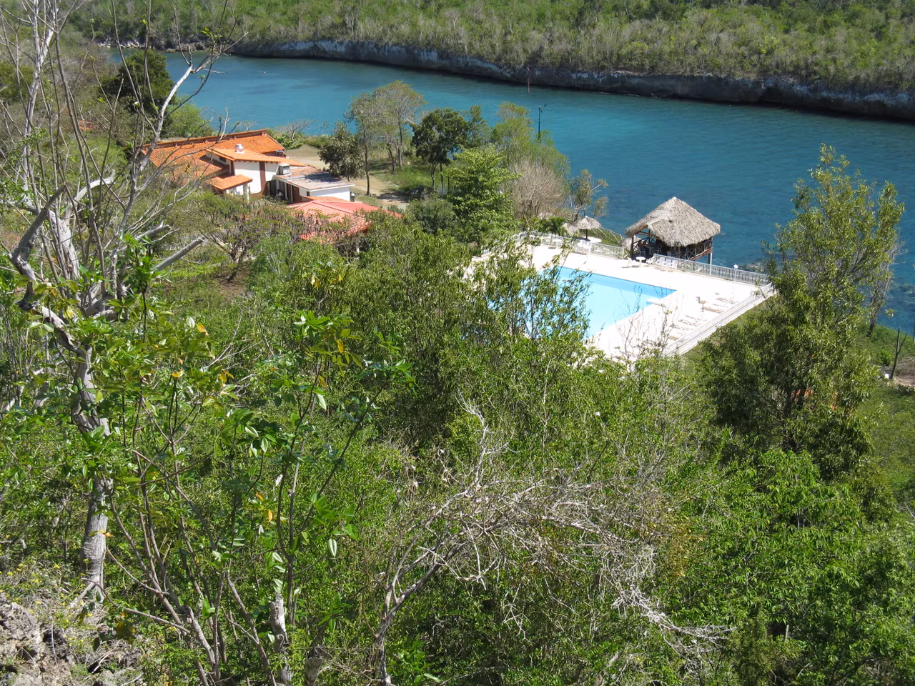 We took our breakfast one hour earlier today – to get an earlier cycling day. We took some pictures with Elsa and her husband. We really enjoyed our stay in La Boca. It was hard to leave this place. On the way back to Trinidad, Jenny got her second flat tire. A local helped me fix the flat. We also improved the wheel’s hub friction. Back on the road, we covered a few rolling hills out of Trinidad and then the road was fairly flat. We saw a lot of dead crabs along the road. We learned that these crabs come from the mountains and are not good to eat (except the white ones). We encountered a cycling tour group (escorted by a bus) along the road. We arrived at Villa Guajimico by the back door. We were really surprised by the luxury of the place. There were a number of Europeans here for scuba diving. The campesino was pretty pricey at $65 cuc but since we stopped early we could take advantage of the pool and other amenities such as the scenic trail. We were surprised to realize that the restaurant only opened at 7:30 pm. We patiently waited for our supper. The buffet-style supper was clearly a step down from our usual supper at our casa. Back in our room we rested for the rest of the evening.