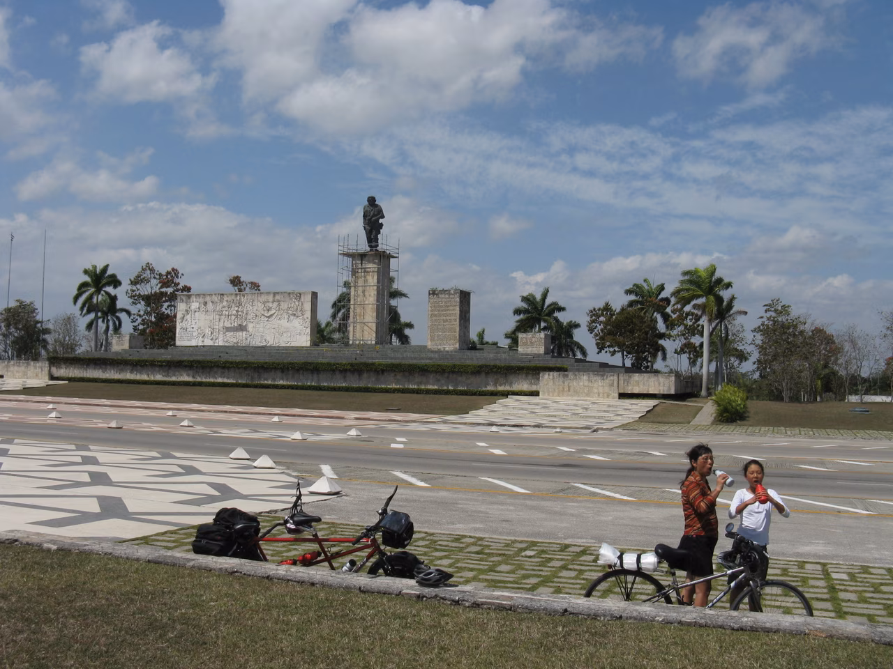 The bed’s mattress was terrible for Jenny and I. We barely slept because of the slanting mattress. Breakfast was a bit late this morning – nonetheless the food was great. Unfortunately, when the owner presented us with the bill, I was surprised by the higher prices. I paid the amount but it seemed like the owner was disappointed as he did not escort us outside his casa. We packed up our bicycles while expecting the owner to show up. He did not. We remained shocked for a few hours of cycling. Given this experience, we were glad we only stayed for one night. The road appeared to slowly climb all day. The light wind kept us a bit cooler than the sun offered. En route, we ate ice cream (in Rancheulo) and later ate our breakfast sandwiches at a gas station on the Autopista. The last 15 kms along the highway were hot. We took a quick picture of Che’s monument. We stopped at the Viazul bus station to confirm our reservations. We realized that we only had a waiting position on the bus. Although the locals were confident that we would make it tomorrow. We made our way to Señora Carmita’s casa. As agreed, she had to bring us to another casa – in occurrence her brother. A simpler home but with a really warm family atmosphere. We were all very tired by our day’s journey. After a good shower, we did some laundry. But after an hour, it started to rain, the first time we saw and heard any rain since our arrival in Cuba. After a nice meal of pork chop, we rested in our room for the remainder of the evening. The room was very comfortable.