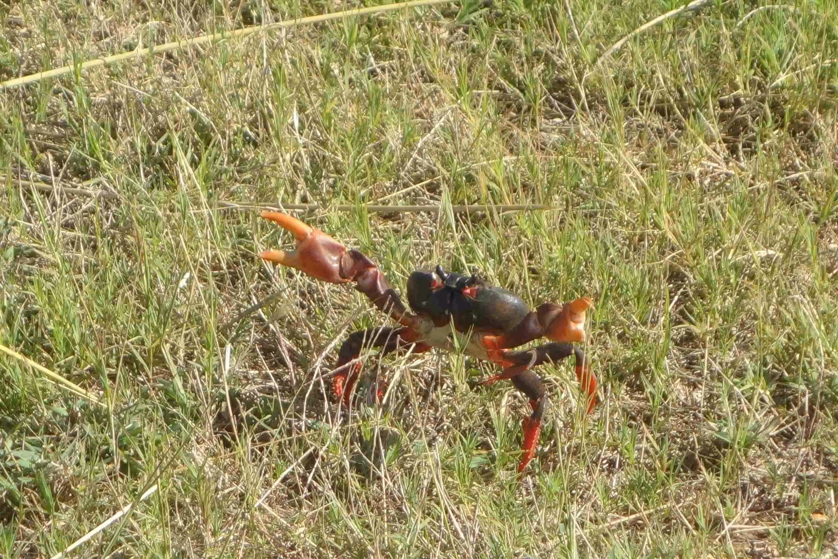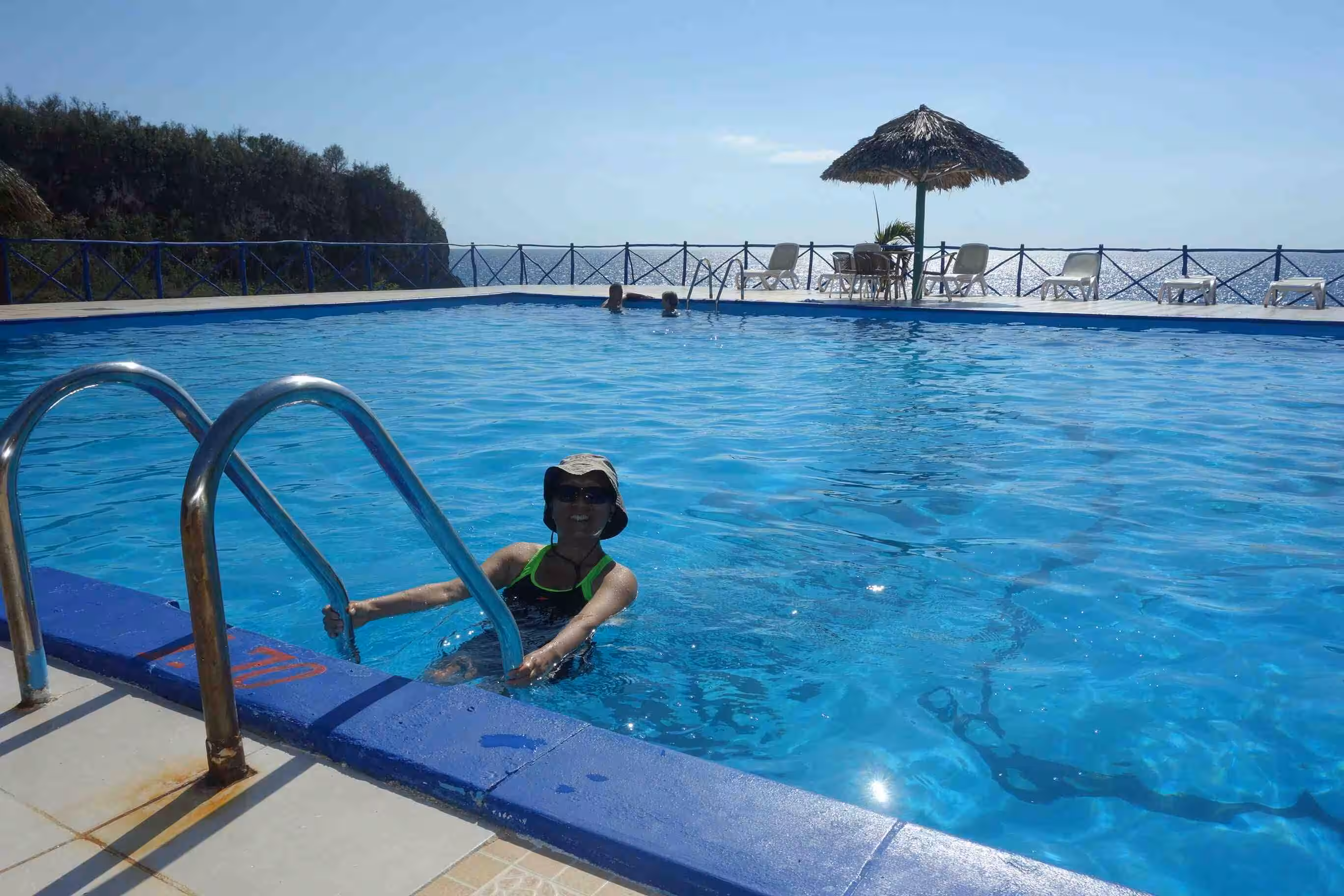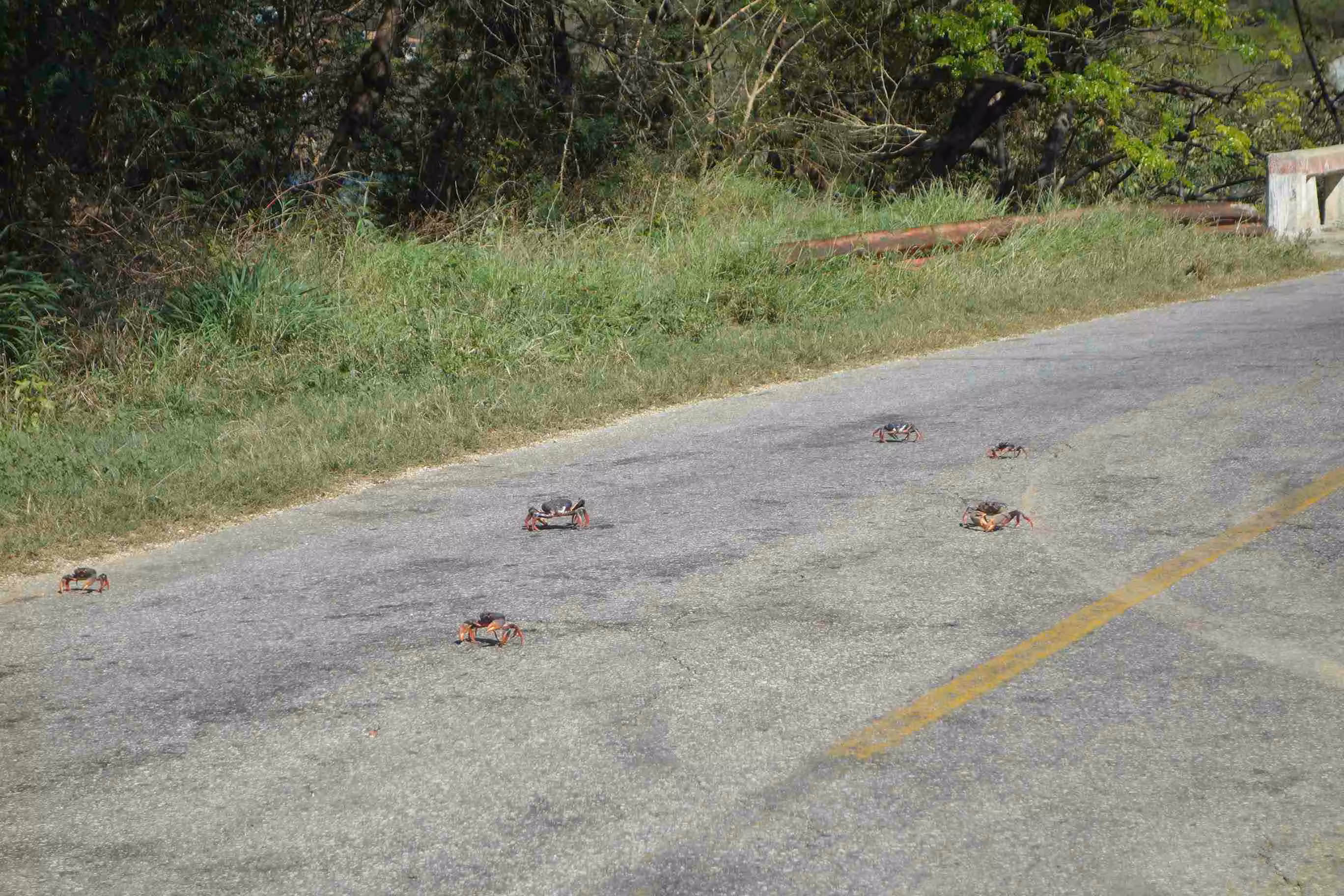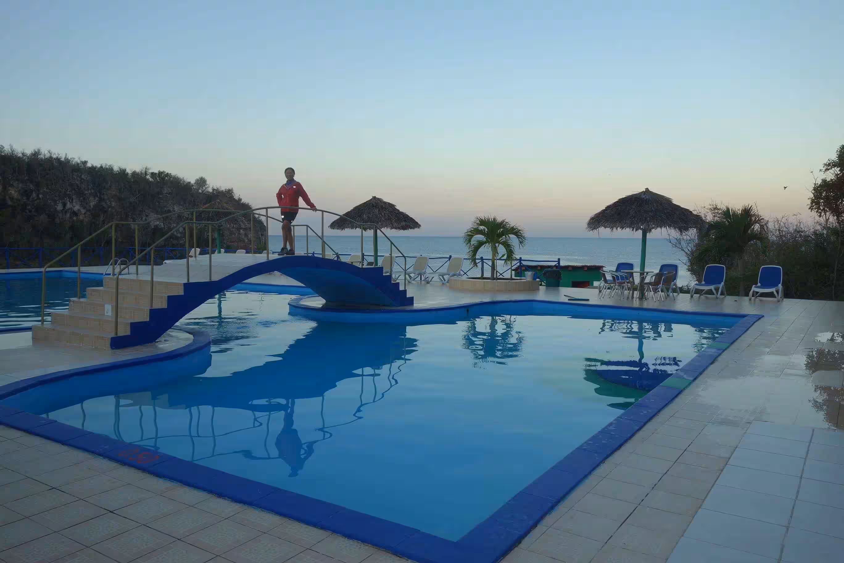 2019.03.26 – [CU] Trinidad ==> Campismo Villa Guajimico (43 kms | Total: 3360 kms) – We left our comfortable casa after another great breakfast. The 40+kms cycling was mostly enjoyable except for stretches of road partly overtaken by crabs coming down the mountain and crossing the road. Many crabs were already squished by car. Although we did our best to avoid the lived ones running away in every direction, we still managed to squish a few by ourselves. We understood that these crabs were not good for consumption and performed their mountain to sea migration and (back) at this time of the year. After checking into our deluxe campismo, at more than twice the price of our regular casa, we struggled against a series of staircases to reach our actual cabana. We opted to have a light lunch at the on-site restaurant as the evening meal started to be served only at 7:30pm. After lunch, we spent a couple of hours around the pool area while enjoyed the water and surrounding views of the sea. We were surprised by the number of many foreign tourists. At least two large groups were staying at this campismo which operated as a scuba diving center. During our evening meal, we reminded ourselves how thankful we were to only be staying one night here as the meal prices were higher and the quality was lower than in our usual casas.