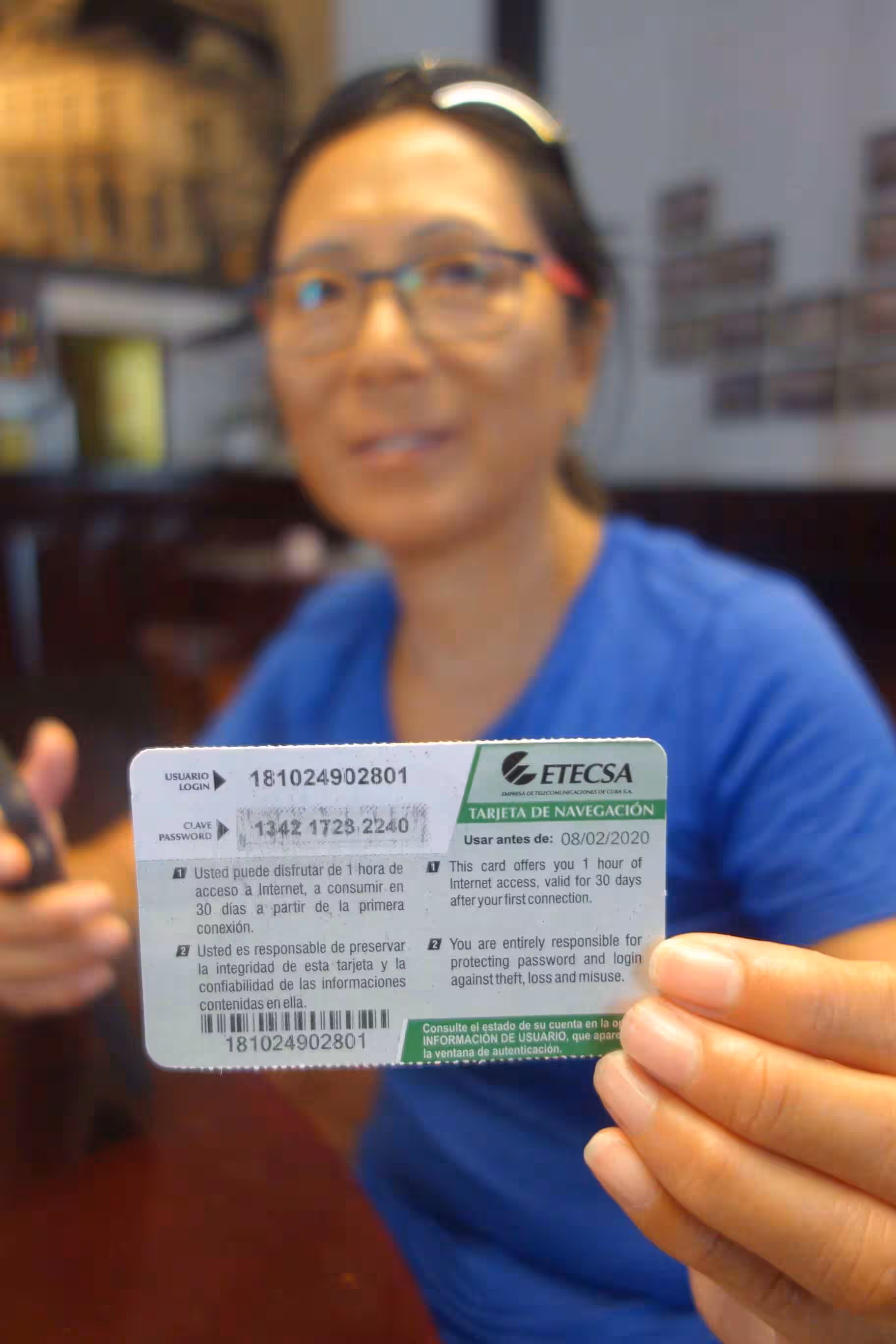 2019.03.25 – [CU] Trinidad ==> Trinidad (0 kms | Total: 3316 kms) – It was our first time since we had left Matanzas that we actually rested a second day in the same town. We had planned to dedicate the day to wait in various queues. After breakfast, we walked to a bank in the town’s center where we waited, with many other foreign tourists, over 45 minutes to withdraw more funds from our credit card. Next, we walked over to the Etecsa office to purchase additional internet cards. As we arrived there was a bunch of folks waiting at the door, but the locals told us we could walk in directly if we only wanted to buy internet cards. Within 10 minutes we had purchased six more 1-hour internet cards (3 each). As we had agreed to try out one of the many restaurants for our evening meal, we visited a few of them to check out their menus. Back at our casa, we rested until the mid-afternoon, after which we visited an ice cream parlor. We were glad to have returned to our casa before the late afternoon rain. We waited until 7pm for the rain to taper off before walking to a restaurant for pizza. As we left the restaurant, a long queue of hungry tourists had formed in the front of the restaurant.