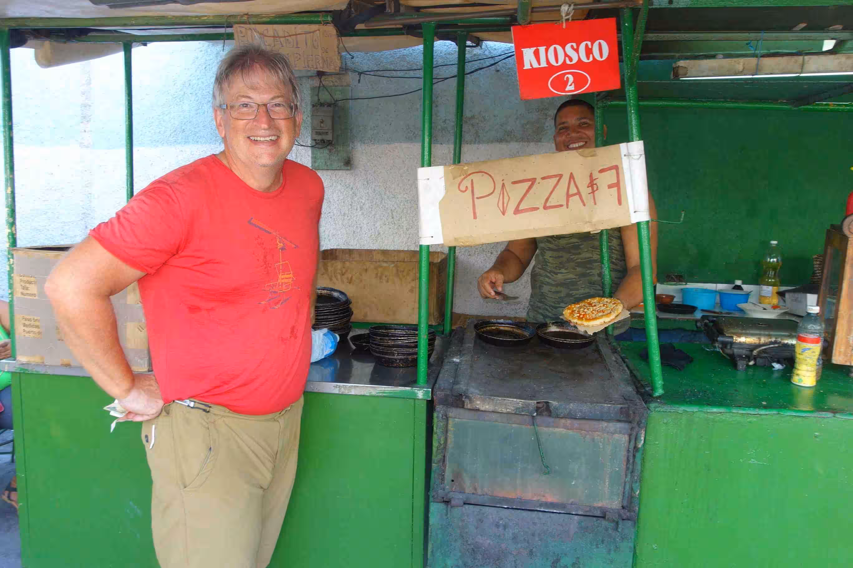 2019.03.07 – [CU] Moa ==> Sagua de Tanamo (39 kms | Total: 2478 kms) – We heard the sound of rain throughout the night. The weather forecast had suggested that the rain would stop around 7am. Hence after our breakfast and while the rain had stopped, we quickly loaded the tandem and started our short 40kms cycling day. We climbed some long hills with manageable grade. Jenny covered herself a few times with her poncho but the rain did not last long. In Sagua, we stopped at a park for a brief internet session and ate some peso pizza before making our way to our casa which was 1km outside the town center. In the afternoon, we watched the rain fall throughout the rest of the day and evening. It proved a bit challenging to dry our washed clothes. We had a good evening meal of chicken at our casa. We both spent a lot of time reading.