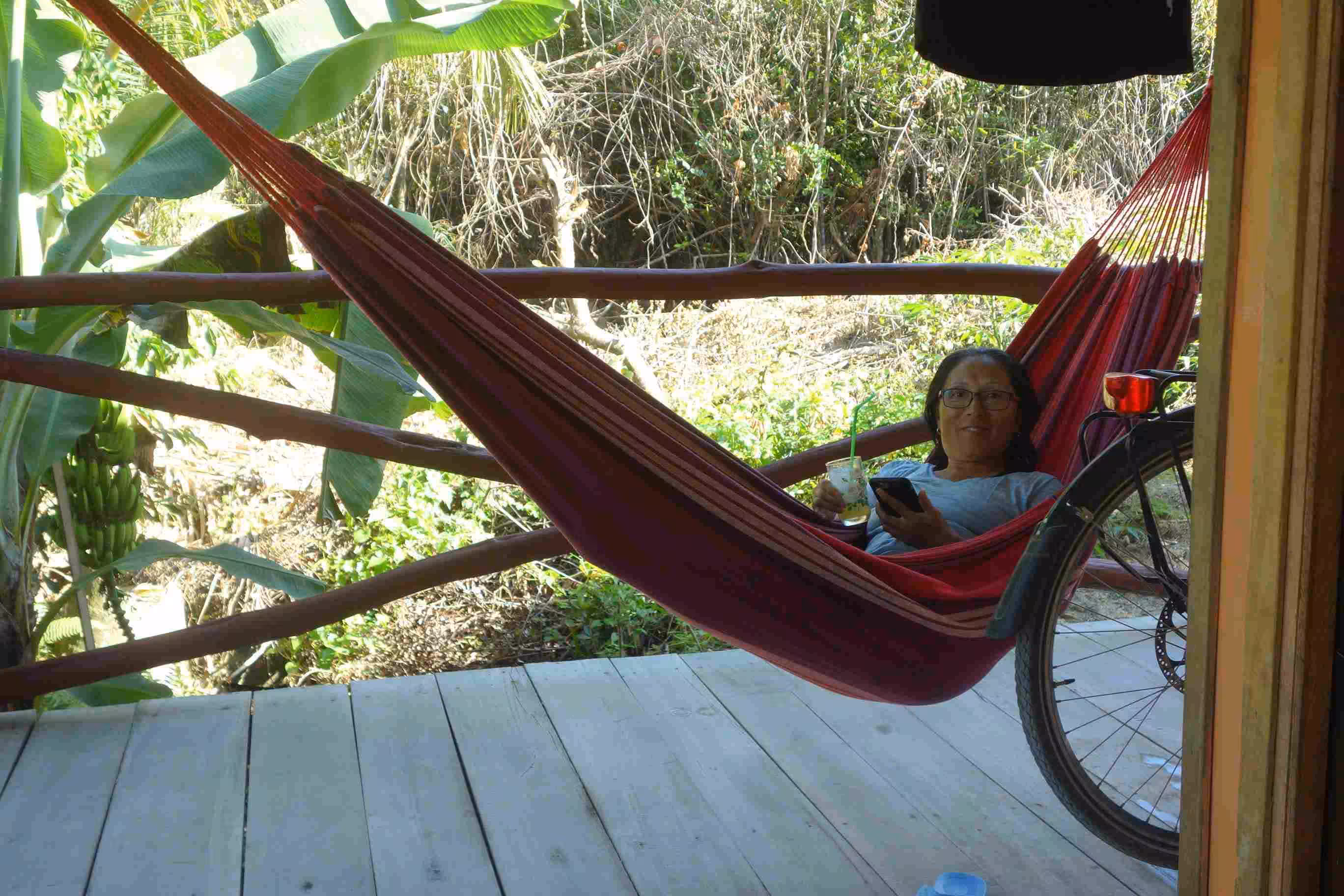 2019.03.04 – [CU] Baracoa ==> Playa Maguana (19 kms | Total: 2383 kms) – The casa owners apologized profusely for last evening’s power outage and their absence from the casa last night. The family had opted to stay at their parents house for the night. They acknowledged that the ground floor of the casa appeared to have electrical problem. They were very apologetic and waived the cost of our two day breakfasts in addition to discounting our stay. Our frustration appeared to evaporate with these savings. We had a very easy 20kms cycling to Playa Maguana for our first official beach rest. We were thrilled to be introduced to our cabana for our two night stay. The place reminded us of some of Fiji’s cabanas that we had stayed last year. We went to the nearby (almost) deserted beach for a few hours. Upon our return, we enjoyed some cocktails while resting and reading in hammocks. In the evening, we had some shrimps and octopus for our evening meal. Later, we walked to the nearby luxury tourist hotel to a brief internet session.