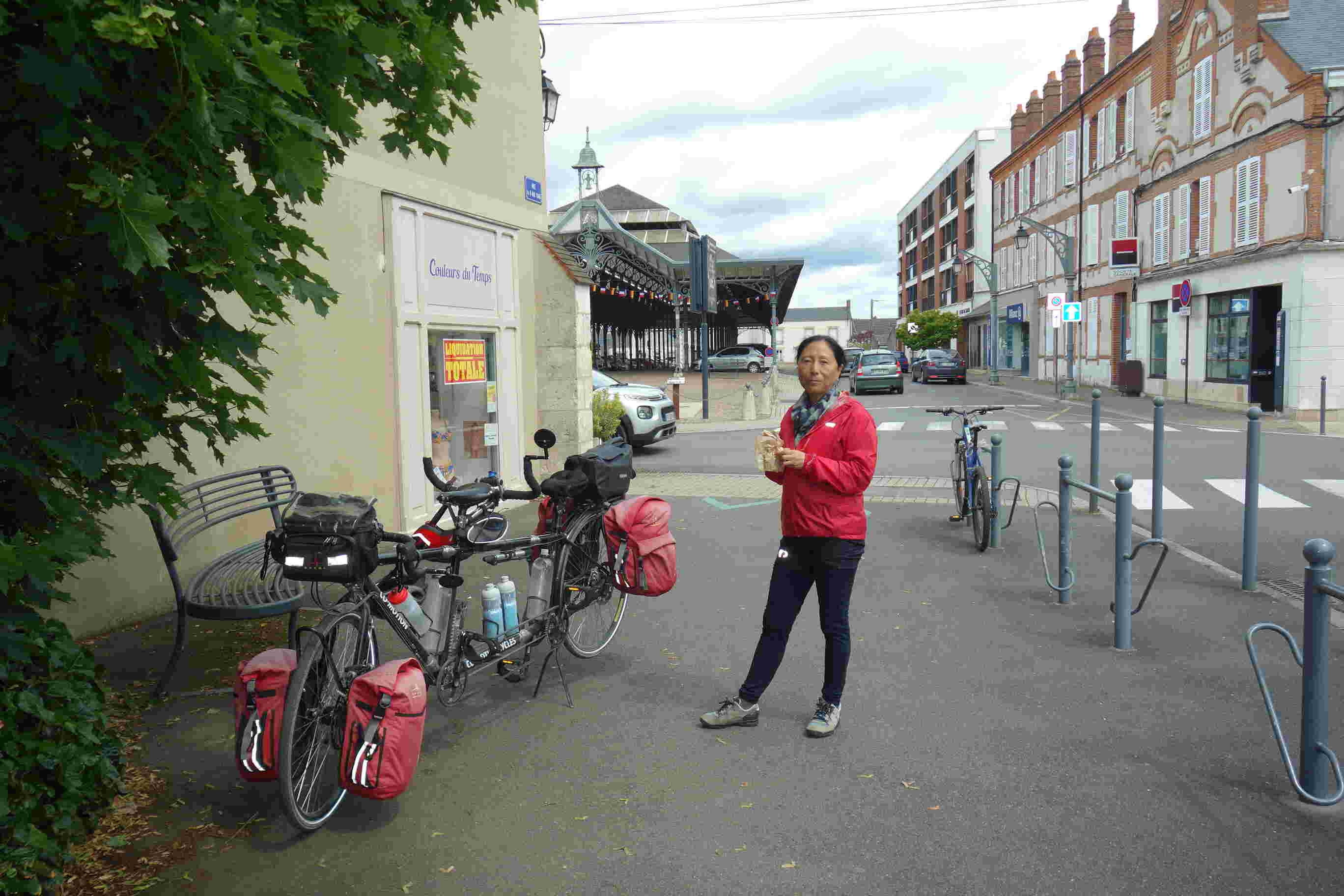 We rejoined the Loire River and our cycling route shortly after leaving our hotel. We cycled most of the day on levees on either side of the Loire River. Along the way, we stopped at a bakery for snacks. Near the end of our day, we took a long break while enjoying refreshments. We managed to check-in into our hotel shortly after 2:00pm. Sadly the wifi signal in our room was too weak to be useful. We learned that many restaurants in town were closed on Tuesday. Our evening Chinese meal was sold by weight!
