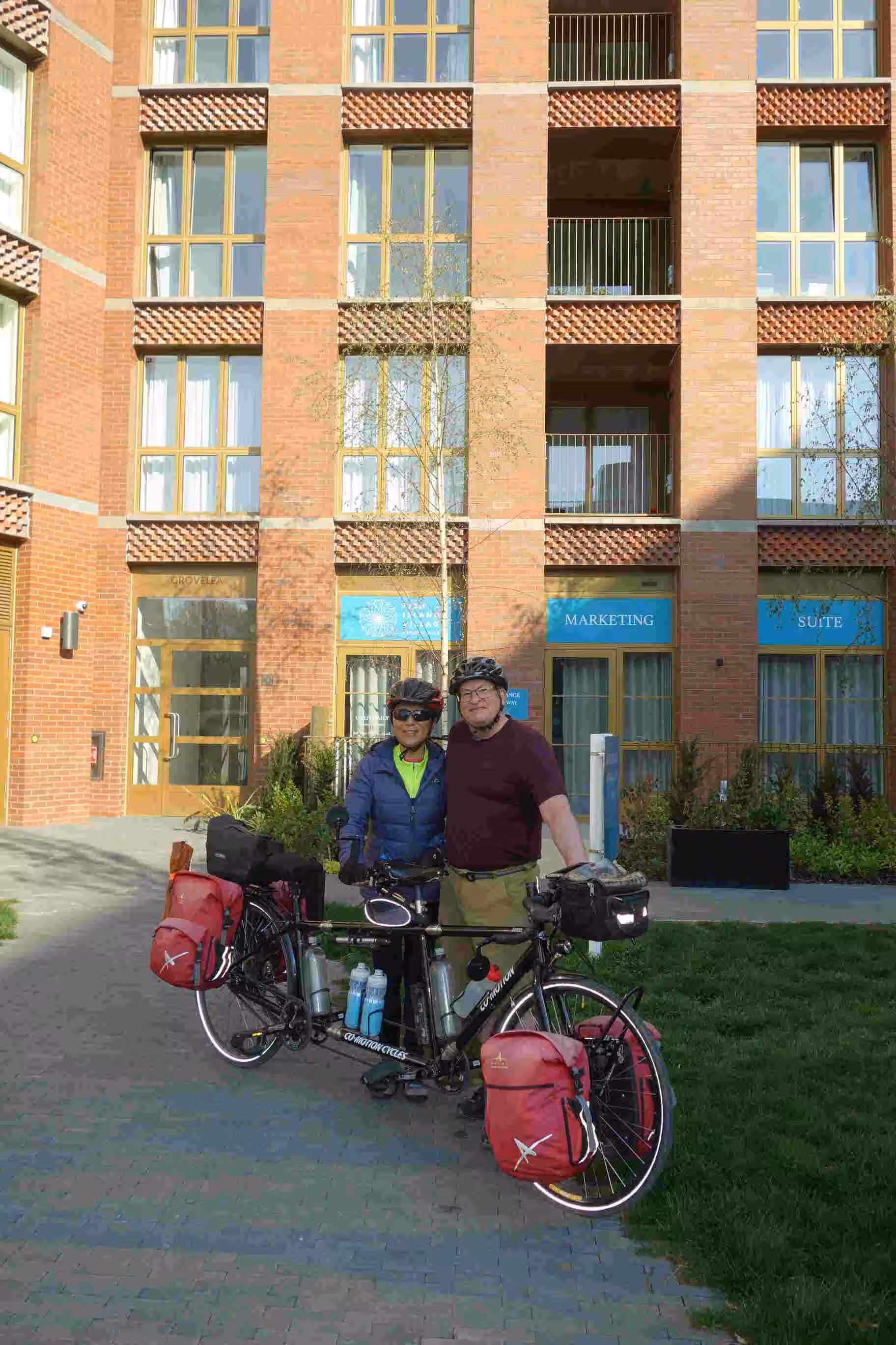 Jenny and I were up by 7am and promptly packed our tandem luggage. After a small breakfast, we brought down all of our equipment and loaded the tandem. Jessica took our photo before bidding us a safe journey. We were weary about our cycling day as it involved crossing most of London from the east to the west. Our first hurdle was having to haul our panniers and tandem down a long circular flight of stairs on the north entrance to the foot tunnel crossing the Thames River. We had discovered on one of our previous cycling outing that the lift was out of service. Thankfully, the lift on the south side was operating correctly. This was the first below water tunnel we had ever crossed with the tandem. Surprisingly, the directions from the EuroVelo(EV) Route 2 loaded onto our Maps.me app guided us very well through a series of bicycle paths, residential streets, bridges and yes – a few busy streets. Nonetheless, the journey to Kingston up Thames was much less stressful than we expected. Our past cycling trip experience to NZ/Australia served to cycle on the left side of the road. Upon our arrival at our hotel around 2:15pm, we were relieved when the reception staff found a safe storage on the ground floor for our tandem – even though their reception office was on the first floor. We had a late lunch from Sainsbury’s supermarket supplies. Later, we posted our first blog entry. We finished our day with a Thai evening meal.