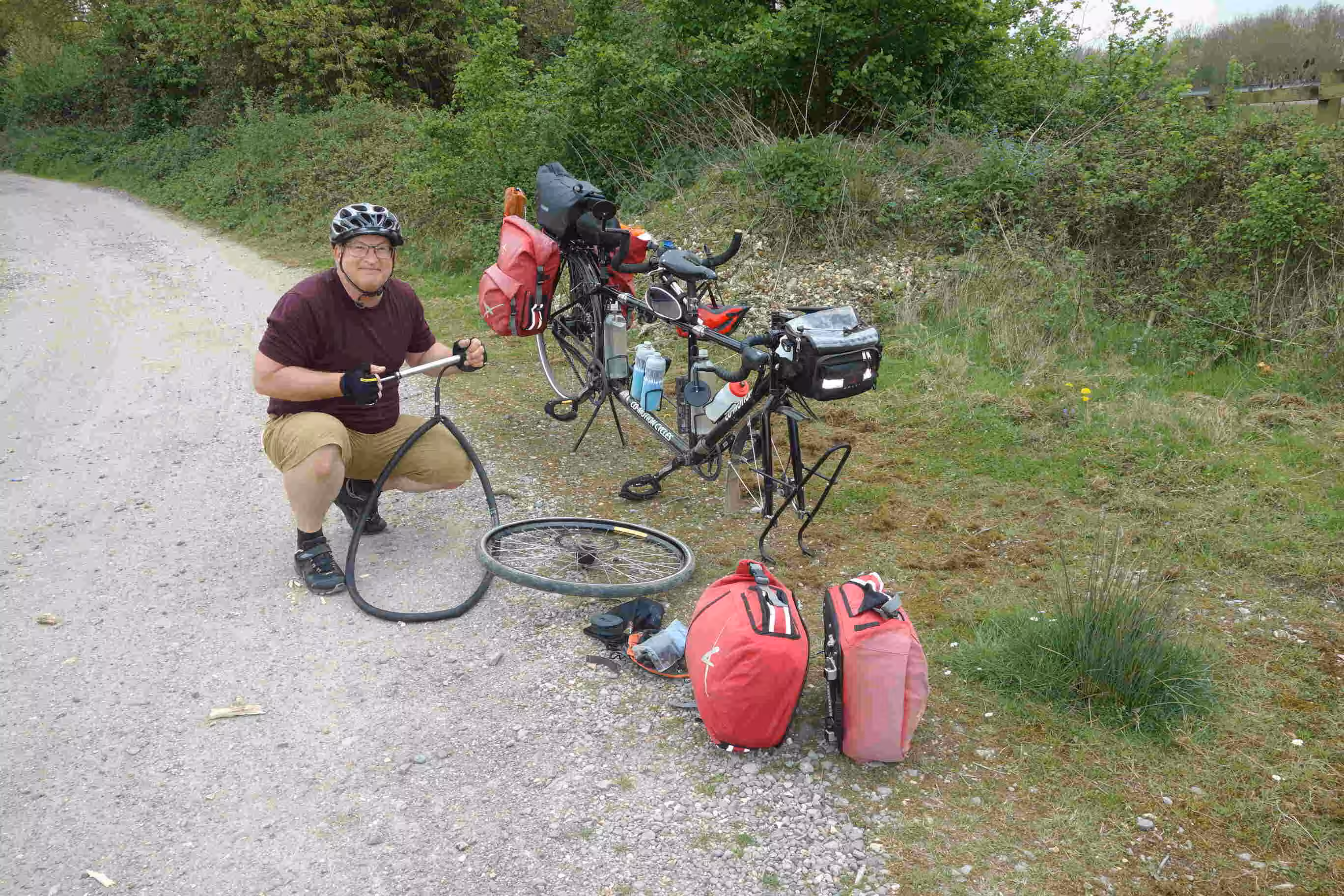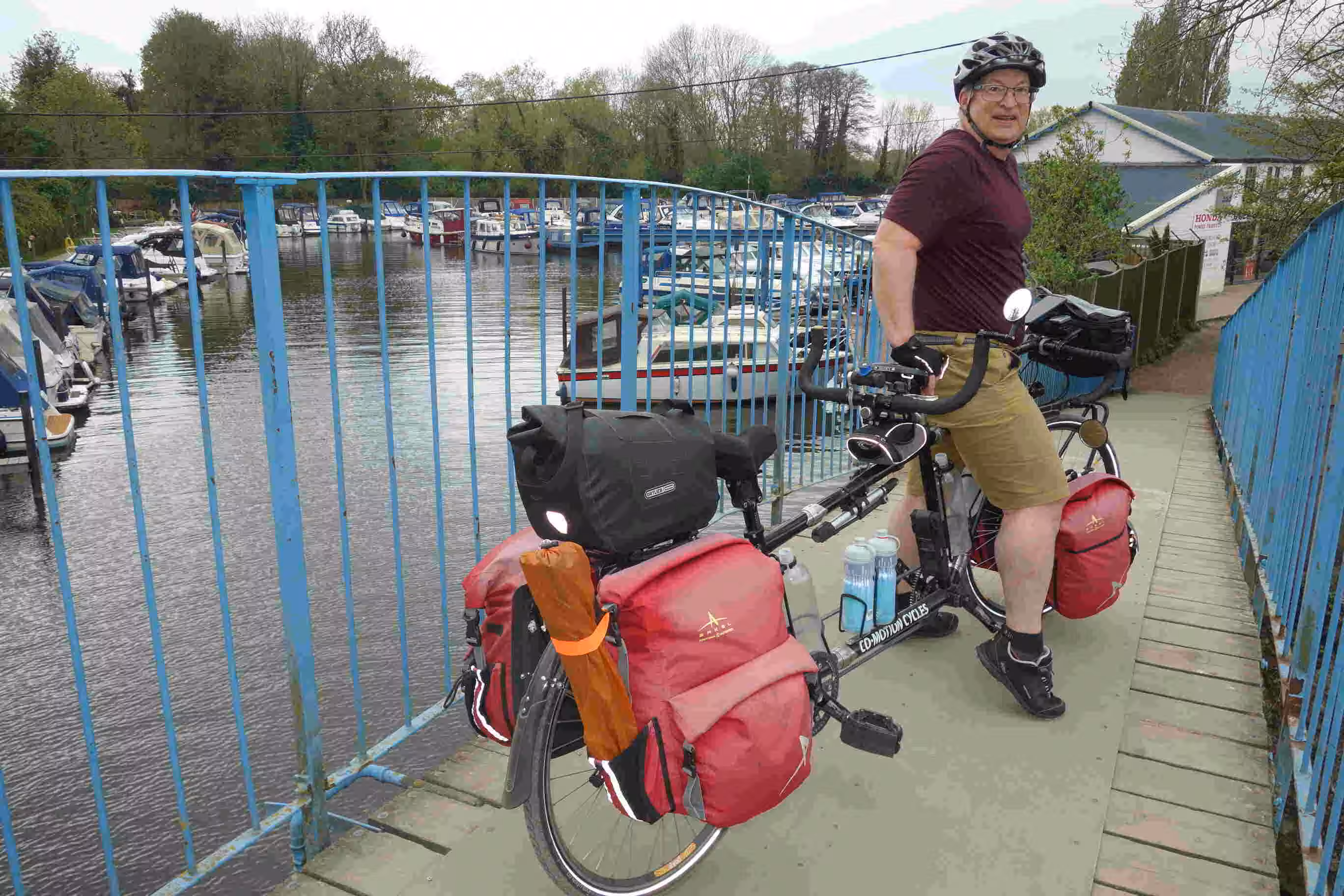 After having some pastries for breakfast, we loaded the tandem and cycled out of the urban area on different roads. Later, we cycled on a bicycle path along a busy highway. We finally bid farewell to the Thames River after reaching Reading – our mid-point of the day. We were looking forward to cycling along the narrow Kennet River for much of the rest of the day. Unfortunately, the cycling path was often made up of a single dirt track – better suited for mountain bicycles. Along a gravel road, we encountered our first tire puncture which was promptly repaired with a new inner tube. In addition to the rough track, we had to navigate over a dozen restrictive gates and crossed the canal/river more than 15 times over small bridges. We were relieved to arrive at our hotel for a good rest.