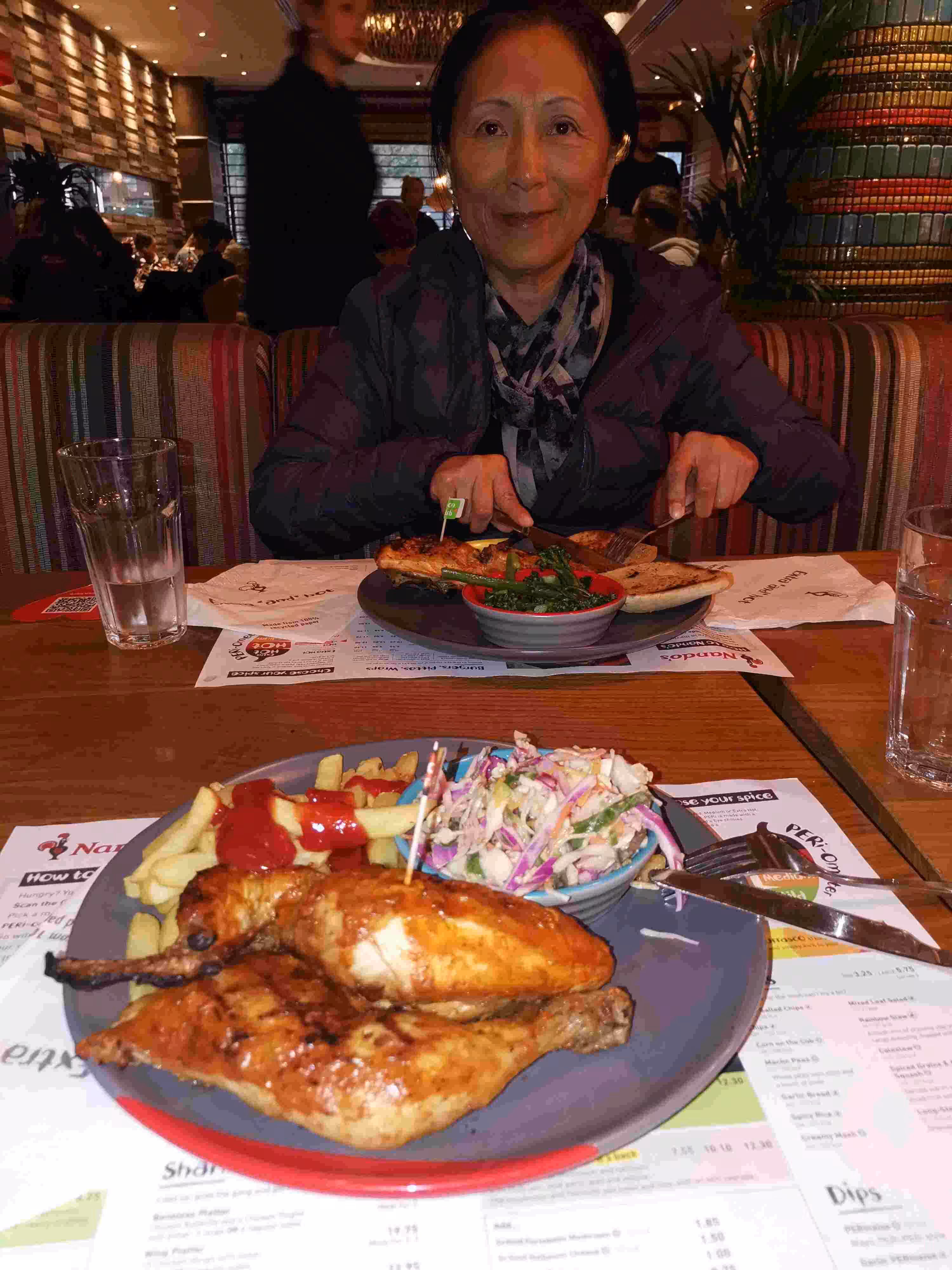 We could not help ourselves, we had take-away breakfast at McDonald’s. During the morning, we cycled along the Thames River on various bicycle paths. We had our first ferry crossing of the trip. It lasted about 3 mins which was half the time it took to load the tandem on the small foot ferry. We also walked our first hill over a rough single track. The remainder of our cycling route to our hotel was very enjoyable. Again the storage of our tandem was accommodated by hotel staff. Unlike during our cycling in Cuba, it was quite easy here to find ready-to-eat lunch items to devour after our cycling day. We visited a noodle/stir fry restaurant for our evening meal.