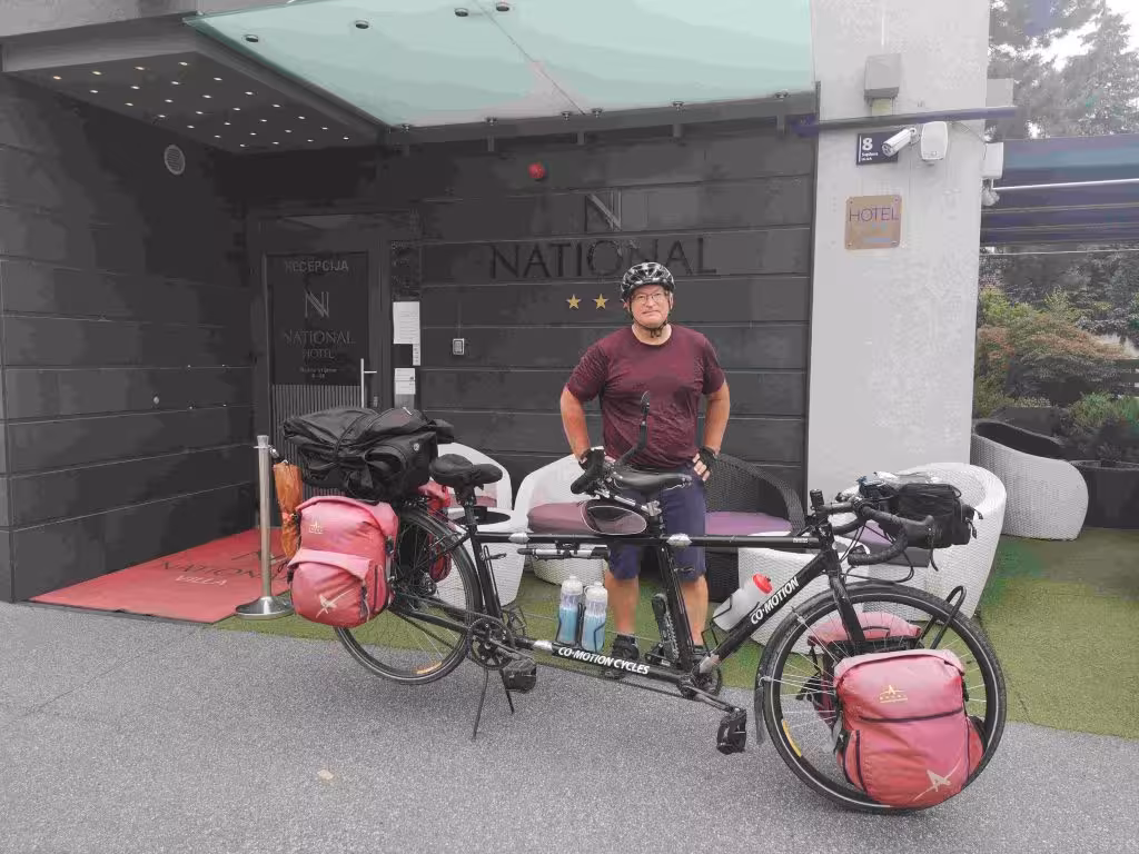 Today was a moving day between accommodations. We checked out of our hotel at 11am and took a tram to a park on the south side of town. We realized along the way that the tram service was free since Friday for it was Croatia’s statutory holiday long weekend. After a long walk in the park under much more enjoyable temperature than in the past few days, we stopped at a nice cafe for some coffee and snacks before returning to our hotel. Around 1:00pm we called our apartment owner to see if it was ready for us to check-in. We finally managed to get an early check-in at 1:30pm instead of the posted 3:00pm time. We took the tram with our bicycle box for two stops and dropped off the box in the apartment. We returned to the hotel and cycled back with the tandem fully loaded. Before settling in, we cycled to a large grocery store that was still opened on late Sunday afternoon. Jenny prepared a nice evening meal while I was dissembling the tandem.