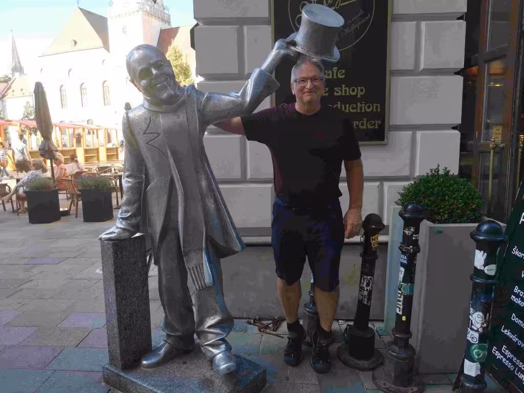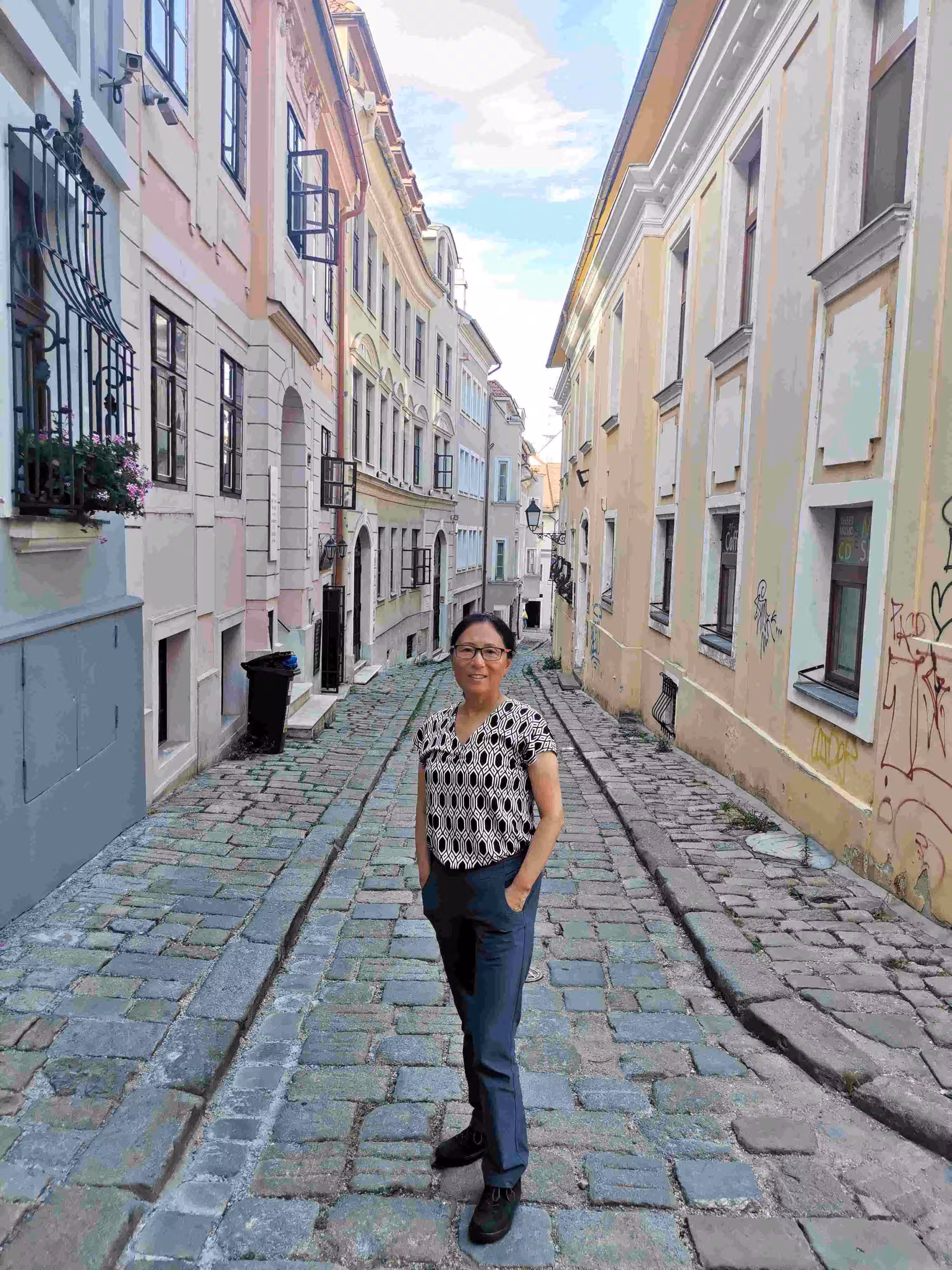 After finishing our hotel breakfast, I went to retrieve our tandem from the bicycle parking located in the train station. Although I was expecting the process to be cumbersome it was actually hassle free. We had read from cyclist blogs that rejoining EV6 from the city of Vienna could be quite challenging. Thankfully, our offline gps (Organic Maps) guided us well to our bicycle path after some 8kms of street, bicycle path and bridge navigation. After 10 kms on the EV6, we lost sight of the Danube as the bicycle path cut straight across farmland. The cycling was rather monotonous, but we were nonetheless grateful that the temperature was comfortable (mid-20C) with a cloudy sky and a light tailwind. We noticed significantly fewer touring cyclists today on the EV6. We suspected that many of them completed their cycling adventure in Vienna while others will do the same later in Budapest. After 40kms cycling, we had to cross a very long bridge. Shortly after that we encountered some light rain for a short time. Our crossing into Slovakia was uneventful as we only noticed a small roadside signage notifying us of the country change. We checked into our hotel at 2:30pm. We started to notice more differences between Austria and Slovakia than we had noticed between Germany and Austria. For example, we were re-united with Tesco grocery stores which we had not seen since leaving England. We also felt like English-speaking locals were more frequent in Bratislava. In the evening, we visited another Chinese restaurant nearby our hotel. To our surprise, the restaurant was almost completely full. Later, we walked in the old town and noticed that all the restaurants were also quite busy.
