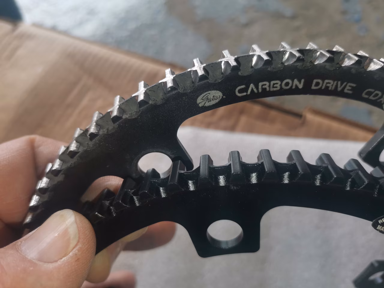 We had started to notice some wear of our timing chainrings. It was only when we compared them to new ones that we realized how much we had worn them off after 16,000kms of loaded cycling travel since 2017 – when we retired.