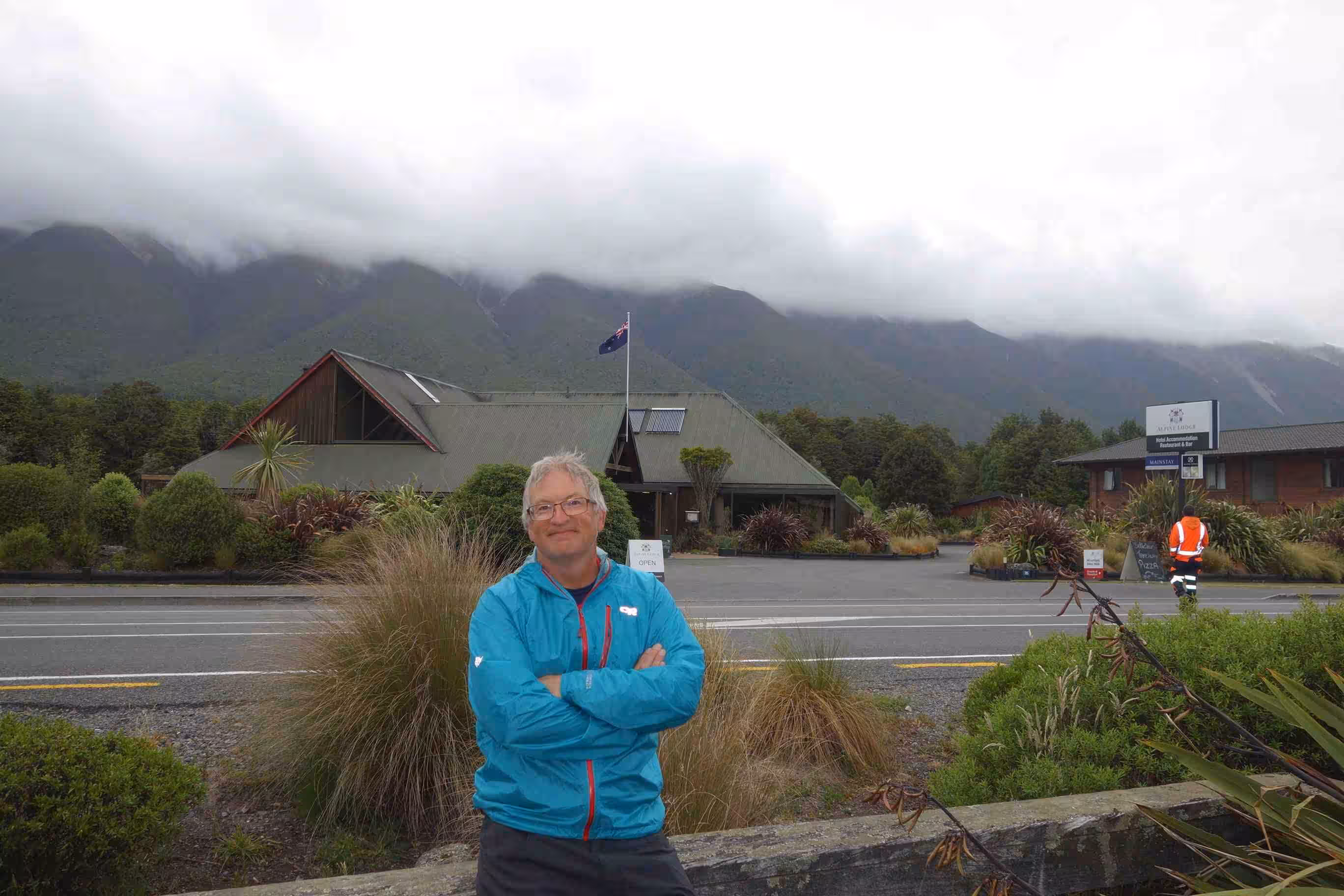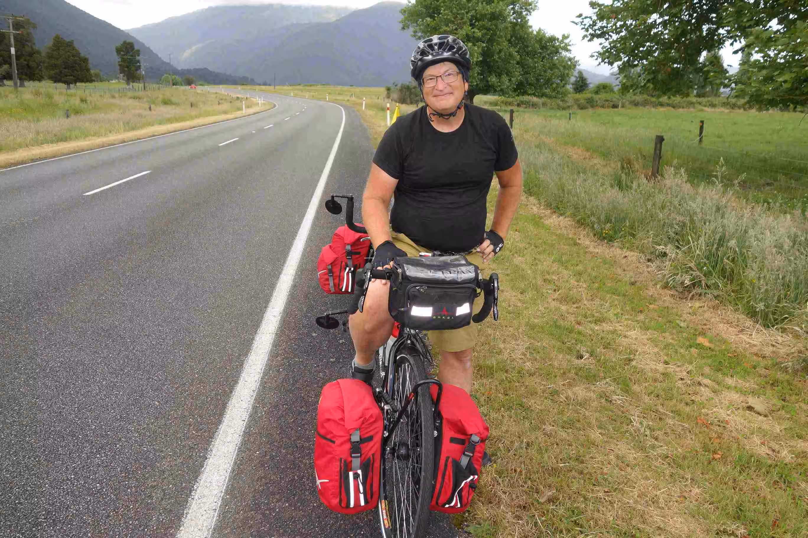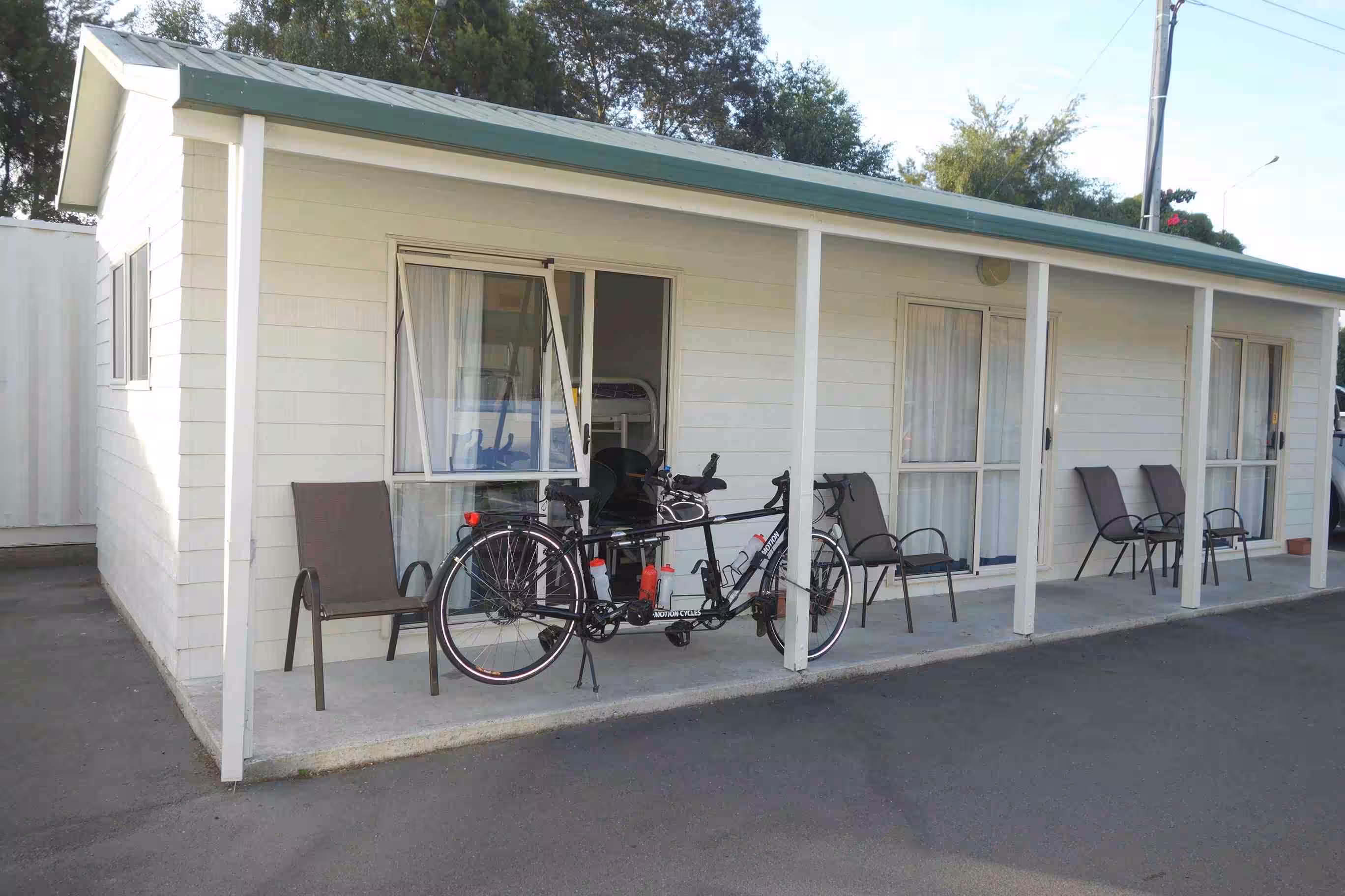 2017.12.11 – [NZ] Franz Josef Glacier ==> Hari Hari (62 kms | Total: 1821 kms) – We awoke to a partially sunny sky and dry ground. After cooking our breakfast in our kitchen cabin, we loaded the tandem and trailer and headed further north on the west coast. The road was inland and relatively flat except for a good climb around Mount Hercules towards the end of our cycling day. Jenny was mildly disappointed by the small size of town that Hari Hari was actually compared to some of the pictures she had seen on the internet. We had not been able to make an on-line reservation at the Hari Hari Hotel but it was certainly not a problem. We initially requested a backpacker room, which usually worked out fine for us, but when the hotel attendant offered the room for $25 it should have raised a red flag in our mind. Only a few minutes after having brought our panniers into the room, Jenny was fairly disappointed with the room. She could not phantom waking up in such a room the next day – on her birthday. We easily upgraded to a motel room – at a bargain price similar to our typical cabin accommodation. We went to the local café for a light lunch. We were pleasantly surprised by our evening meal at the hotel’s restaurant. Needless to say that Hari Hari was not one of the liveliest town.