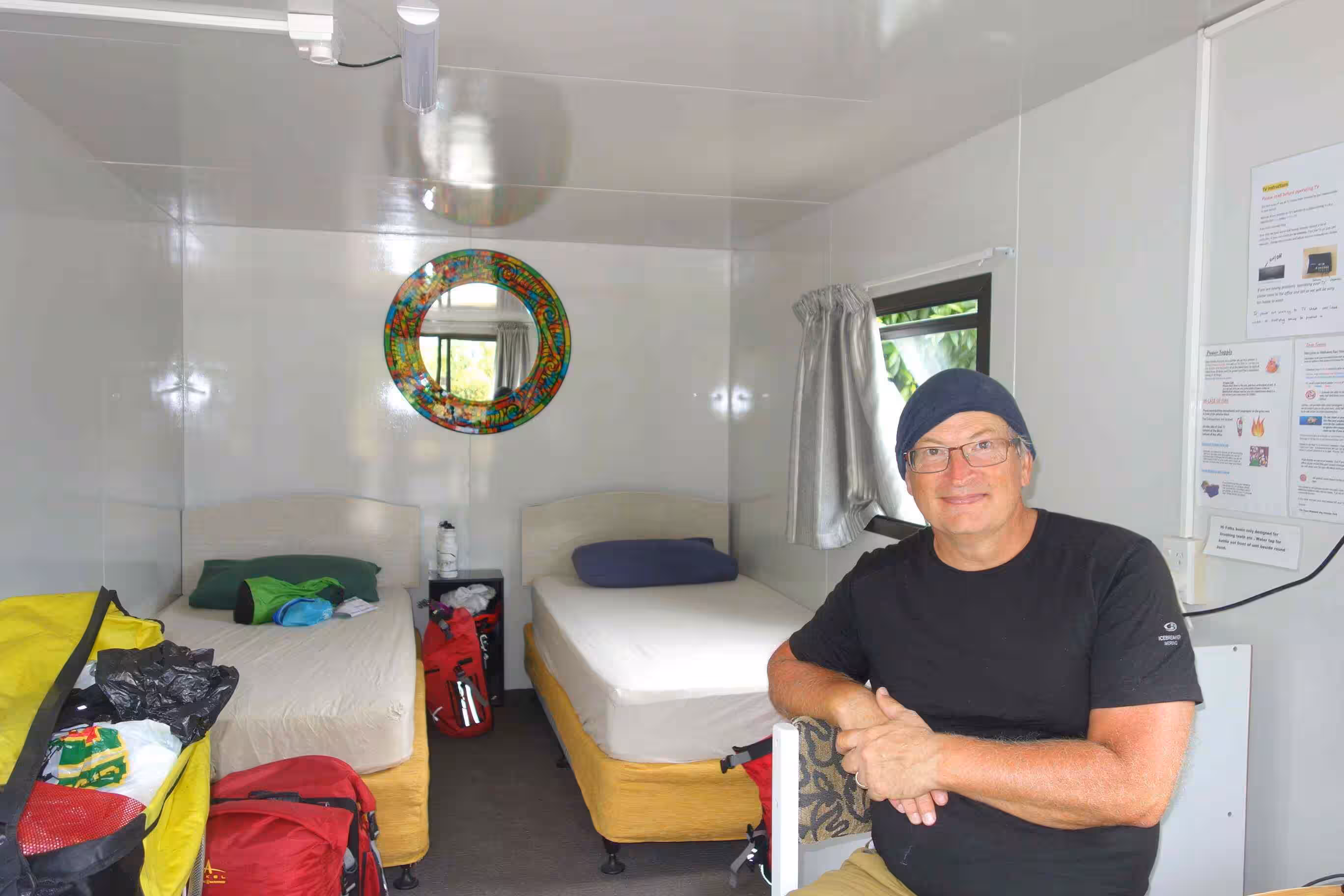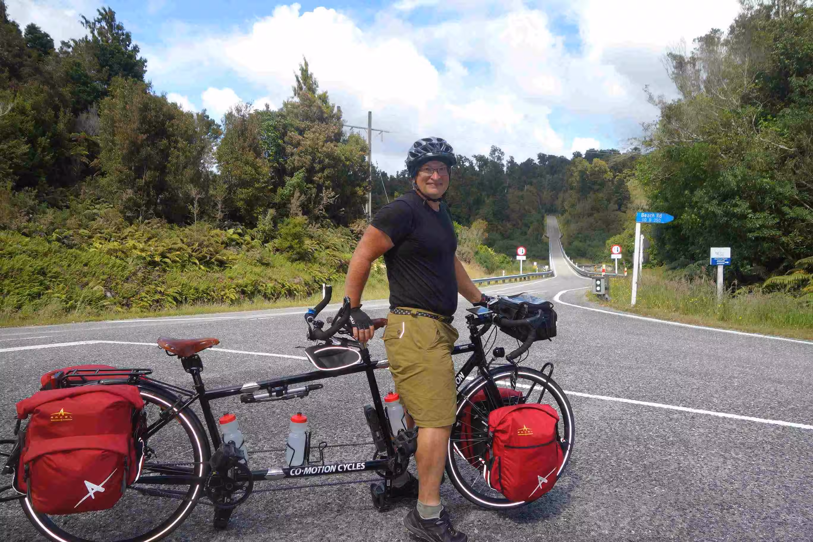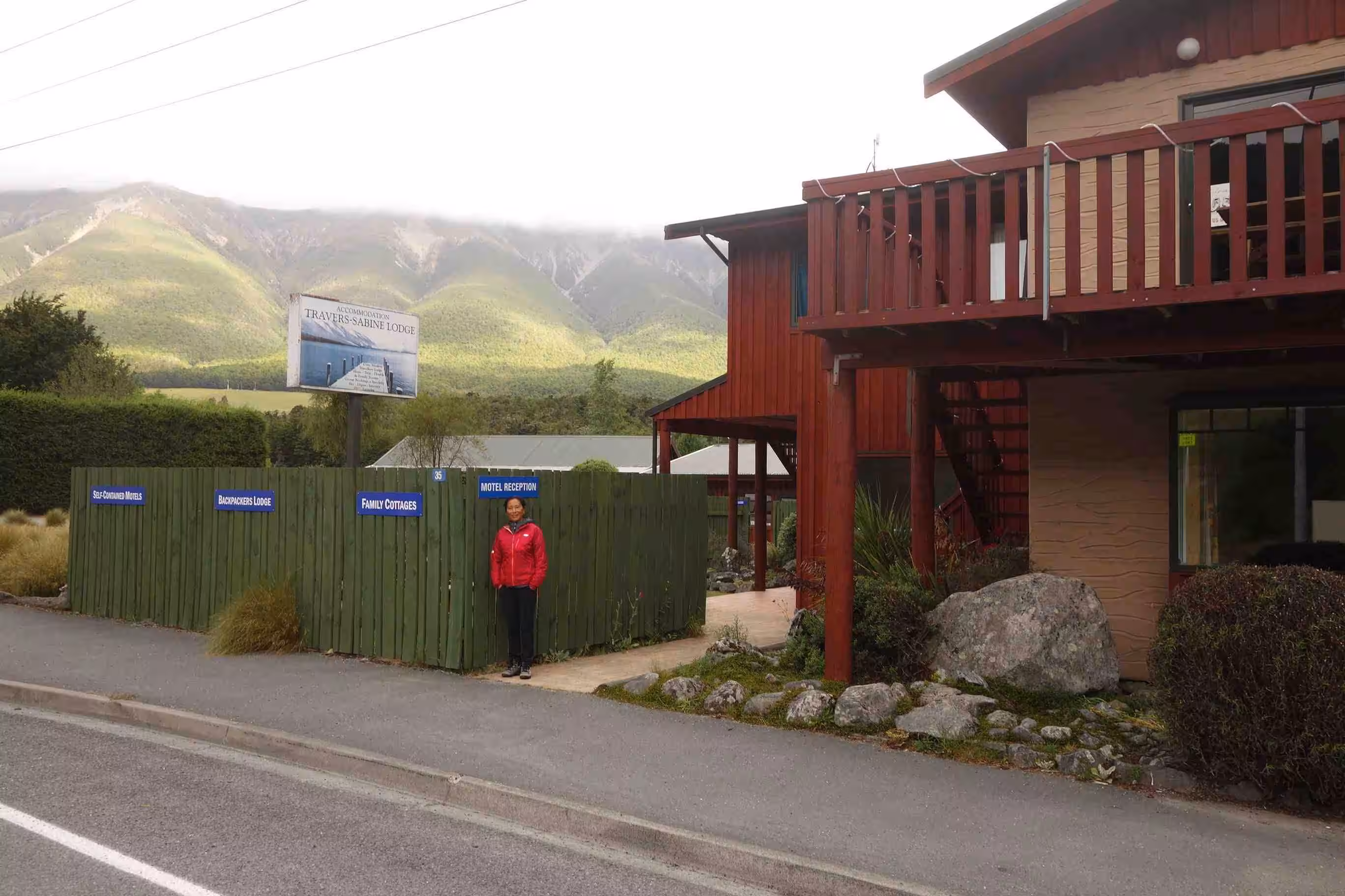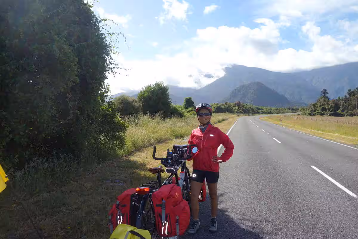 2017.12.11 – [NZ] Franz Josef Glacier ==> Hari Hari (62 kms | Total: 1821 kms) – We awoke to a partially sunny sky and dry ground. After cooking our breakfast in our kitchen cabin, we loaded the tandem and trailer and headed further north on the west coast. The road was inland and relatively flat except for a good climb around Mount Hercules towards the end of our cycling day. Jenny was mildly disappointed by the small size of town that Hari Hari was actually compared to some of the pictures she had seen on the internet. We had not been able to make an on-line reservation at the Hari Hari Hotel but it was certainly not a problem. We initially requested a backpacker room, which usually worked out fine for us, but when the hotel attendant offered the room for $25 it should have raised a red flag in our mind. Only a few minutes after having brought our panniers into the room, Jenny was fairly disappointed with the room. She could not phantom waking up in such a room the next day – on her birthday. We easily upgraded to a motel room – at a bargain price similar to our typical cabin accommodation. We went to the local café for a light lunch. We were pleasantly surprised by our evening meal at the hotel’s restaurant. Needless to say that Hari Hari was not one of the liveliest town.