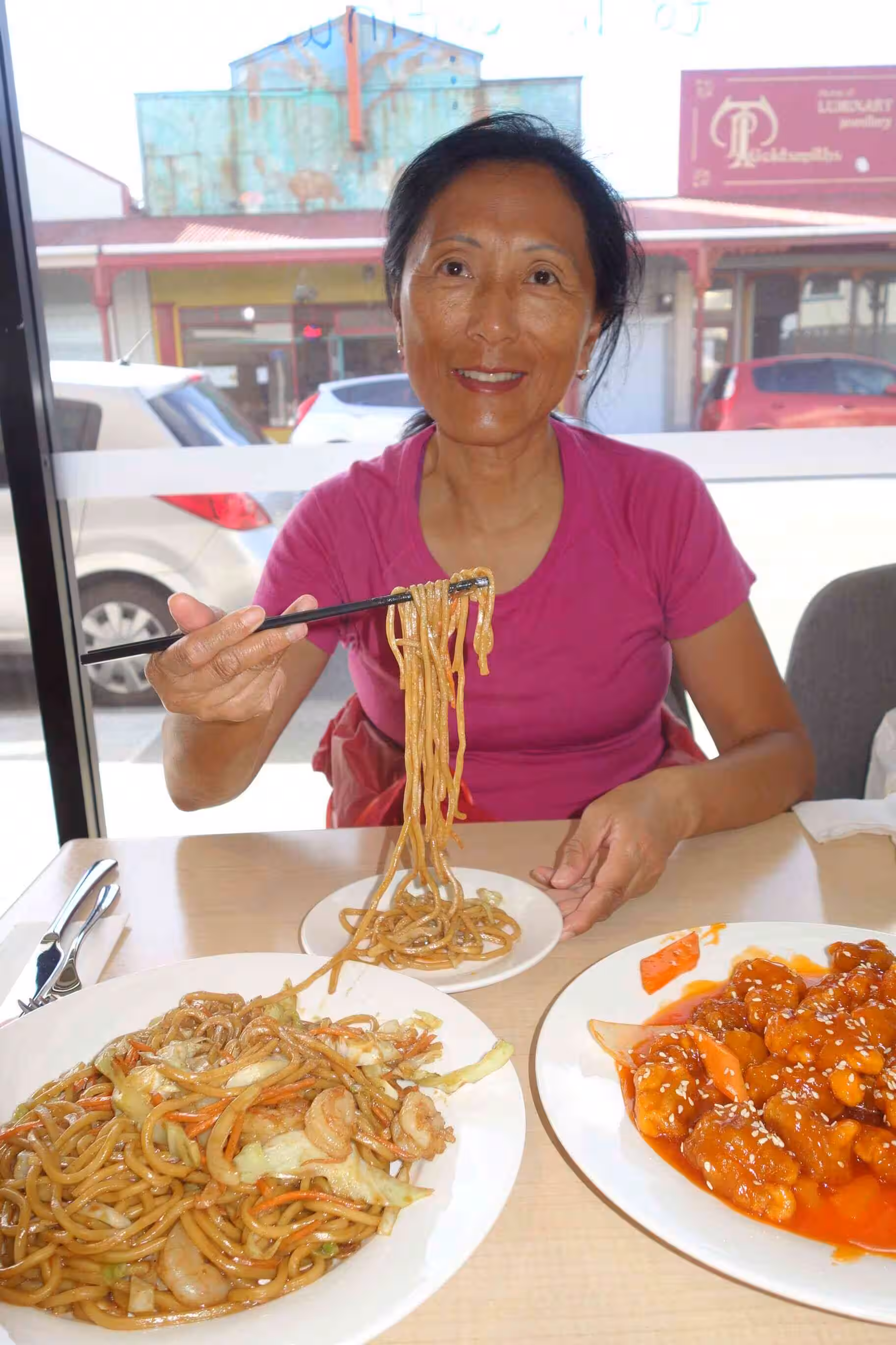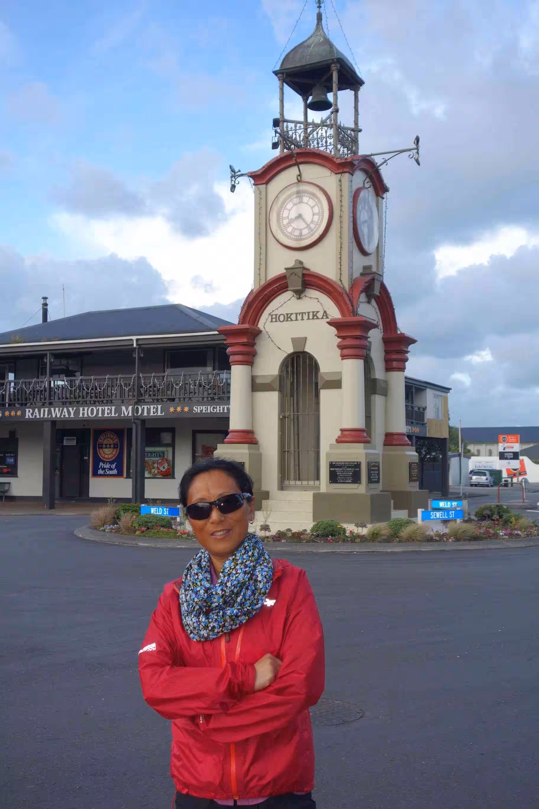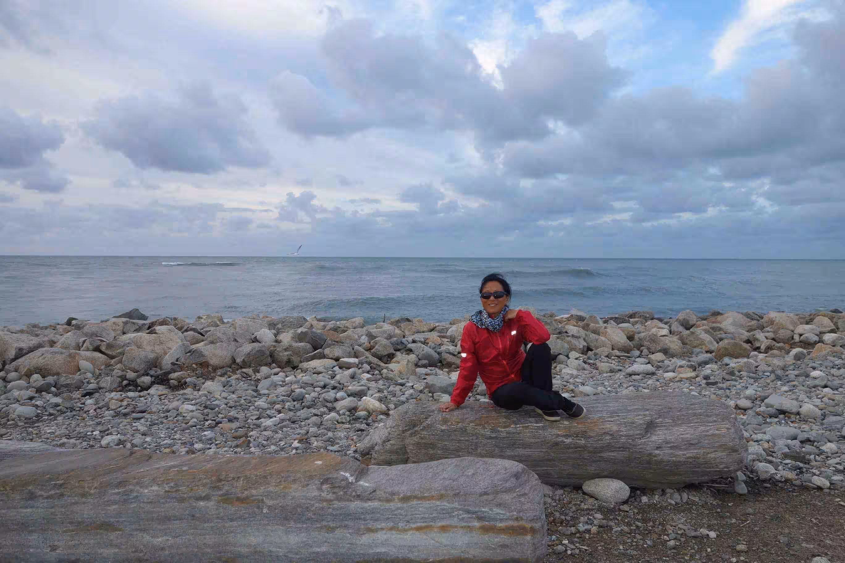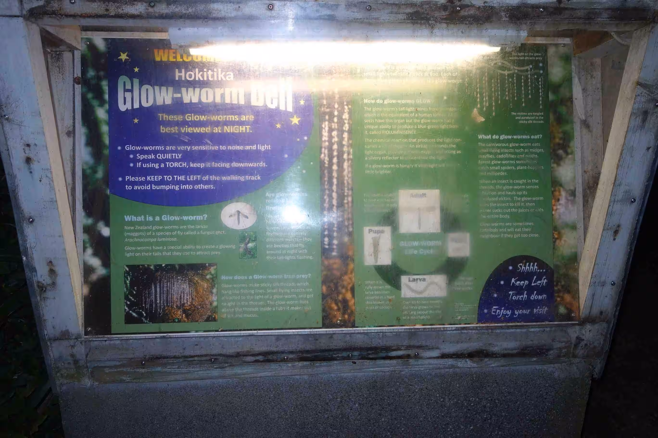 2017.12.12 – [NZ] Hari Hari ==> Hokitika (75 kms | Total: 1896 kms) – Before leaving Hari Hari for our 70+ kms cycling day, we had a breakfast across the road at yesterday’s café. The road was not as flat as yesterday but the partially clouded sky made the cycling enjoyable. Mid-route, both Maps.me and Google maps, had suggested to take Beach Rd along the coast – allowing us to by-pass some hilly terrain. Unfortunately, after one km on a sealed road it turned to gravel. We turned around as we much preferred the hills to the gravel road. We cycled some long stretches of strait road on which the previous day a car crash had occurred and had closed the road (alert on the NZ transport website). We did not notice any remnants of this accident when we cycled by. We were a bit excited when we rolled into Hokitika as it appeared quite lively – compared to Hari Hari. We checked into a nice room at a central backpacker accommodation. After our shower and some rest, we went for our evening meal at a Chinese restaurant. I made sure that Jenny had a plate of long noddle on her birthday. The backpacker attendant suggested that we caught the sunset at … Sunset Point in the evening and then later visit the famous Glow worms dell some 30 mins walk from our accommodation. The sunset was not great as it was too cloudy and windy. On the other hand, the free visit of the Glow worms dell was worthwhile even though we did not stay very long as there was not much to do after snapping a few pictures.