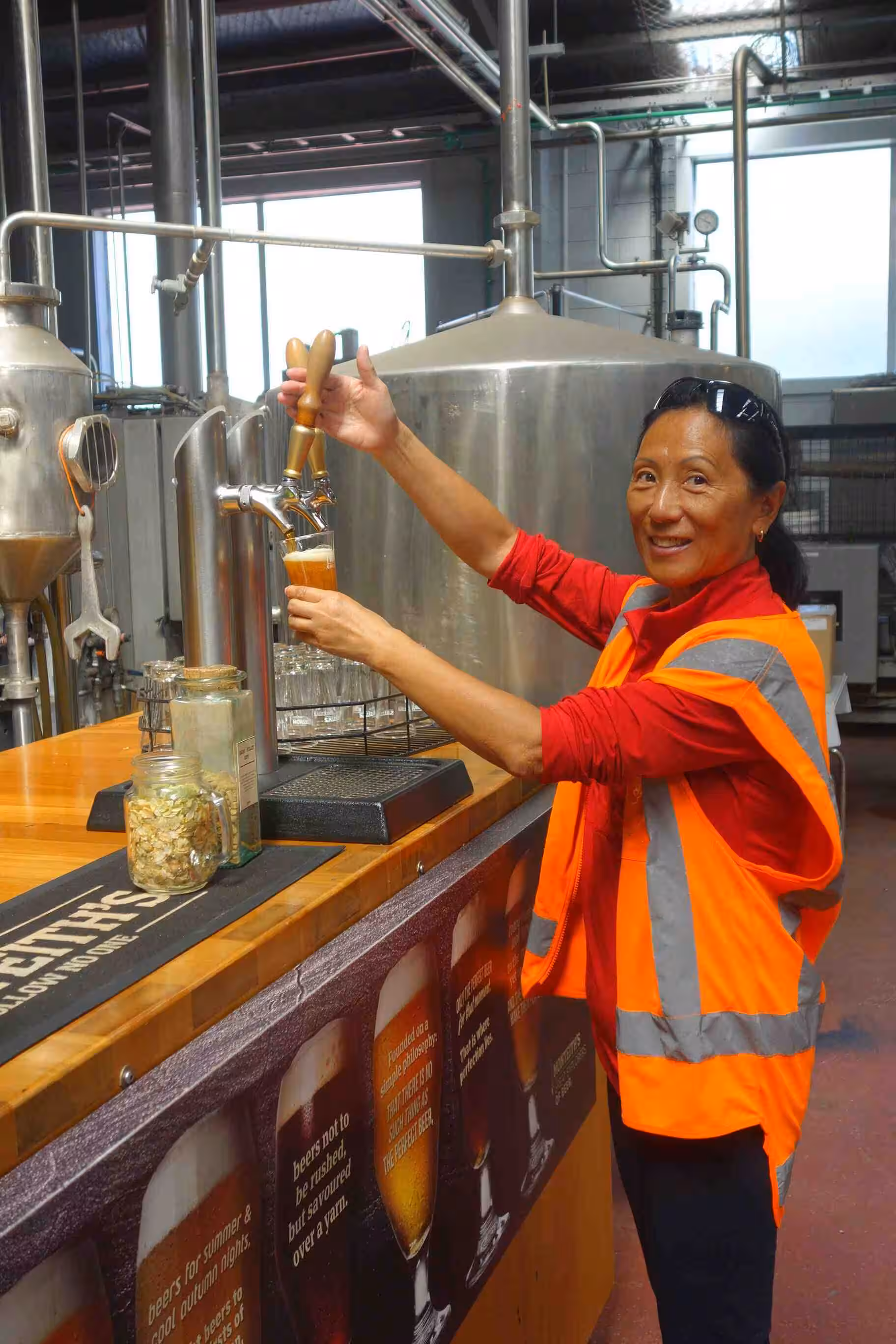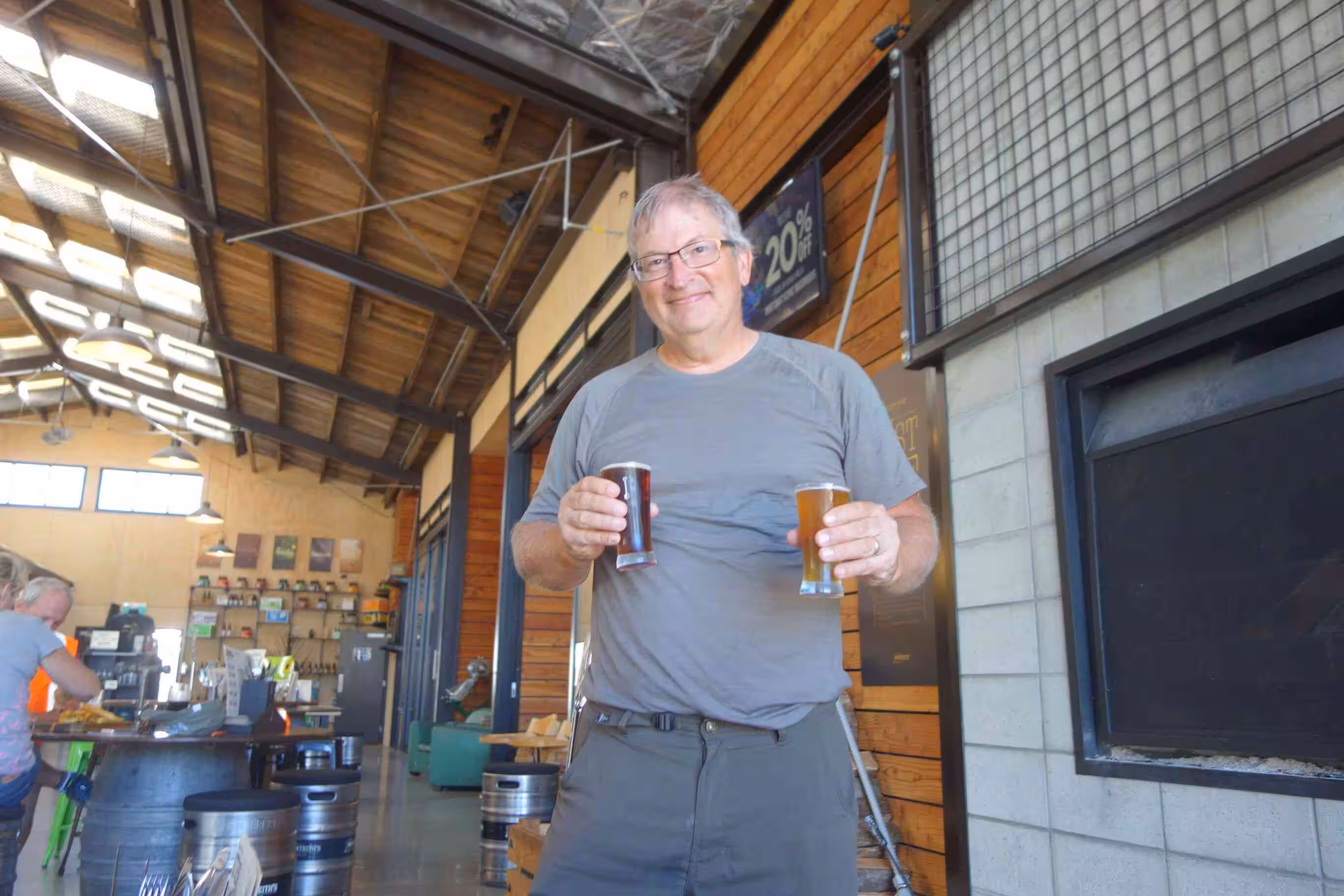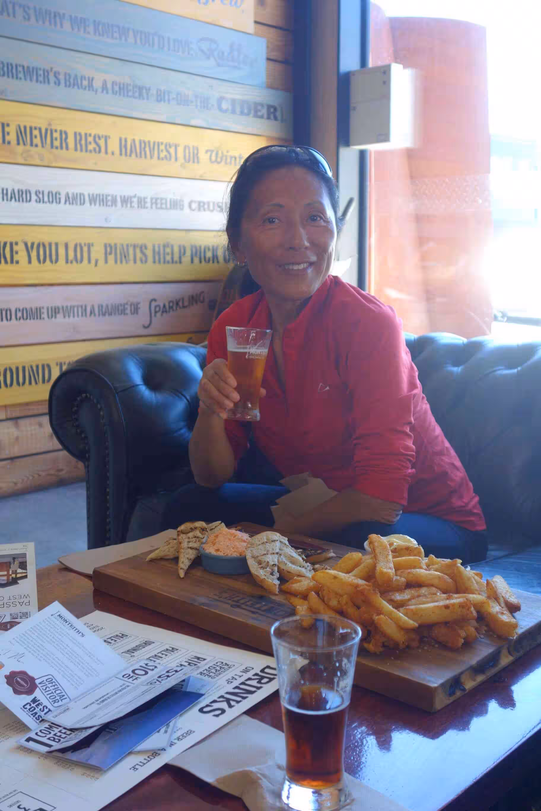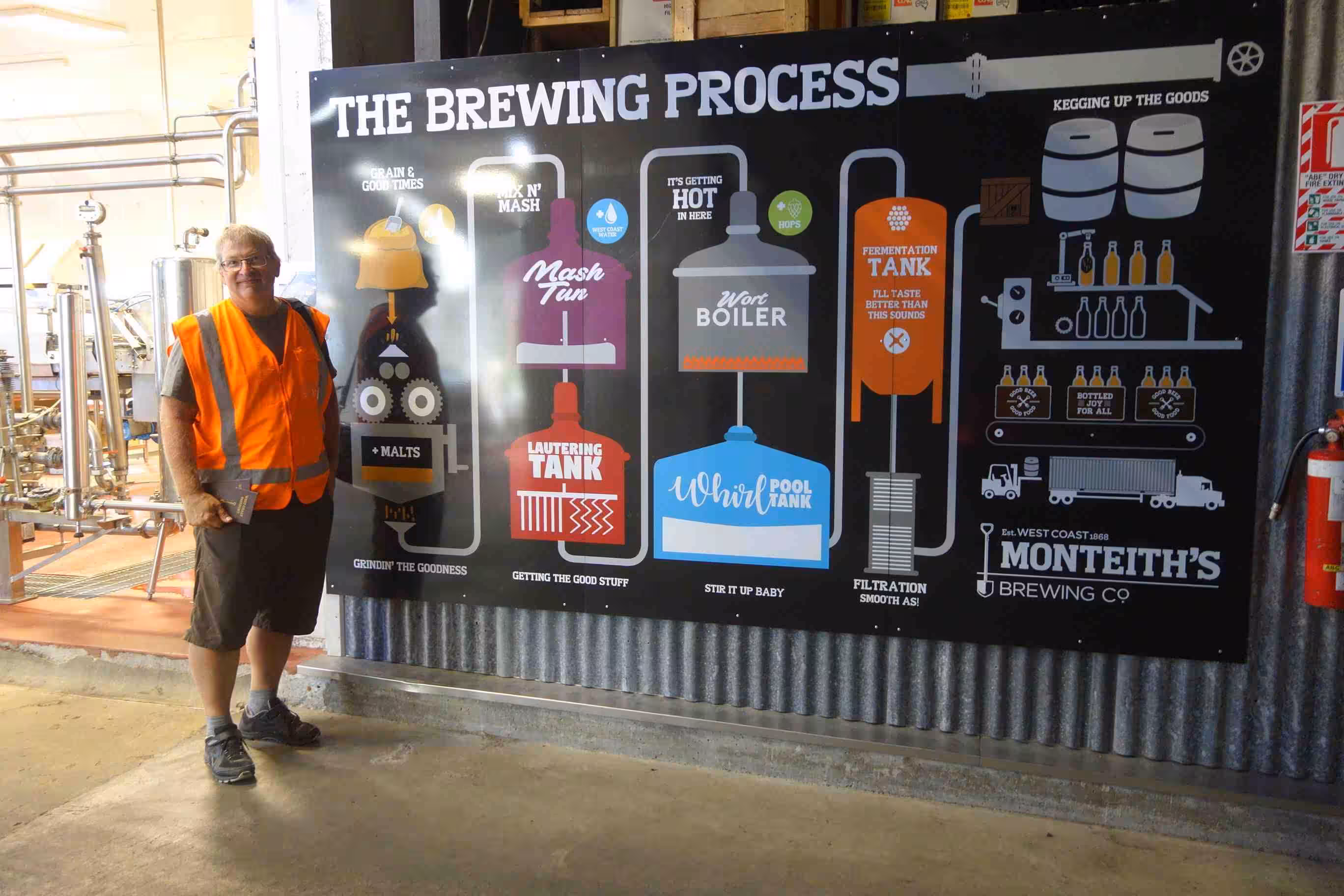 2017.12.14 – [NZ] Greymouth ==> Greymouth (0 kms | Total: 1934 kms) – After our breakfast, we cycled the 3 kms into town and stopped at a McCafé for some lattes. We explored the start of the West Coast Wilderness cycling trail over a few kms. We showed up at the Monteith craft brewery for their 3:00pm tour and accompanying tasting! We spent a few hours relaxing, drinking and snacking at the brewery. In the evening, we walked the 300m to the beach from our holiday park to view the sunset scheduled for 9:06 pm. We had somewhat a better success at capturing the scenery this time.