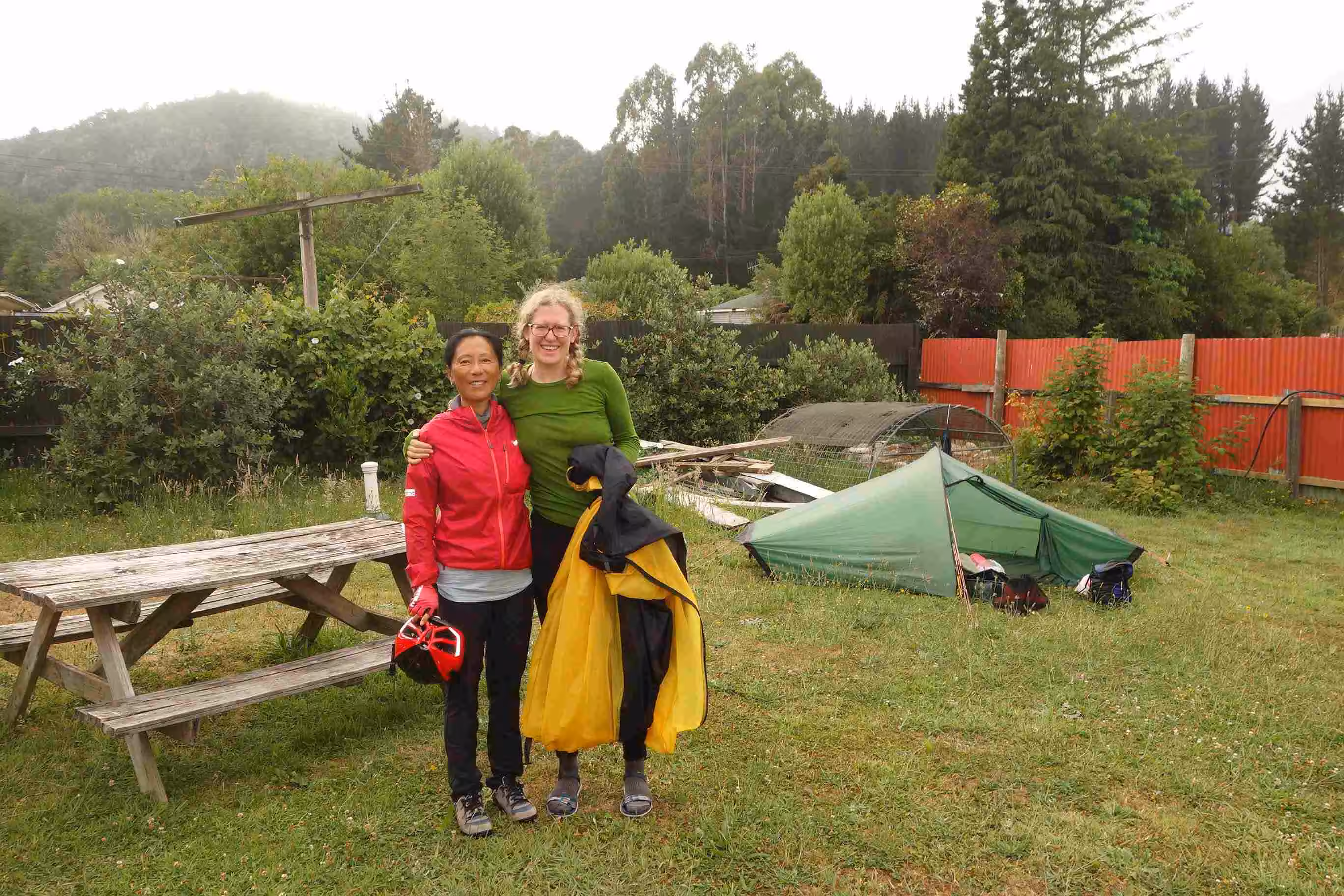 2017.12.17 – [NZ] Inangahua ==> Murchison (60 kms | Total: 2112 kms) – Overall we had a good night sleep in our improvised camp site. Nonetheless, we were eager to leave the place. Hence, we started our earliest cycling day of the trip at 7:30am. The road snaked along the Bulle gorge with up and down hills. As we cycled, we were thankful for the shade from the forest and from the clouds. We stopped along the way for some oranges and yogurt. Upon arriving in the town of Murchison, we stopped at a very busy café/restaurant frequented by tour buses. We had a good lunch and rest there. We bought some groceries before continuing our road some 9 kms further to our holiday park that we had previously reserved. After settling into our cabin, we had to dry out the tent from early morning dew. After our usual shower and clothes washing, Jenny cooked some veggies to accompany our cooked roast chicken from the grocery store. We were happy to have once again access to wifi – even if we had to pay a few dollars for it.