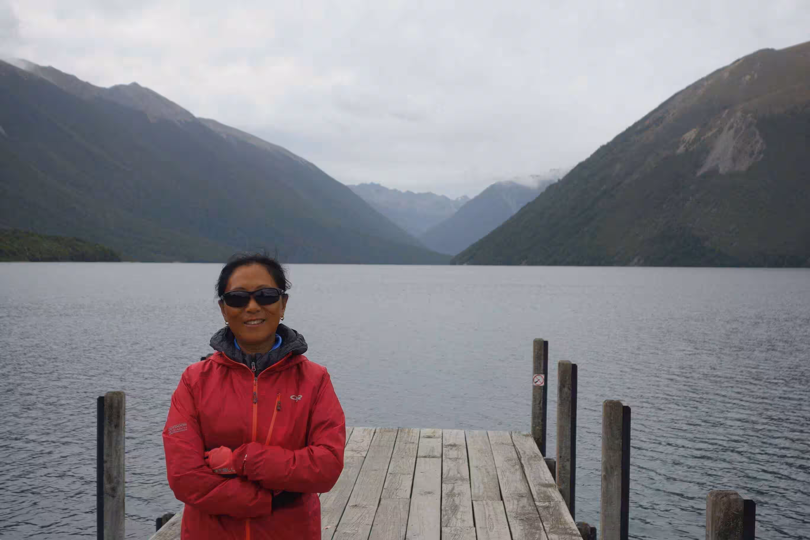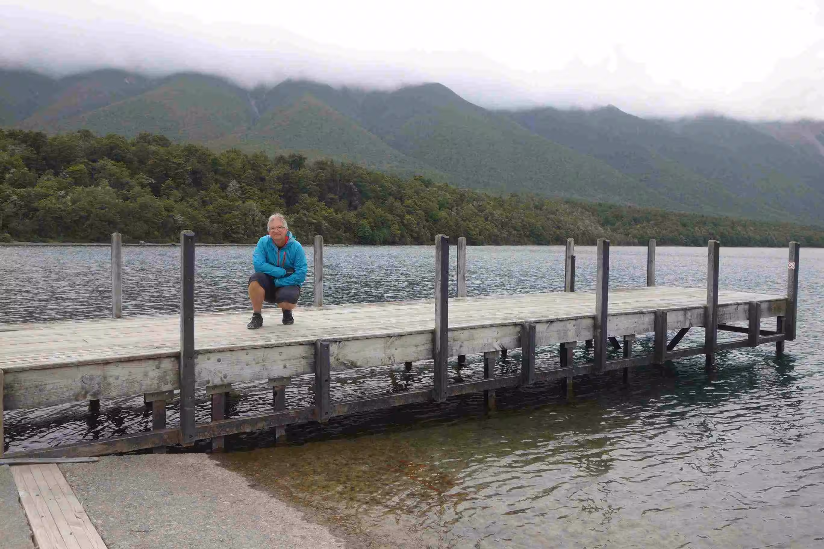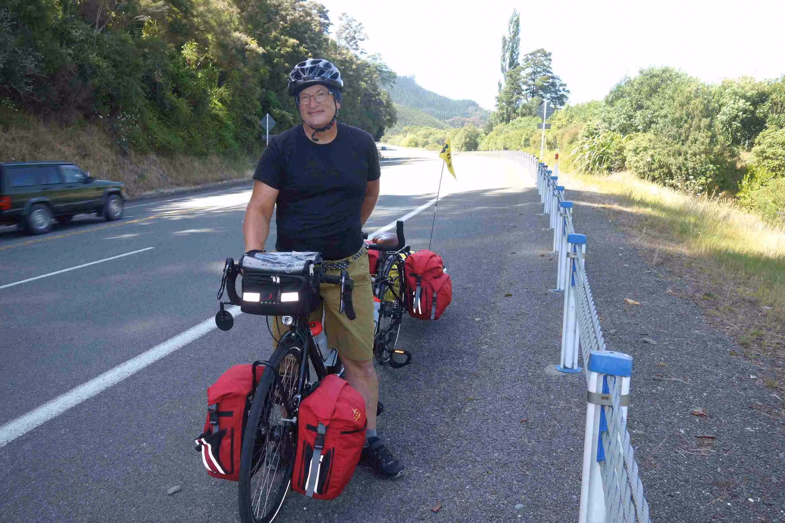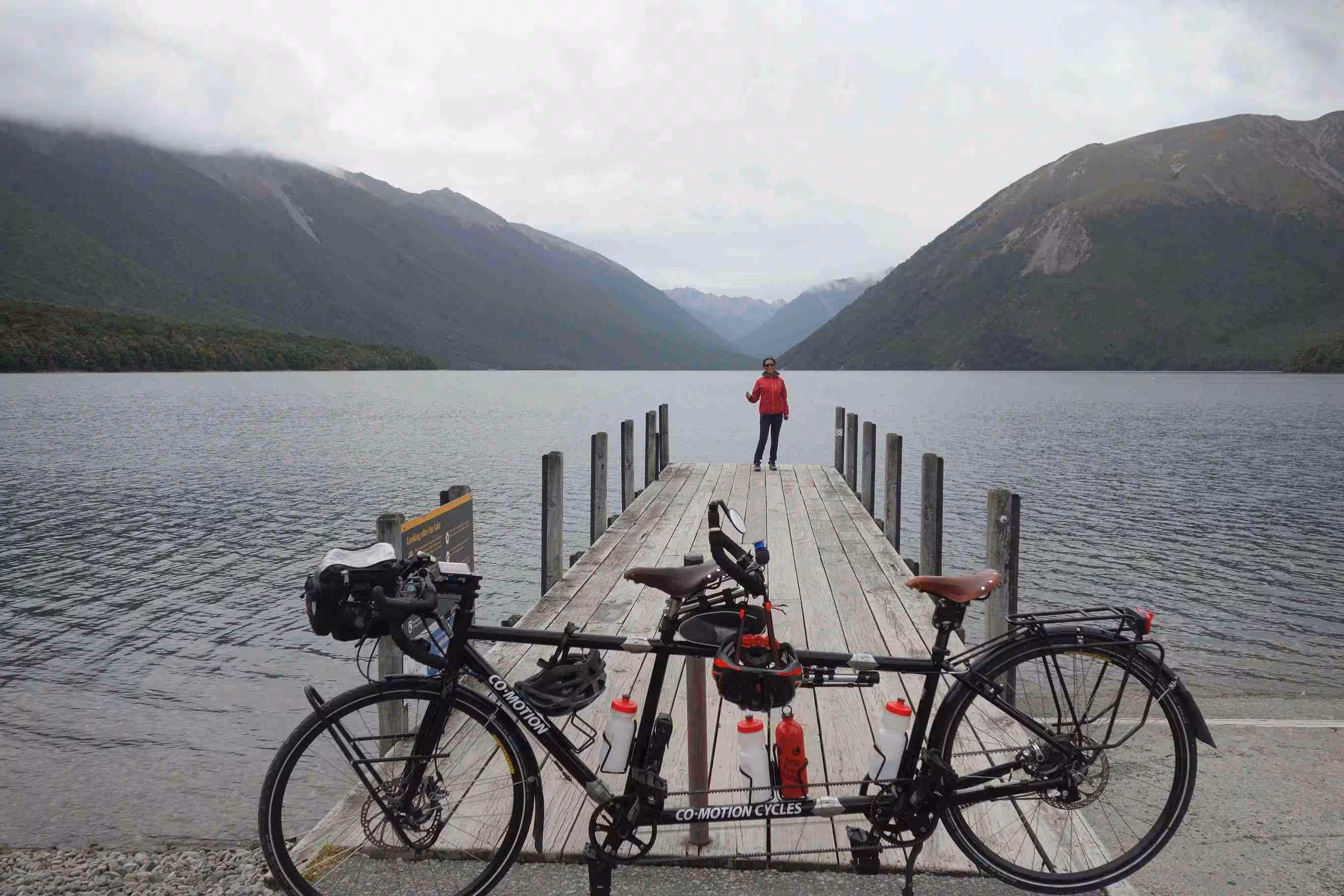 2017.12.18 – [NZ] Murchison ==> Saint Arnaud (53 kms | Total: 2165 kms) – Only a week ago, the road from Murchison to Saint Arnaud would have been difficult to cycle because of the heavy vehicle traffic. This stretch of road had been designated as part of a long detour since an earthquake on 14 November 2016 had cause a couple of land slides along the direct road (Highway 1) from Picton to Christchurch. The corrective roadwork allowed for the re-opening of Highway 1 only starting Dec. 15th – for daytime use only. As we were not expecting any facilities on the road, we cooked some eggs for breakfast before leaving our holiday park. We still encountered quite a bit of traffic until mid-journey to the turn off for Nelson. As expected, our cycling day was fairly demanding as the road climbed steadily with an altitude gain over 300m. The heat from the sun made the long strait stretch of roads very boring – giving the impression that we were riding on flat terrain while we were still pedaling on some of our lowest gears. A few kms before arriving in St Arnaud, we were confronted to a heavy head wind. We had a light lunch at the town café/petrol station before checking into our nice and modern backpacker accommodation. As we headed for our evening meal at a nearby restaurant, the sky started to get covered with rain clouds. During our meal, the rain came down putting a damper to our idea of walking to the nearby beautiful lakes, part of the Nelson National park.