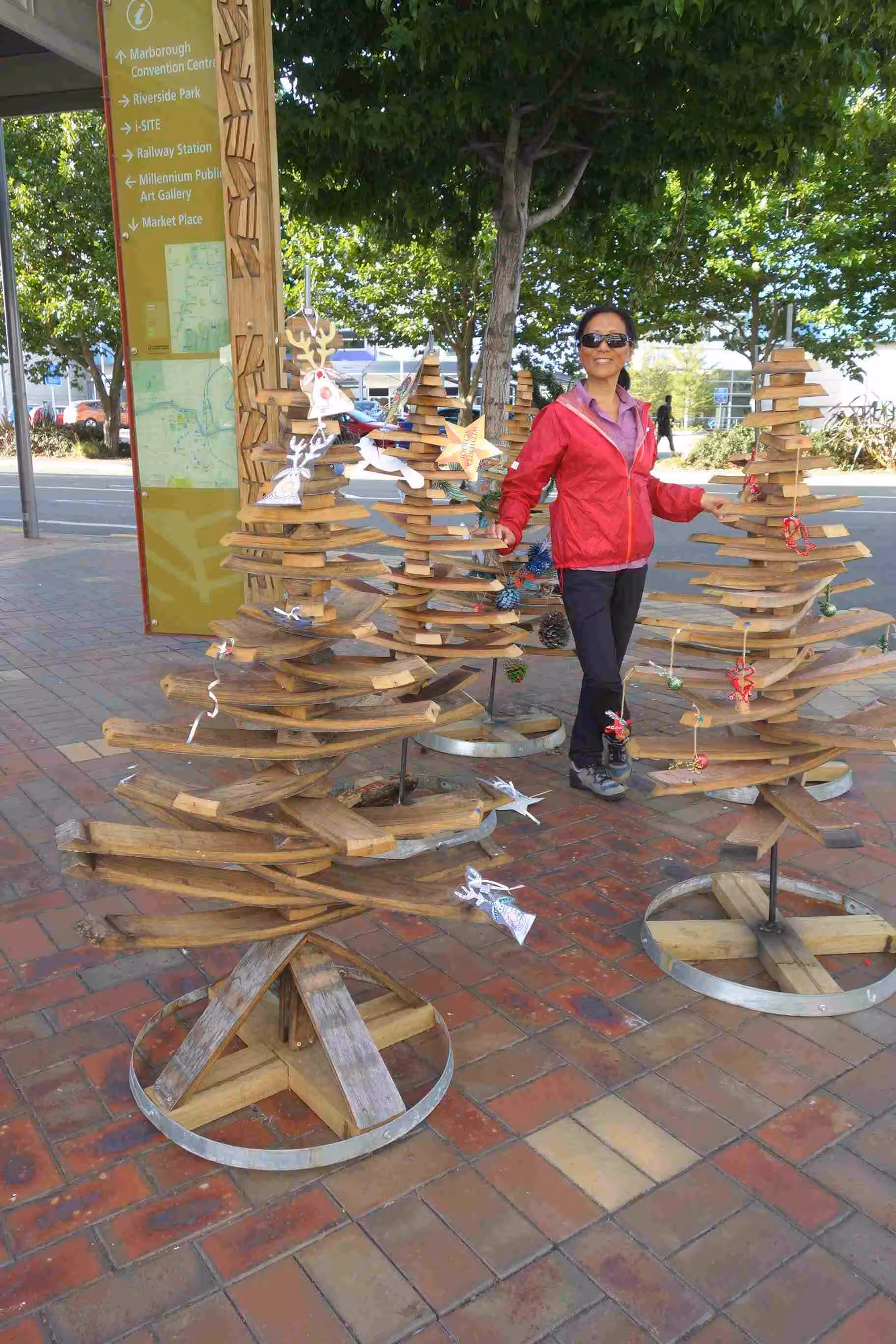 2017.12.20 – [NZ] Wairau Valley ==> Blenheim (45 kms | Total: 2279 kms) – The night was particularly cool in our cabin. We decided to avoid the communal kitchen to fill our water bottles as we normally did as part of our daily morning routine – instead we filled our bottles from our washroom sink tap. As our cycling was fairly short at 40kms, we set out on the road without eating anything. We again cycled pretty fast on the mainly flat road bordered on each side by wineries for which this Marlborough region was famous for. Along the way, we stopped at a café in Renwick for some lattes and breakfast snacks. We continued to see wineries until we arrived in Blenheim another 8 kms further. Before making our way to our holiday park, we stopped for some groceries. We still managed to arrive at the holiday park by noon. Unfortunately, we were told that our room would not be ready for another hour and half. We cycled back into town and had a light lunch at McDonald’s. The vehicle traffic in town was quite heavy over those few kms. After our successful check-in at 2:00pm, we showered and relaxed and watched the holiday park fill up with late afternoon arrivals. To our disappointment, we realized that many of the wineries open to the public were those that we had cycled alongside on the way to Blenheim. After our own cooked meal, we took a long walk into the town center.