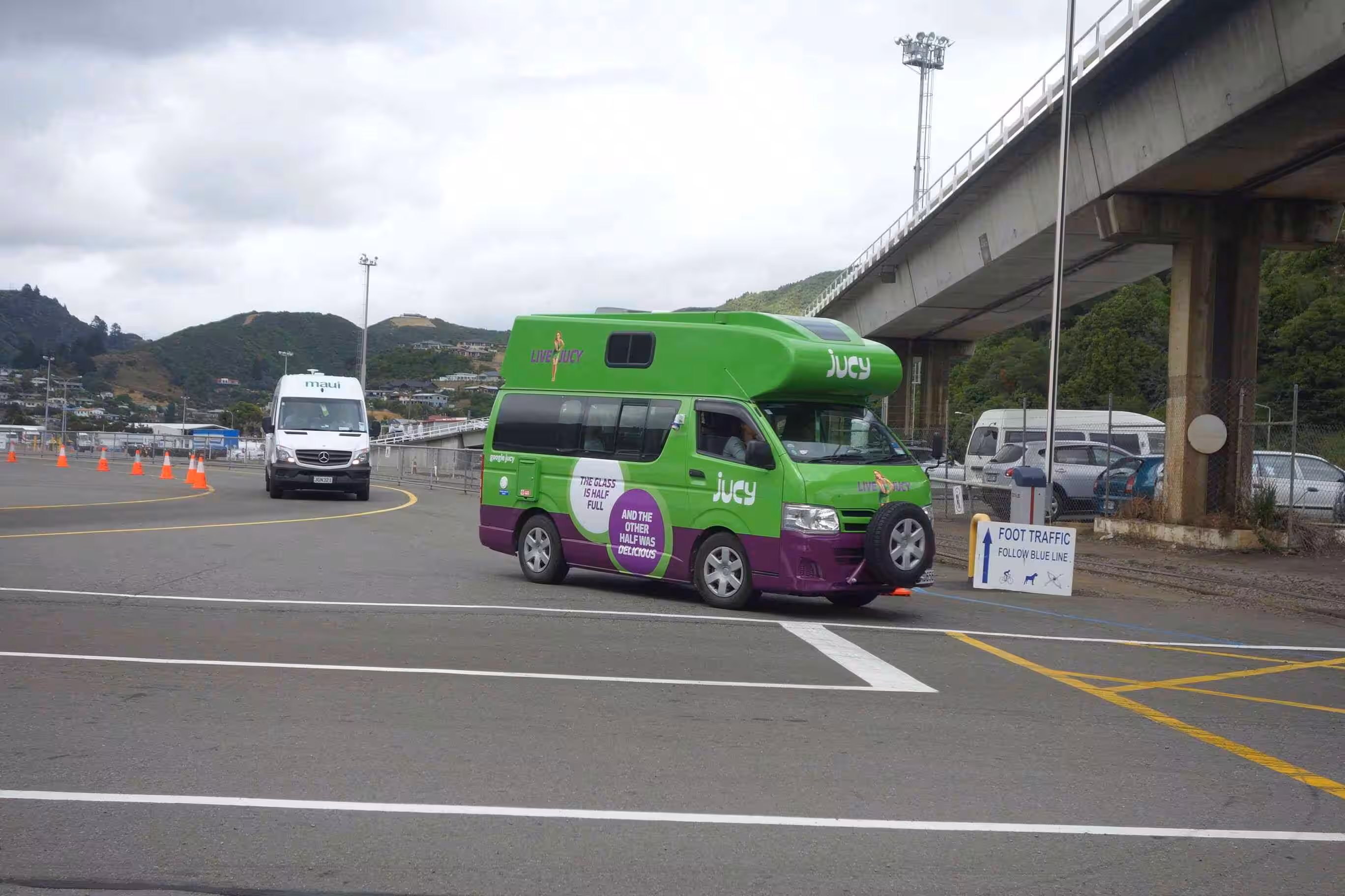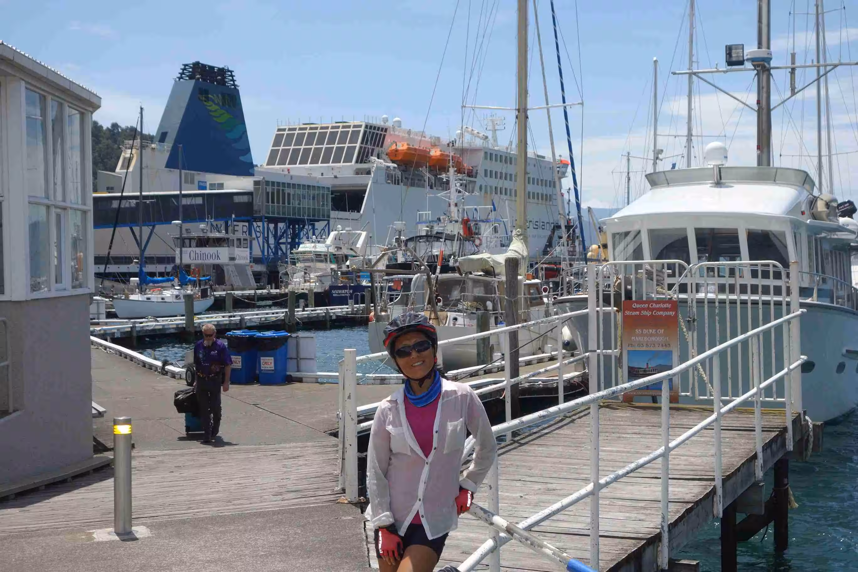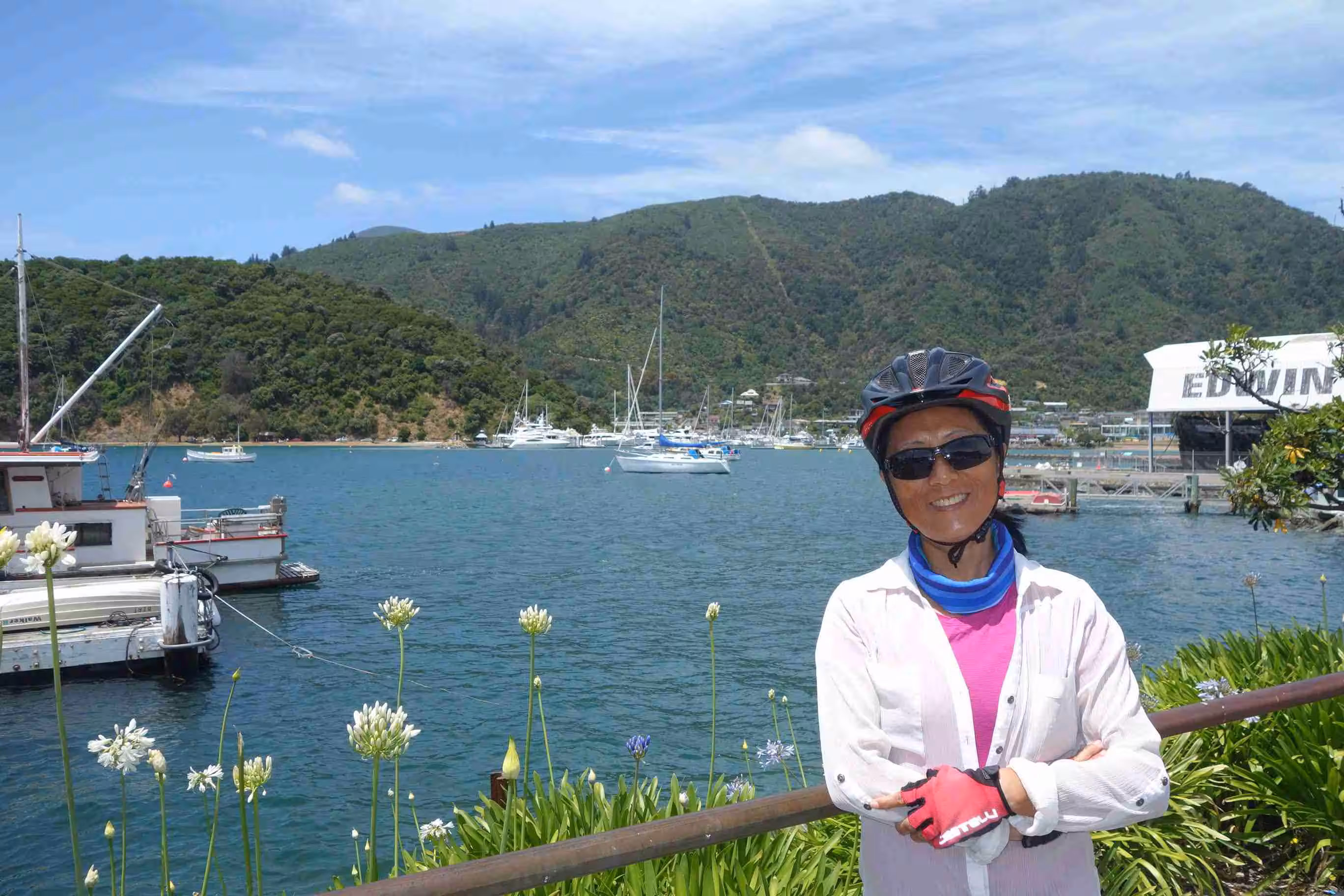 2017.12.21 – [NZ] Blenheim ==> Picton (Waikawa Bay) (34 kms | Total: 2313 kms) – As we had planned a very short cycling day, we had a slow wake-up morning. We cooked breakfast and left our holiday park at 9:45am. We expected a heavy vehicle traffic this morning over the 27kms to Picton. The wide road shoulder did provide some relief. We were not cycling anywhere close to the speed we had been going over the past two days as we had a light headwind against us. Although we did not scream out our joy when we arrived in Picton, it was certainly a major milestone for us marking the end of our cycling on New Zealand’s south island. We stopped at café for some lattes. We bought some groceries for our evening meal. We also took the opportunity to visit the ferry terminal and inquiry about the check-in/boarding process that we would be going through tomorrow for our 10:45 am sailing to Wellington on the north island. We were quite glad that we had purchased some groceries before arriving at our holiday park some 4kms further as there were no restaurants, taverns or stores around the area.