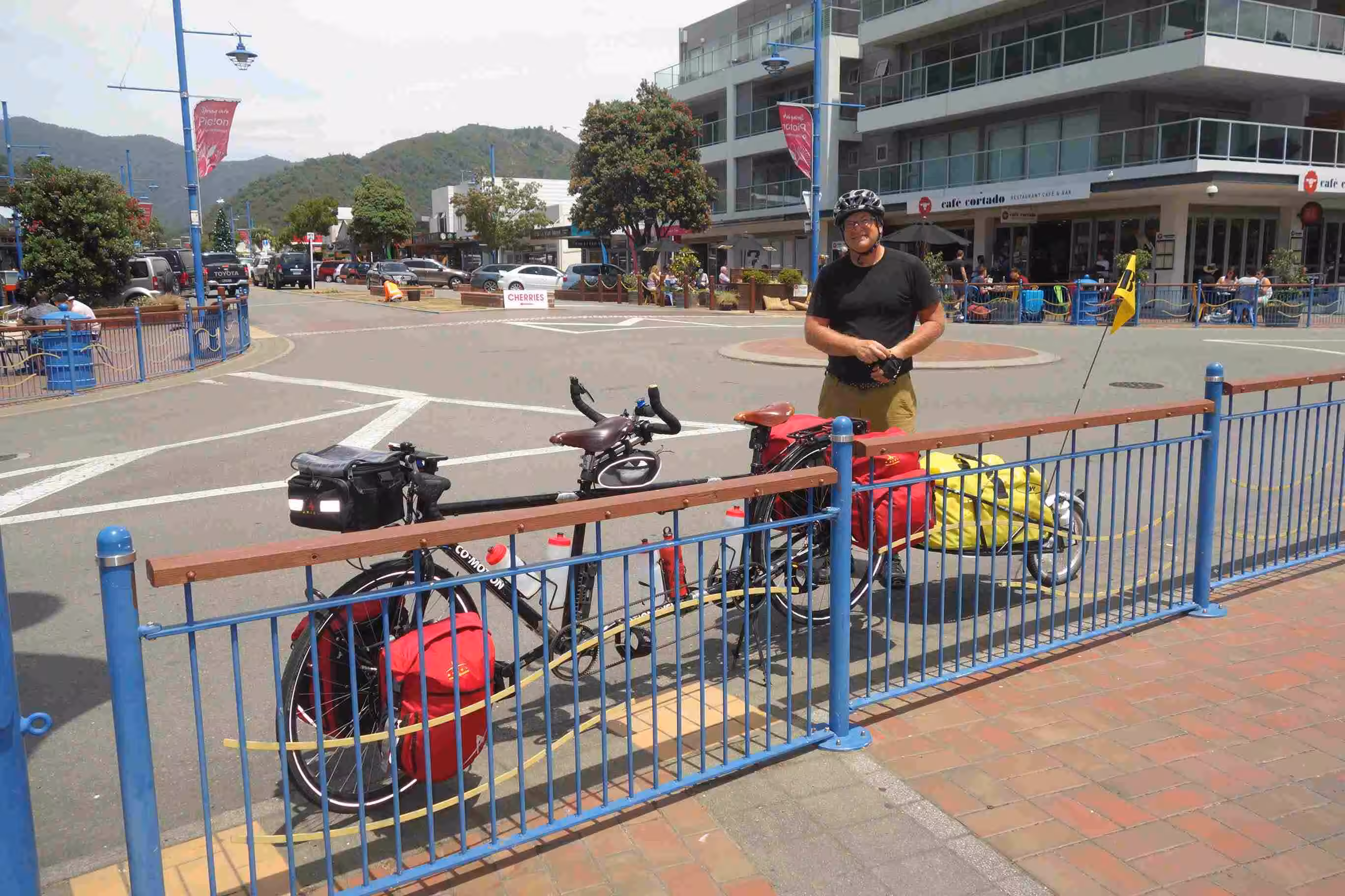 2017.12.22 – [NZ] Picton (Waikawa Bay) ==> Wellington (10 kms | Total: 2323 kms) – We woke up to some hefty winds as if our cabin was about to be blown away. The sky quickly clouded up and it started to drizzle as if the south island was sad to see us leave! By 8am, the sky had cleared and the wind had died down considerably. We cycled the 4 kms back to Picton’s city center. We stopped for breakfast at a local café where we also enjoyed a good chat with two ladies from Auckland traveling to the west coast to meet family during the Christmas holiday. Shortly after 9am, we cycled to the nearby ferry terminal. We got our boarding passes and checked in our luggage without the hassle of any line-ups. We walked the tandem and trailer on board of the ferry ourselves once the four train segments had been taken out of the ship. The three and half hours crossing went by fairly quickly. Upon arriving in Wellington, Maps.me provided us with a safe cycling route to our downtown apartment/hotel accommodation where we will be staying at until Christmas day. We appreciated taking a good rest in Wellington. Jenny was really happy to be in a big city!