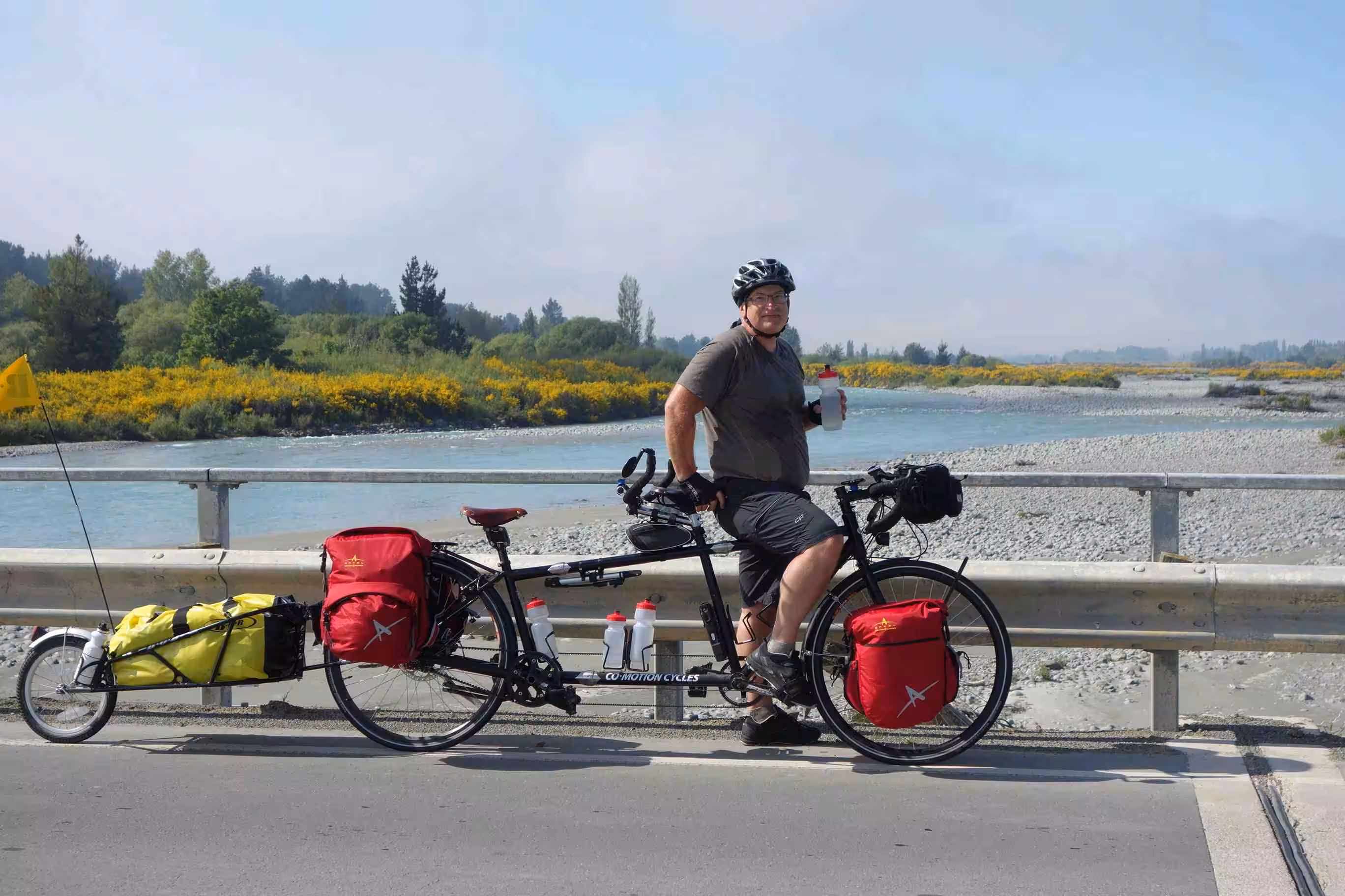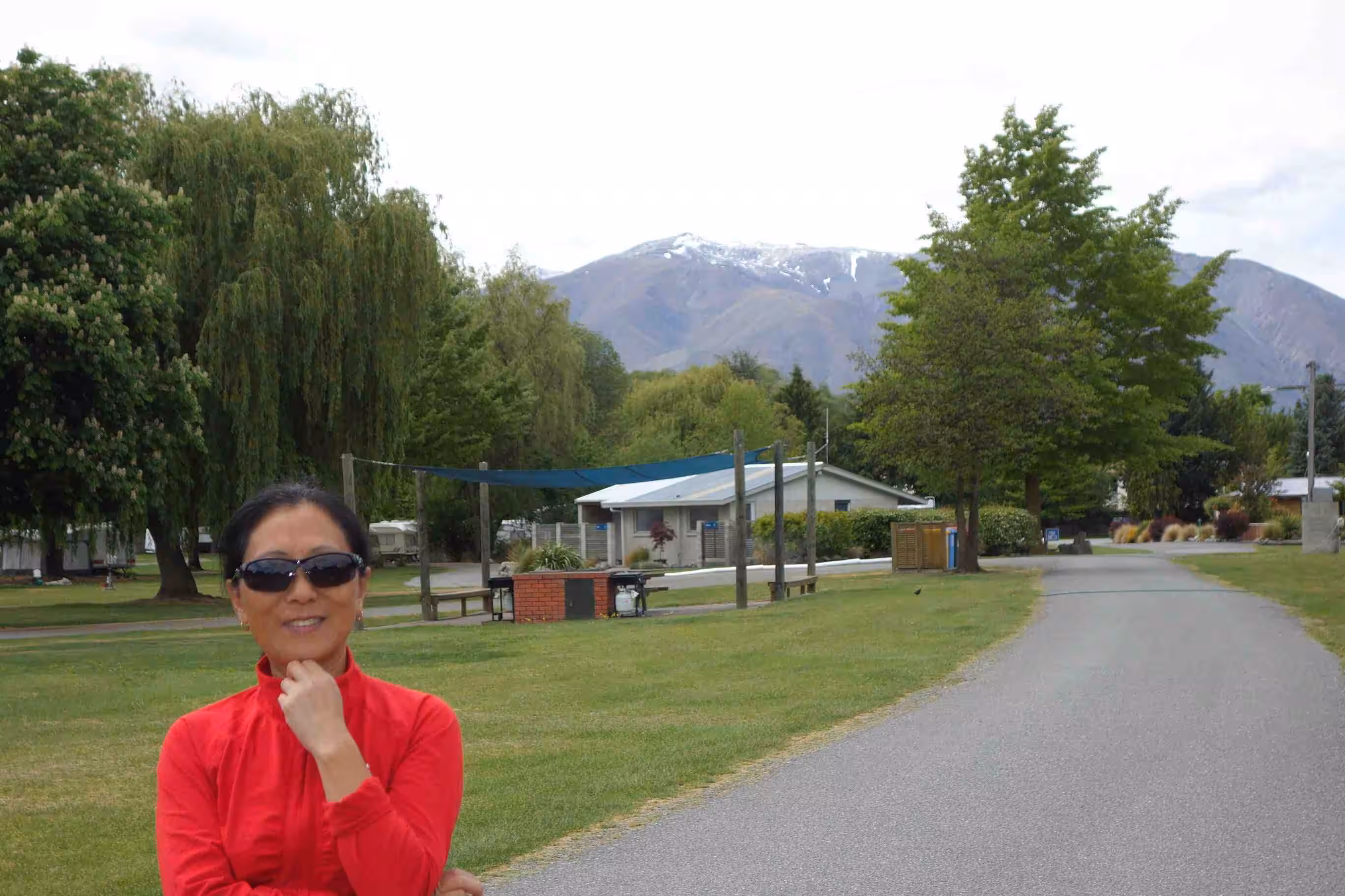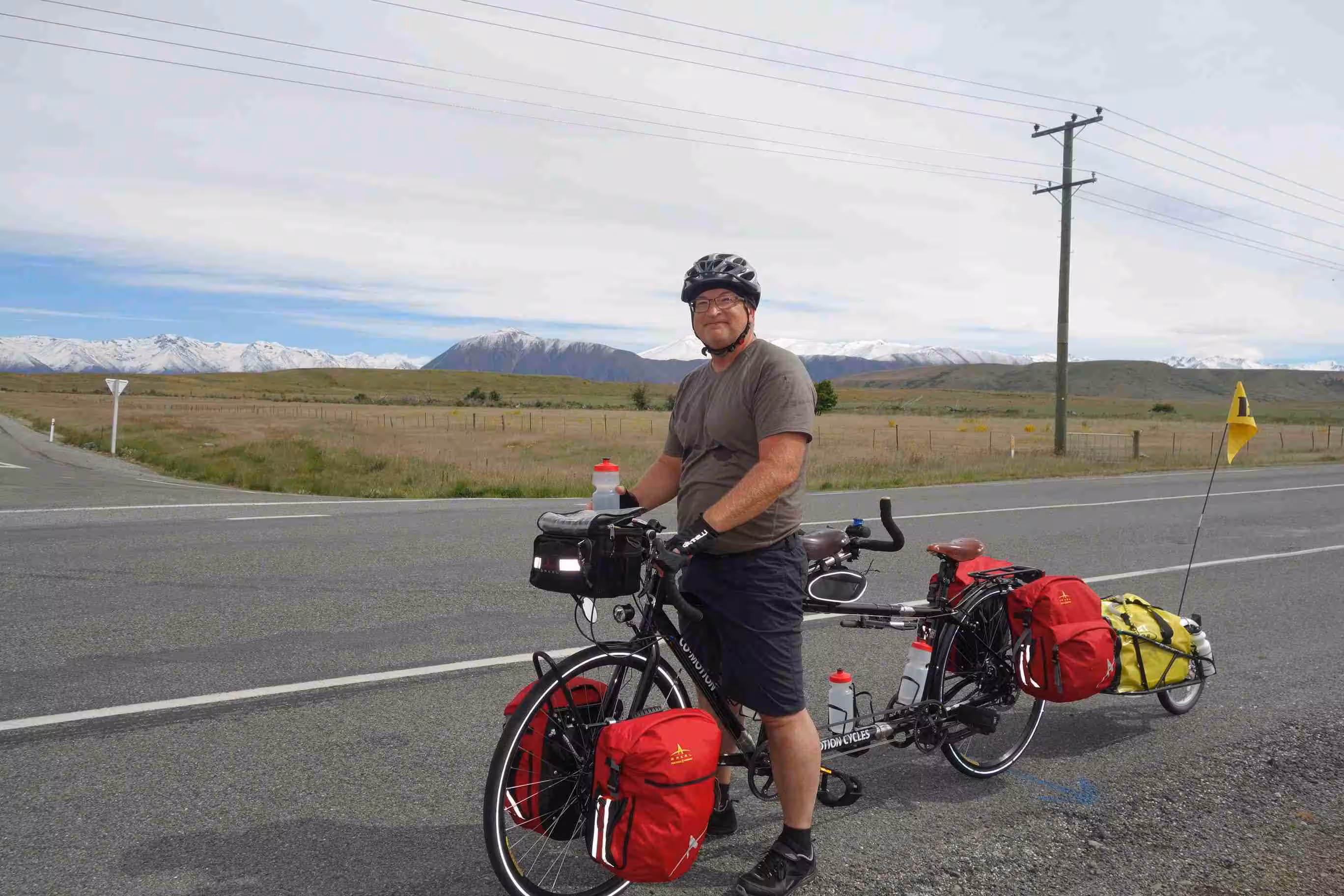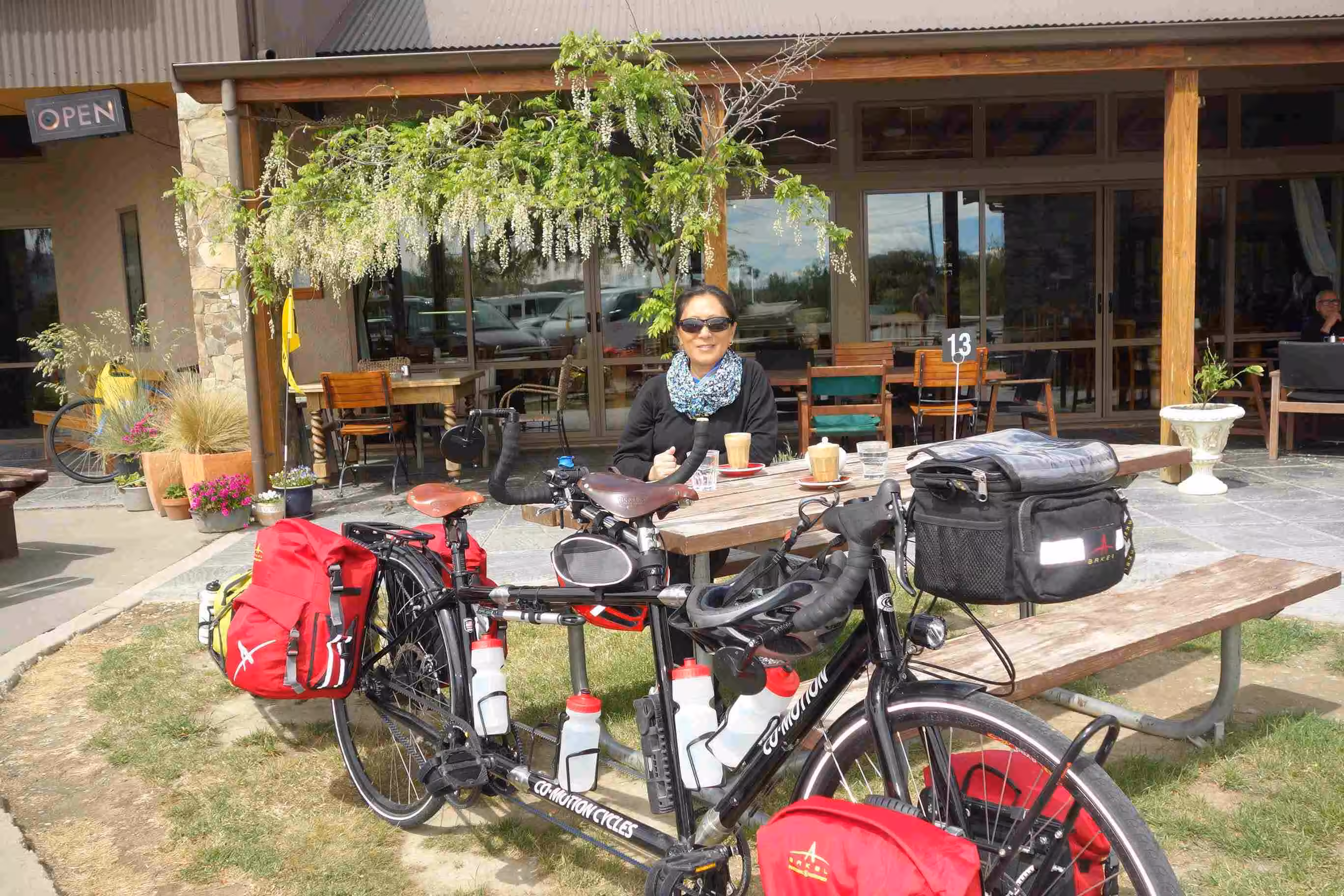 2017.10.31 – [NZ] Glentunnel ==> Mt Somers (62 kms | Total: 190 kms) – Our first night camping showed us our tent covered with a heavy morning dew. We tried our best to dry the tent before leaving our first holiday park, as camping grounds are referred to in NZ. We ate some yogurt and sandwiches for our breakfast. We set out riding under a nice sunny sky. The road was enjoyable. The traffic was fairly light and the drivers were courteous. Our main challenge for the day was a dip on the road, named the Rakaia Gorge. Needless to say that we walked up part of the steep hill bank. We encountered our first sheep roadblock along the way. And we really appreciated encountering a pleasant roadside café a few kms before our second day destination. This was one of the references our AirBnB host in Christchurch had provided us for our journey going south. At Mt Somers Holiday Park, we opted to rent a cabin in order to avoid dealing with a damp tent in the morning. We had our evening meal at the only place in town, the local tavern. The very small town of Mt Somers felt like a metropolis compared to our first day stop in Glentunnel.