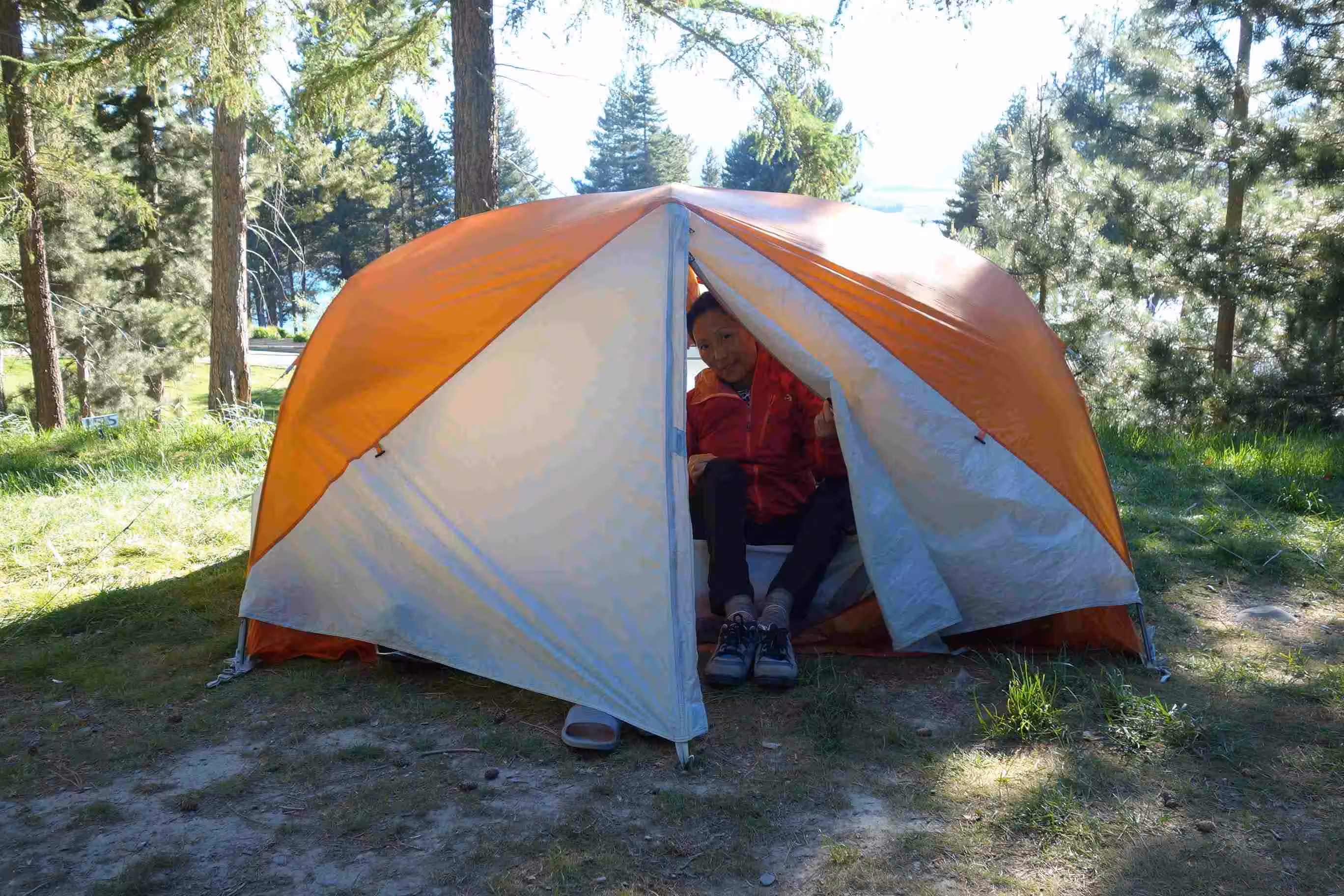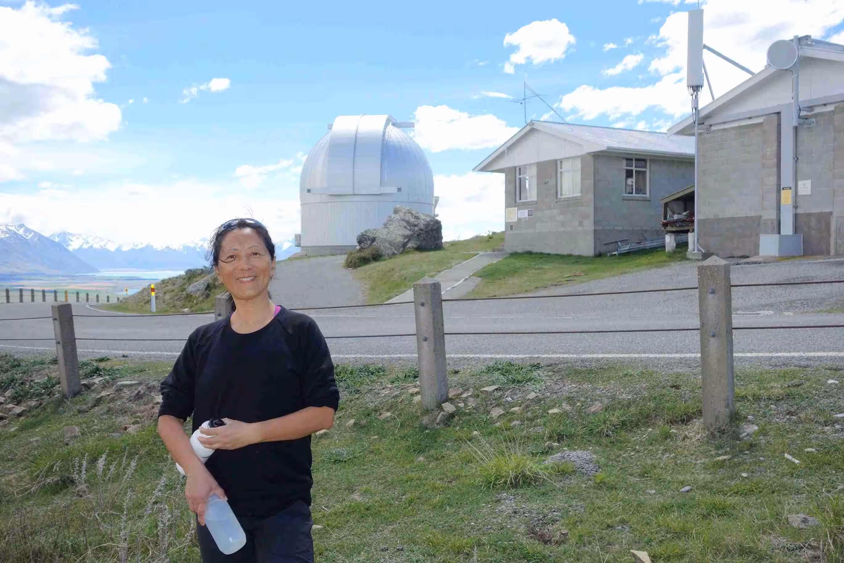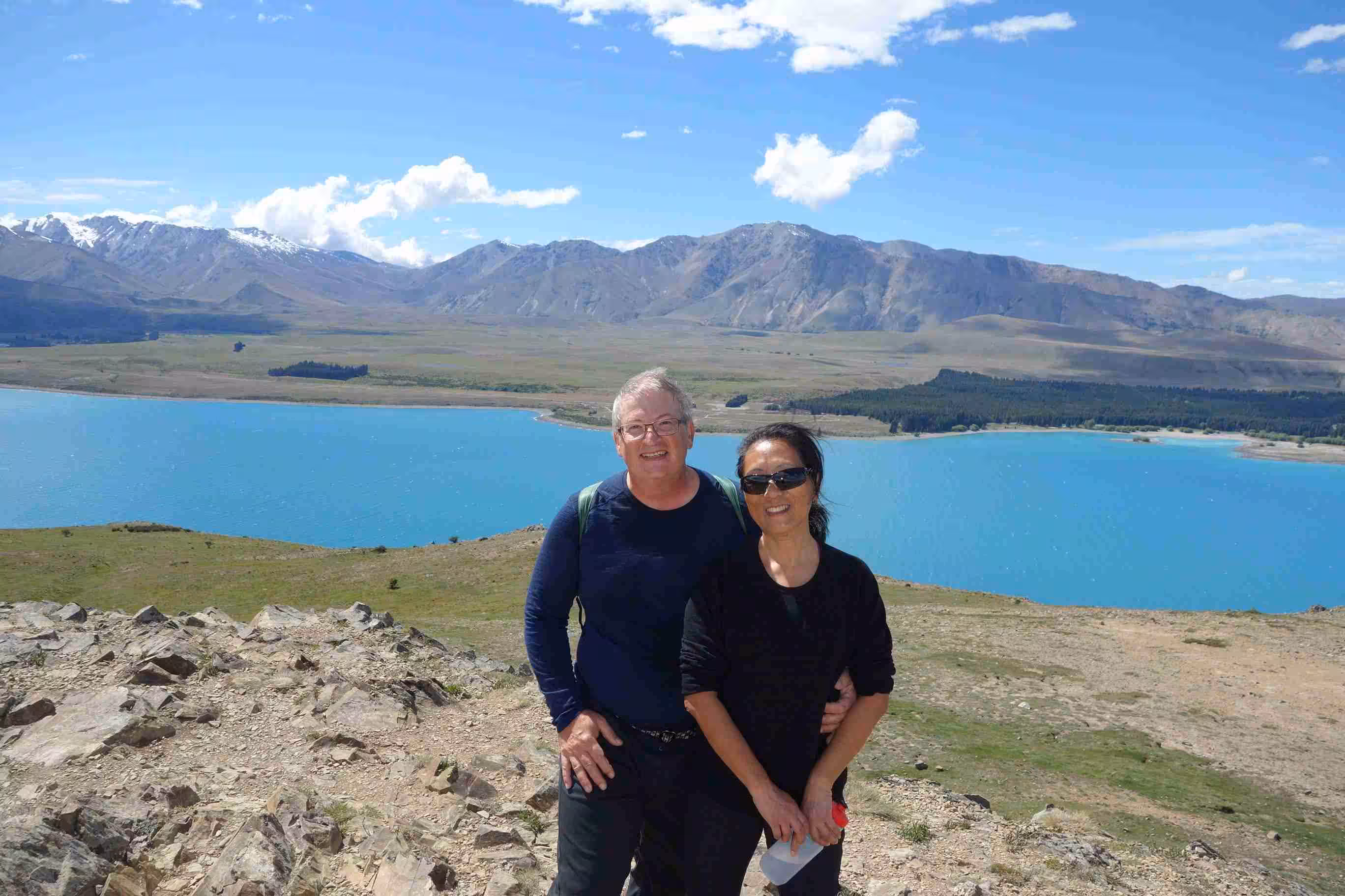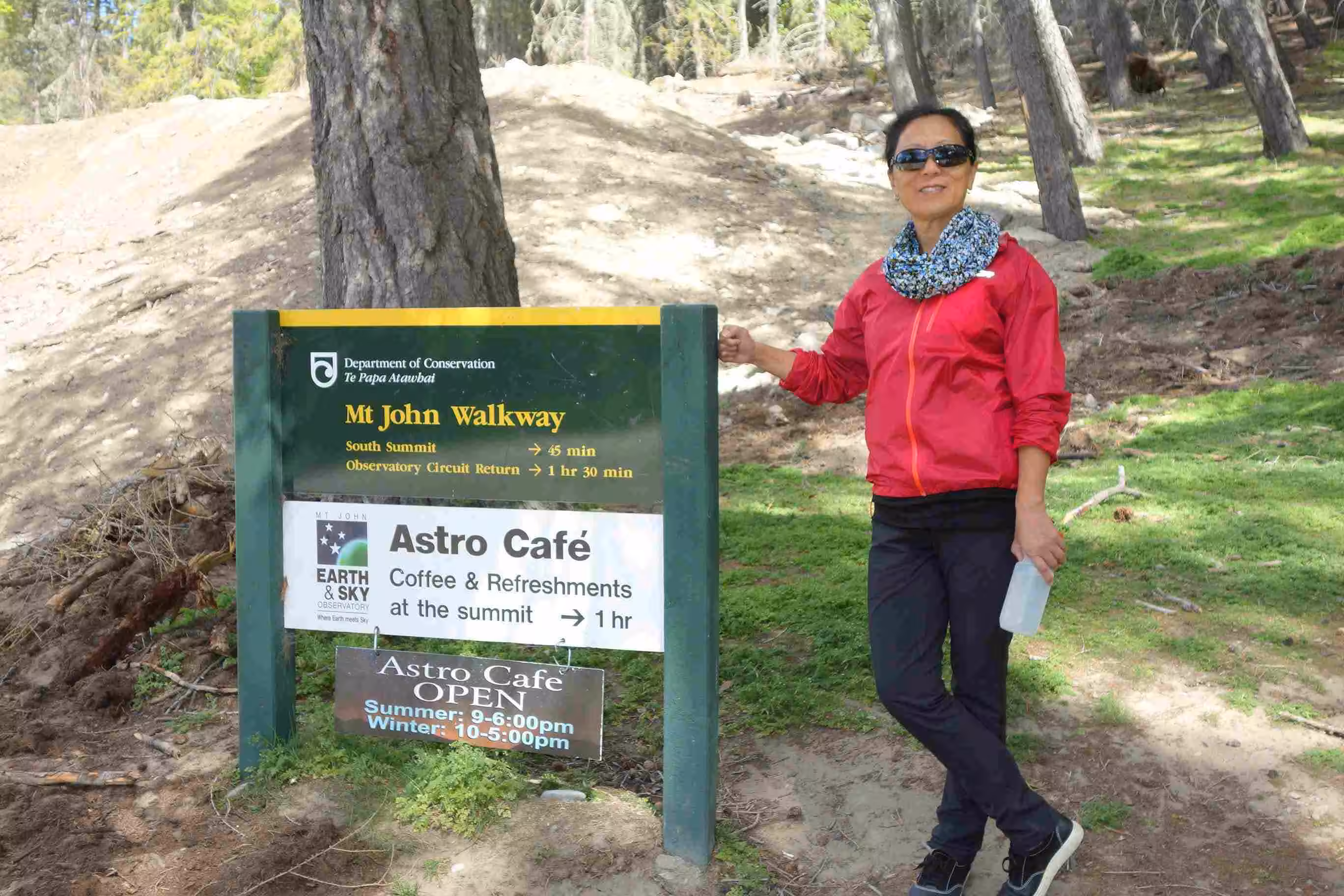 2017.11.04 – [NZ] Lake Tekapo ==> Lake Tekapo (0 kms | Total: 336 kms) – Next morning, we bought lattes from a mobile coffee van and had scrambled eggs for breakfast. We hiked up a top of Mount John where an Observatory station, operated by the University of Canterbury, was located. The 2-hour walk is described as moderate with reasonably steep ascent in places. Due to some renovations of the main facility building at the holiday park, the management converted the washroom/showers facilities to unisex operations. It seemed that everyone, even for those different with religious backgrounds, managed well under these conditions. In the afternoon, we relaxed at the park’s small lounge facility. During this time, as we heard the howling winds outside, we kept on hoping that our tent was still ok. Later, when we showed up at our tent site, we noticed the tent had shifted about 5 feet. Our neighbor, another cyclist, greeted us to let us know that he desperately attempted secure our tent during the winds as it was about to be blown away. We re-located our tent to slightly better sheltered area. As we walked to town for supper under a mostly sunny sky, we were surprised when the weather quickly changed to rain. We enjoyed our pizza meal while hoping the rain would stop before we had to walk back to our tent. Thankfully, the sky cleared up again. We spent the rest of the evening in the lounge facility planning our next route segment. As part of our daily routine, we keep a close eye on the weather forecast while considering our next day route.