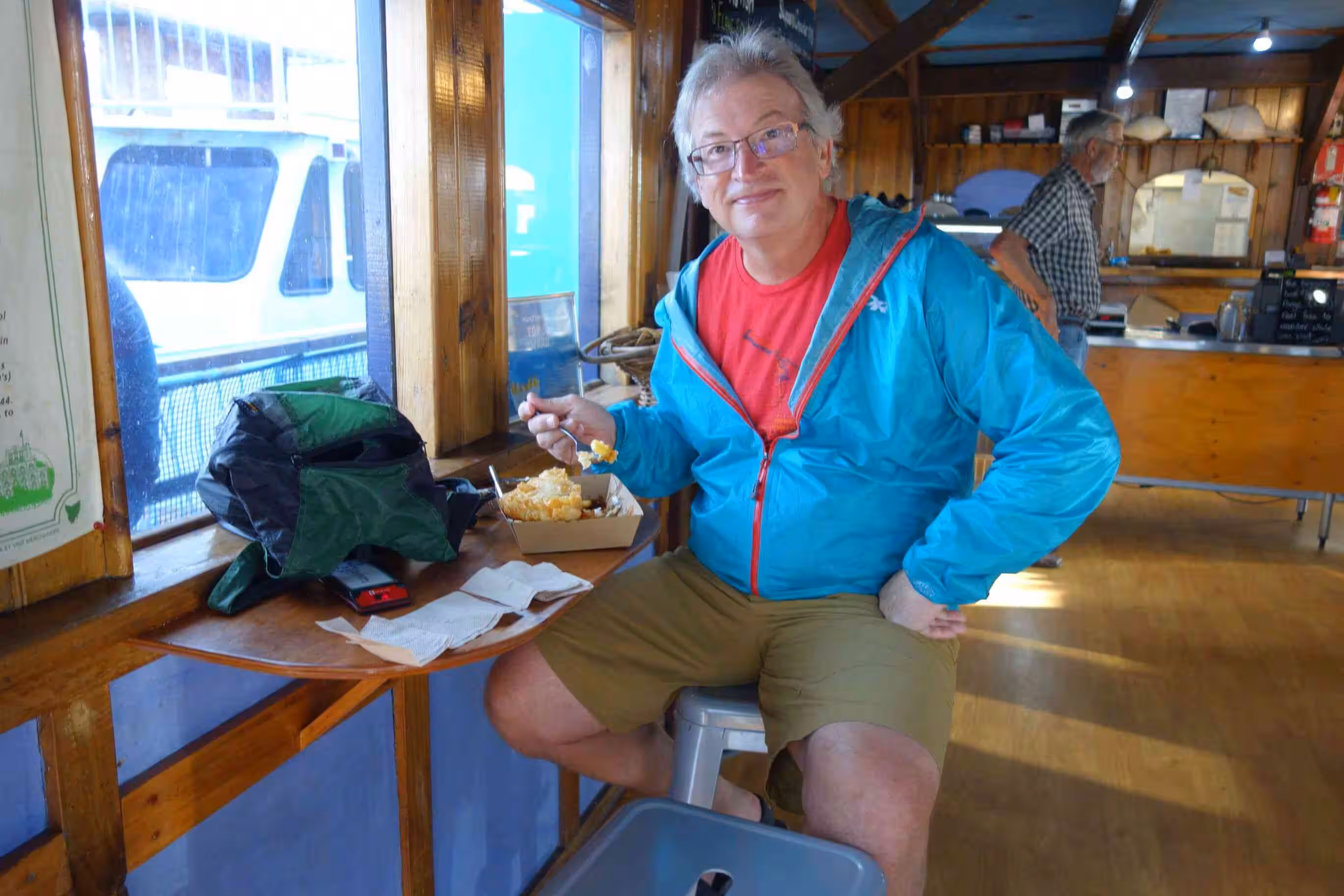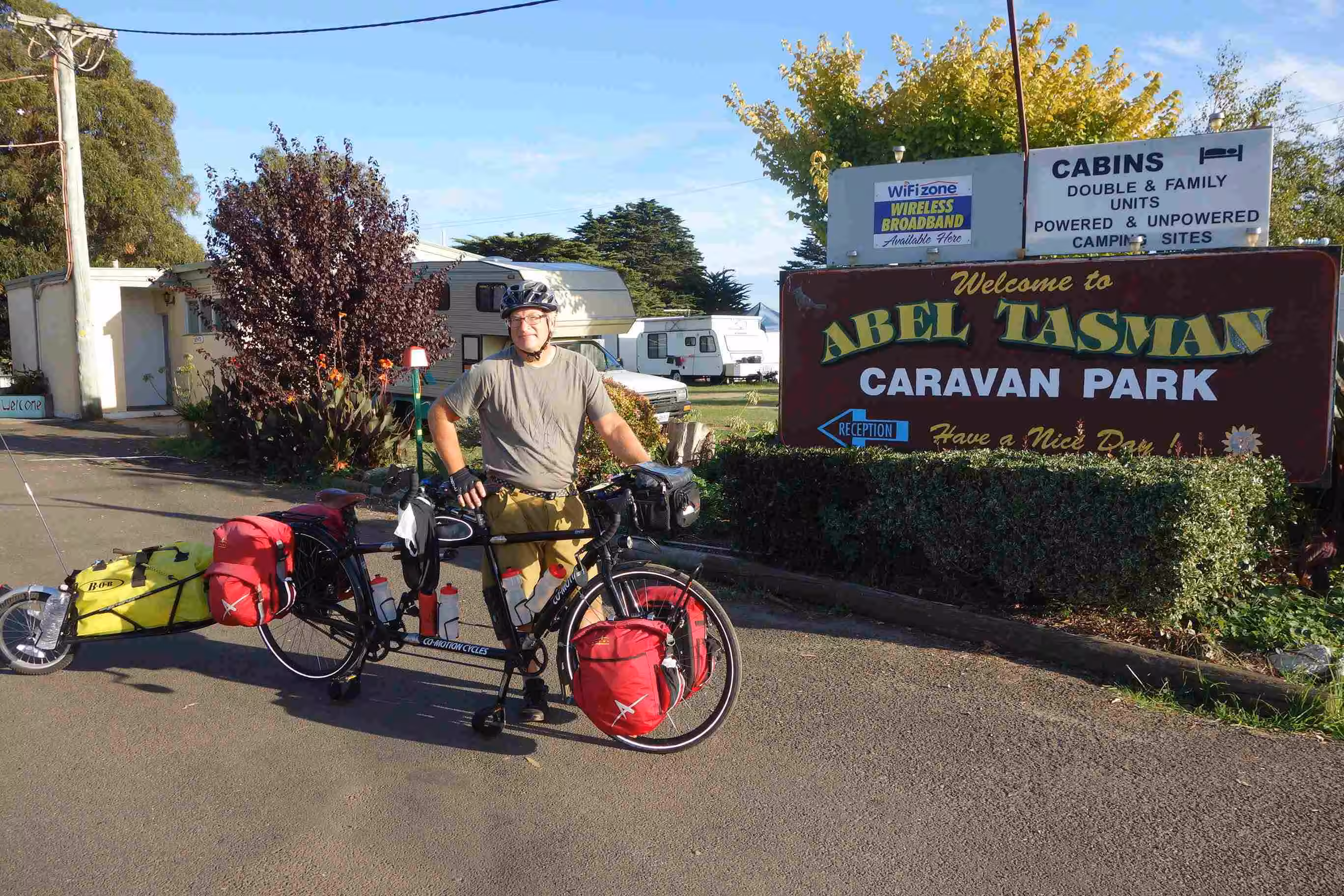 2018.03.15 – [AU] Derby ==> St Helens (69 kms | Total: 4682 kms) – St Helens (AU) – We prepared our own breakfast from a supply basket provided by the B&B owner the previous evening. We left Derby knowing that we had a challenging day ahead of us. We started with a steep climb out of town. Some 15 kms further, it started to rain as we embarked on a long climb over Weld Hill. Our climbing resumed shortly after Weldborough bringing us close to 600m. As the rain had stopped, our clothes dried up during the long descent into the small locality of Pyengana where we stopped for lunch at a roadhouse. Our final last 25 kms were much easier. We were happy to finally see the Tasmania’s east coast as we cycled into the town of St-Helens. We checked into a Big4 holiday park as we had not managed to secure any other affordable accommodation in town. After a good shower and a bit of rest, we walked to the town center for some fresh seafood at a eatery located on the pier. Jenny ate her first few oysters, au natural, which she really enjoyed. Back at the holiday park, we spent a couple of hours at the kitchen/lounge facility planning our later Tasmanian cycling segment. As we entered the comfort of our tent, it started to rain lightly.