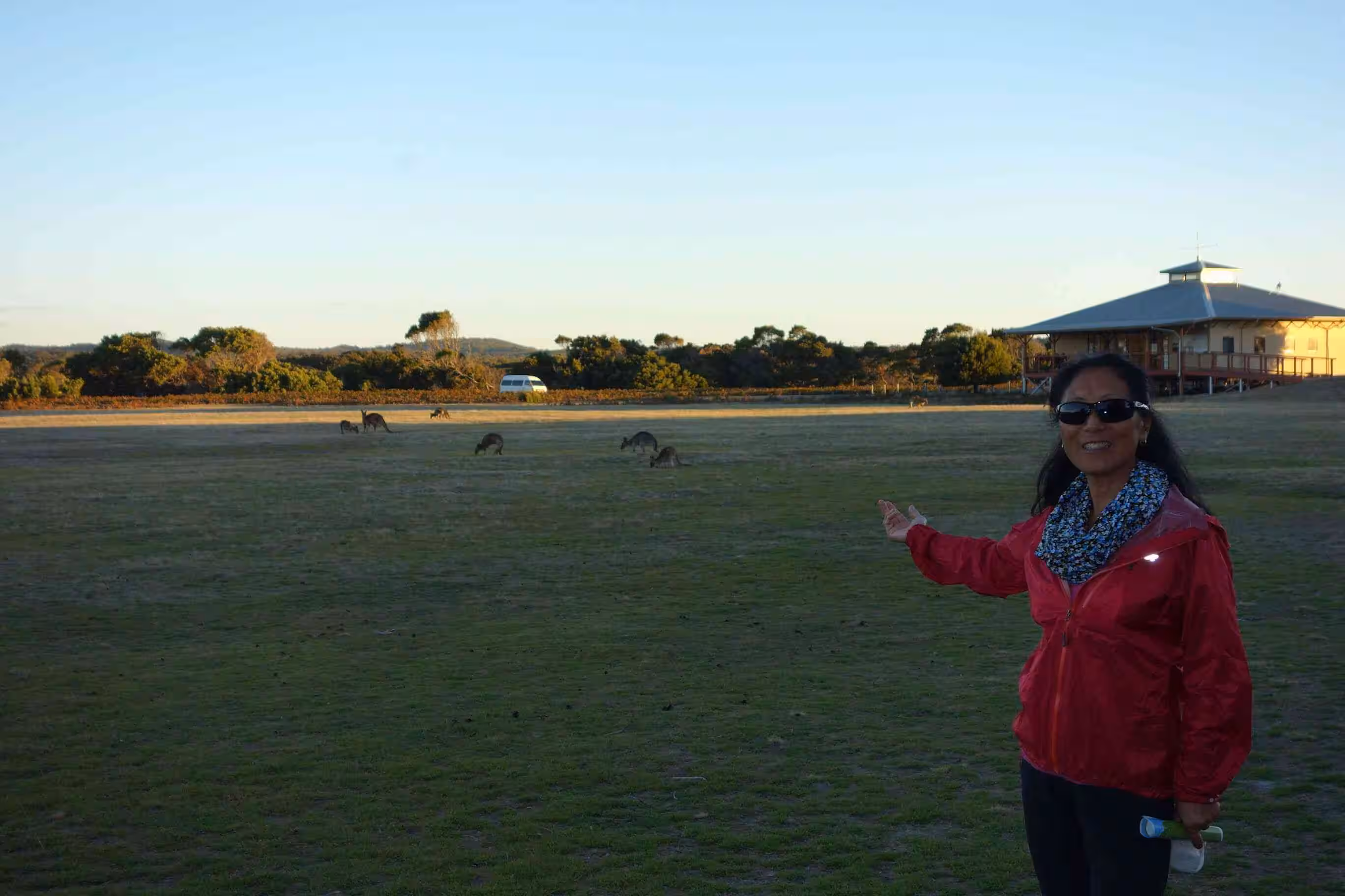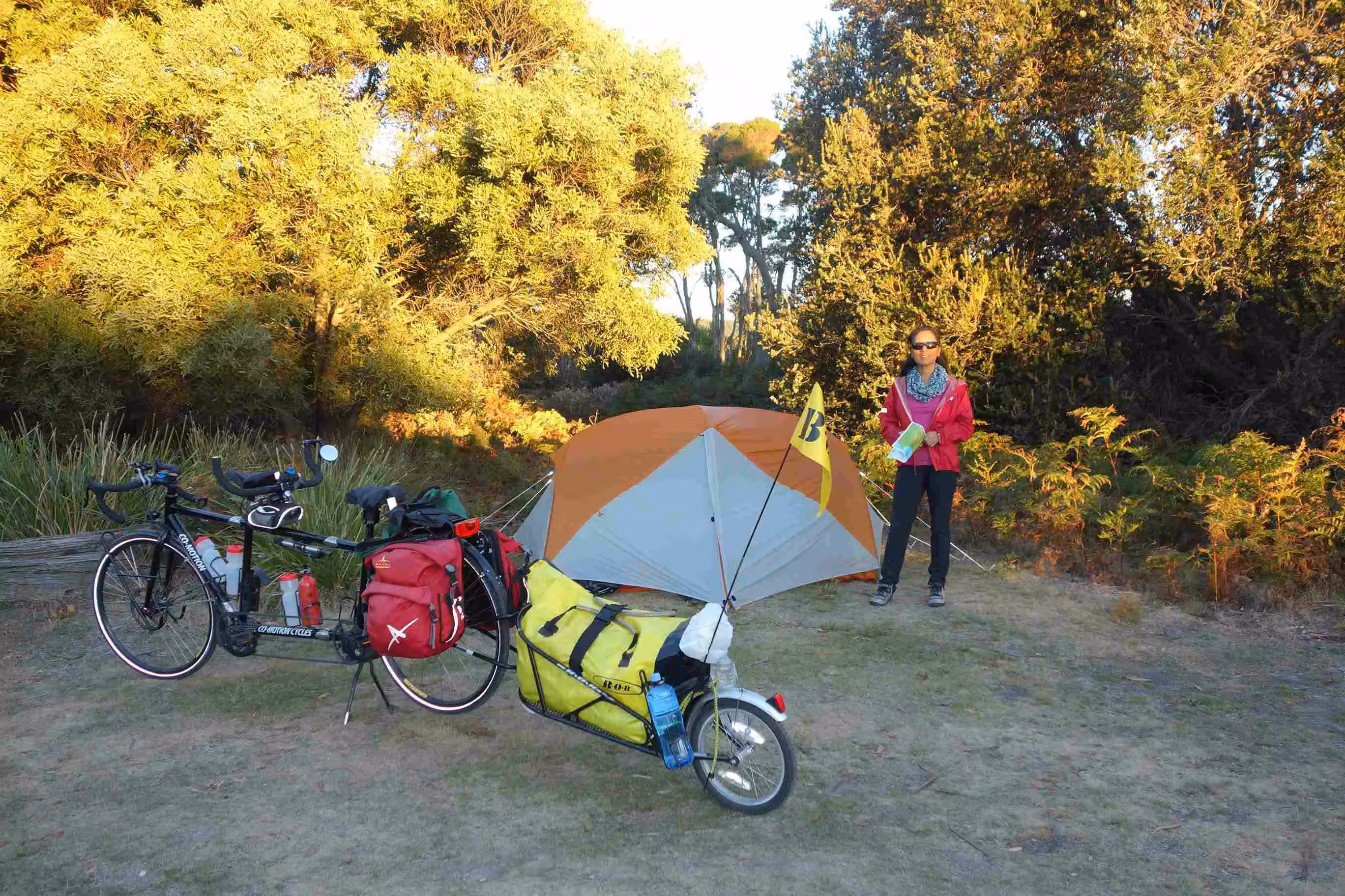 2018.03.11 – [AU] Devonport ==> Narawntapu National Park (40 kms | Total: 4431 kms) – After breaking camp, we cycled to a nearby grocery store. We bought some food supplies as we expected to be in a remote national park campground by the end of the day. We stopped at a café near the ferry dock for a quick breakfast. We tackled a climb out of town after which the road gradually leveled for the rest of the day. As we gazed at the scenery from our tandem we felt transported back to NZ’s north island. Although the sun was out in full force the temperature was quite comfortable. We arrived at the Narawntapu National Park in the early afternoon. We checked into a powered site but unfortunately the campground had no wifi access. We pitched the tent and protected it from the sun with a light tarp. This was the first time we actually camped two nights in a row. As we discovered on our way to the park that one of the road we had planned to cycle on tomorrow was actually a dirt road, we spent a few hours at the park’s visitor center reviewing our routes and accommodations for the next few days. Thankfully Jenny’s iPhone managed to provide us with internet access through her data plan – while my phone failed to offer any services – once again. Our evening meal was quite modest. While we ate sandwiches and pasta under a picnic shelter, a group of locals were having a large BBQ cook out, wine and cheese beside us. Water at the campground came from two sources, one from the ground and the other from a rain reservoir. The ground water was the color of tea and was used for the toilets. The rain water was clearer but it was still not considered safe for drinking. We used our ultra-violet water purifier for the first time. In the evening we enjoyed a walking trail leading up to a bird viewing hut. We saw several pademelons along the way. Later, we also observed a number of kangaroos in the clearing near the park’s visitors center. We met an older cycling couple, originally from NZ, but now living on a yacht in New Caledonia. They were wrapping up a five week trip in Tasmania. They appeared to have extensive cycle touring experience in various places around the world. They also appeared to enjoy roughing it as they found the $2 shower was too expensive!