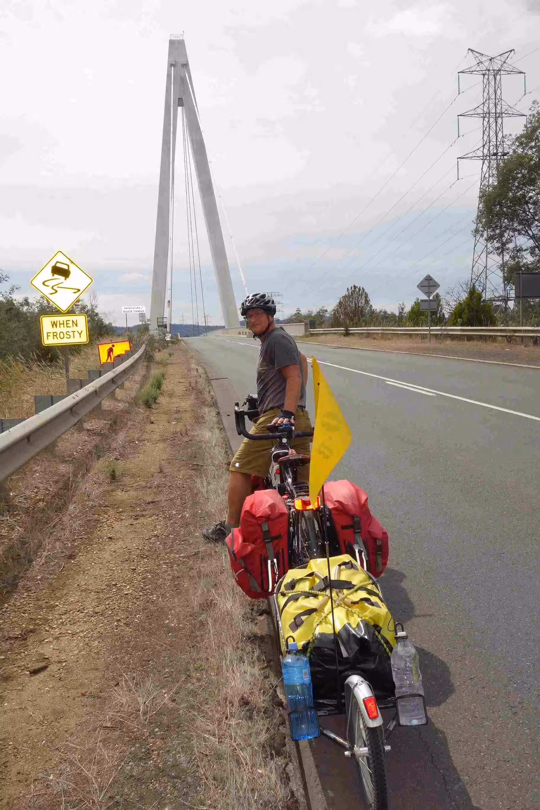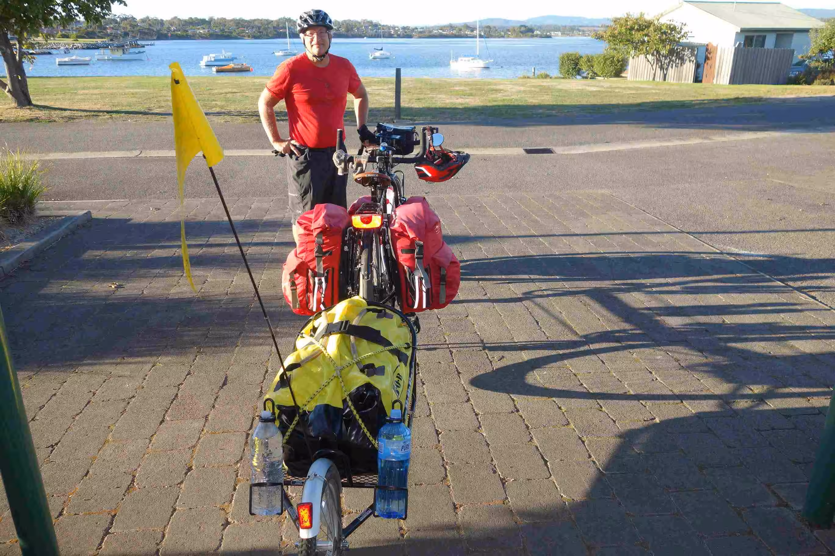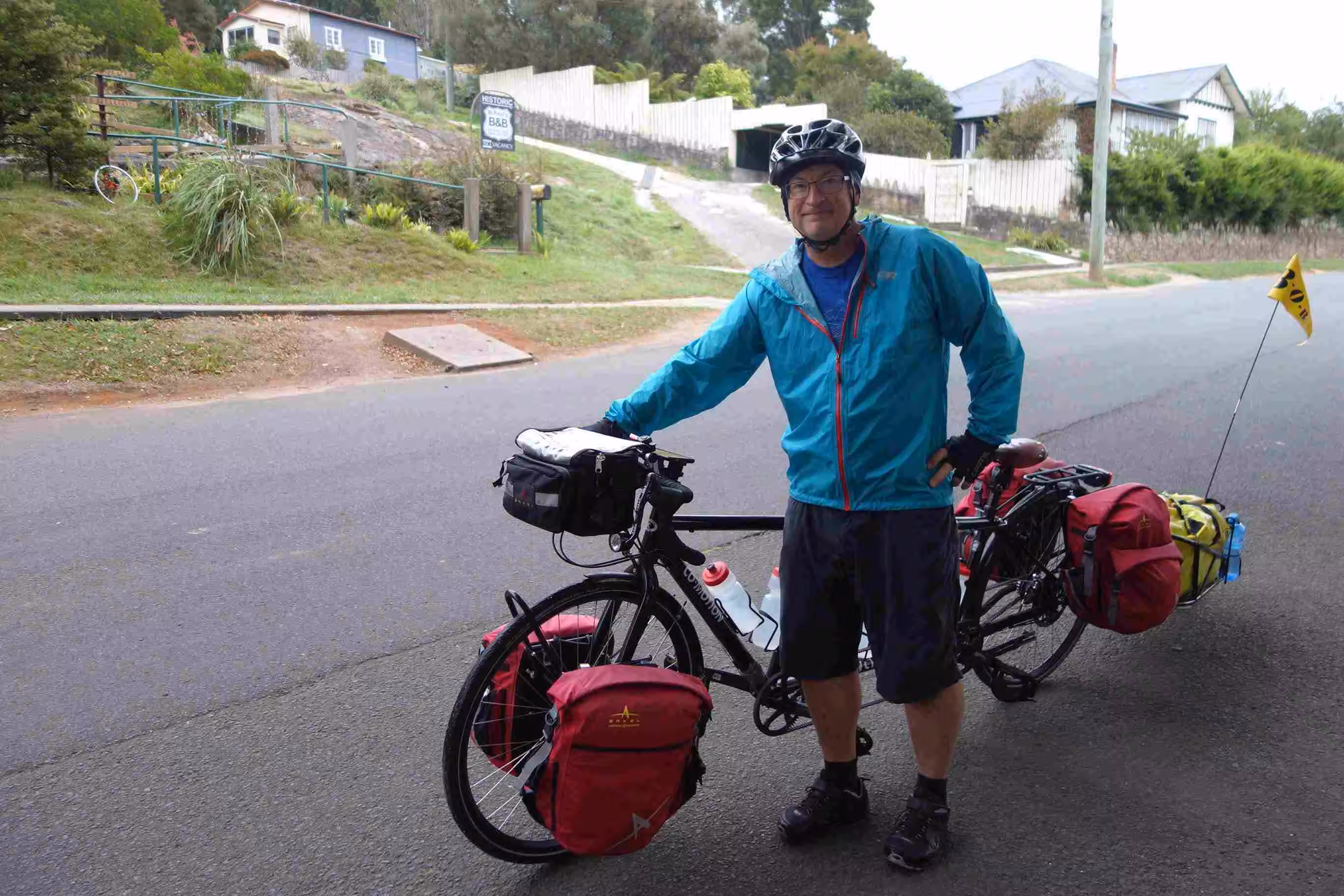 2018.03.12 – [AU] Narawntapu National Park ==> George Town (67 kms | Total: 4499 kms) – After breaking camp, we had some oranges and yogurt as an initial breakfast. As yesterday we had reviewed our route alternatives to George Town, we opted for the most direct route via an 18 kms dirt road. The other paved road alternatives would have added 20-30 extra kms. All routes involved a bump in the road of 300m or so. Once we started cycling on the dirt road, we were pleased as it was much better than either of us had expected. We met only five vehicles along the way. Once at the top of our major climb, we resigned ourselves, for safety reason, to walk down the downhill as it proved to be too rough for us to cycle down. Once we reached the sealed/paved road, we continued to cycle to the town of Beaconsfield where we stopped at a nice café for a late breakfast. We were delighted to see that the grocery stores and the cafés were opened on this Monday as it was Australia’s Labor Day weekend. After a good rest at the café, we continued our route leading us to the Batman bridge across the Tamar river. Most of our day’s journey involved getting across the river – if only we were birds! After 65+ kms, we arrived in George Town. We checked into a nice (and well deserved) motel in front of the pier. We had our evening meal at the motel’s restaurant as many of the restaurants were closed on Monday.