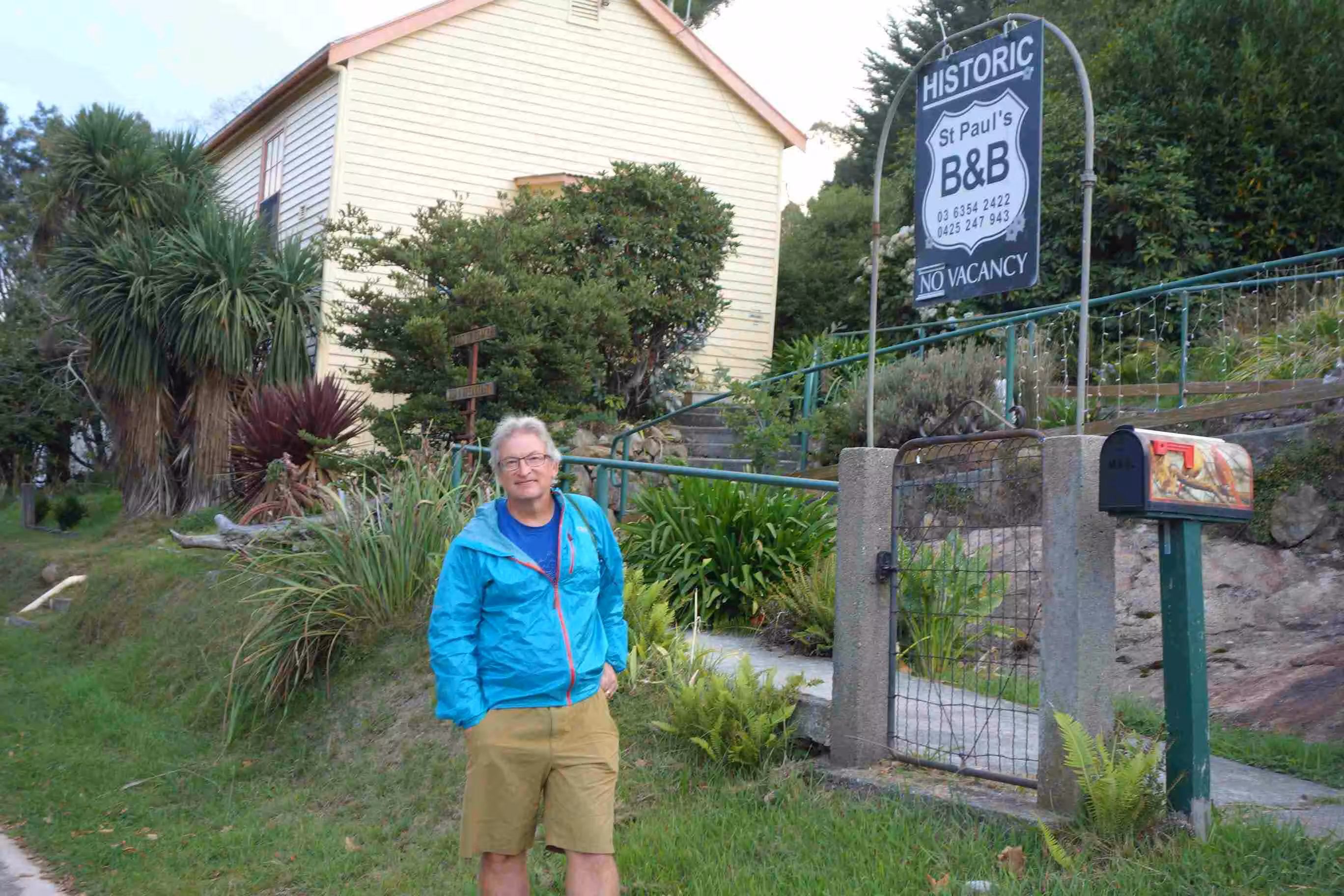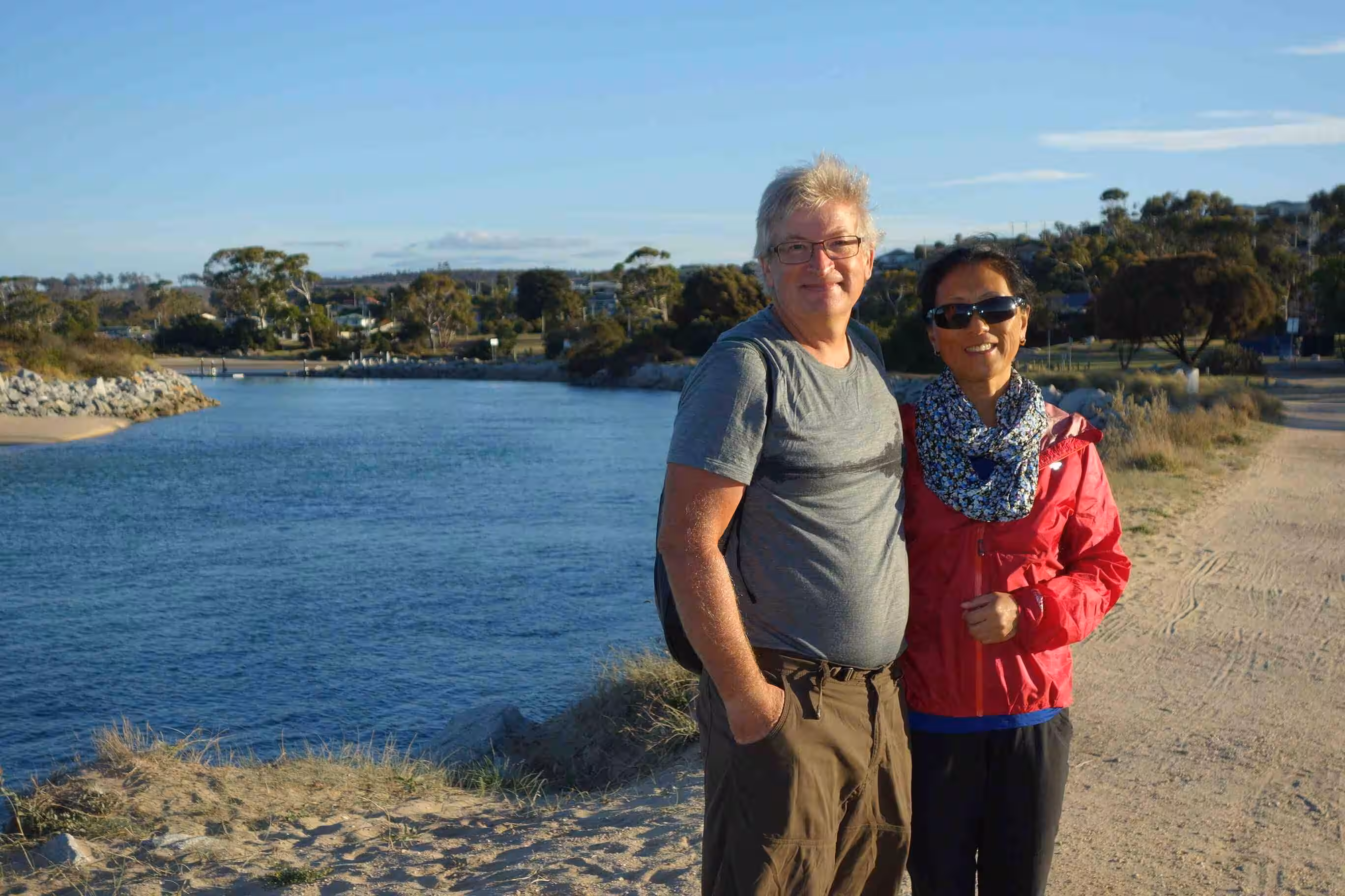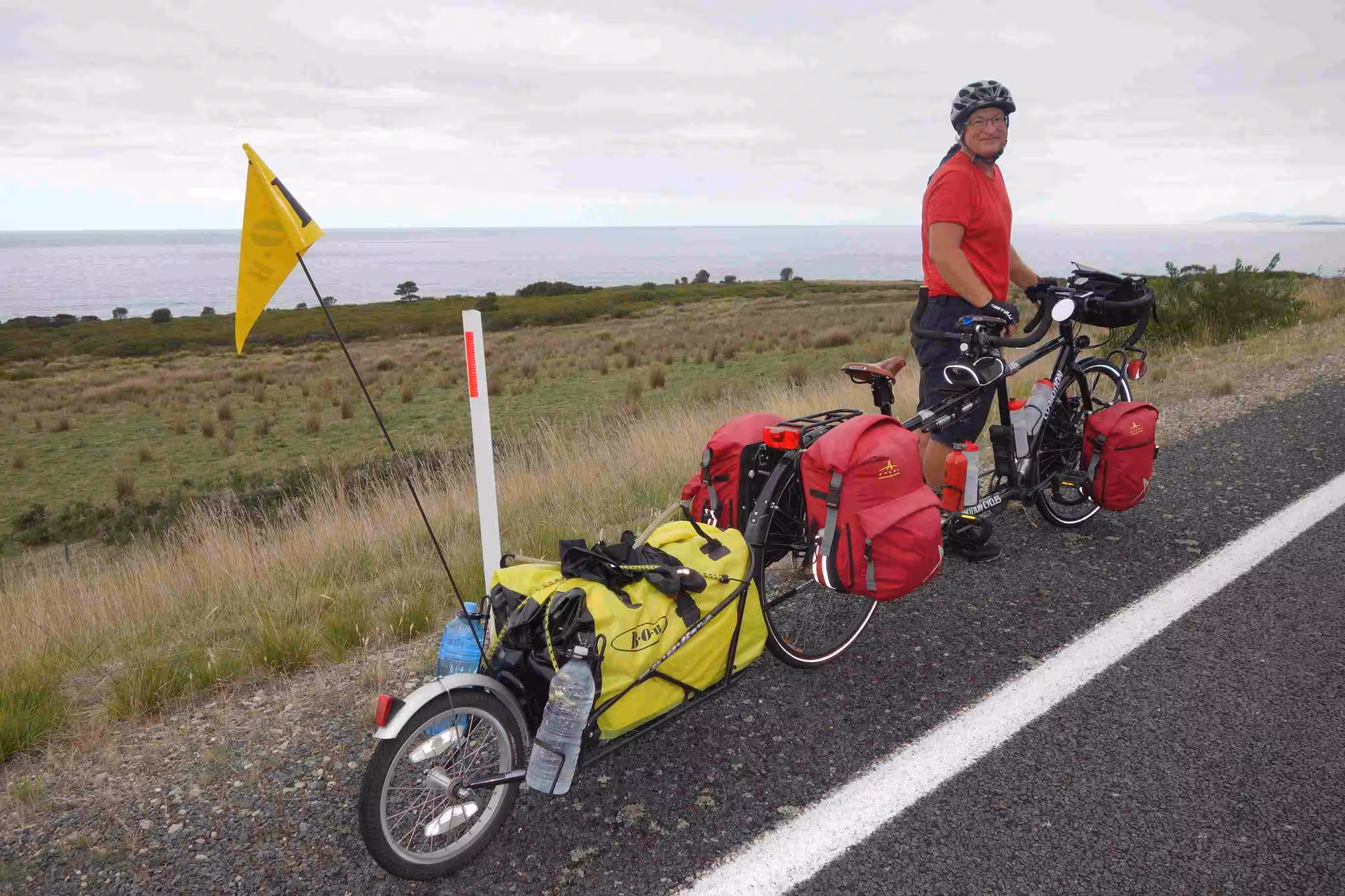 2018.03.12 – [AU] Narawntapu National Park ==> George Town (67 kms | Total: 4499 kms) – After breaking camp, we had some oranges and yogurt as an initial breakfast. As yesterday we had reviewed our route alternatives to George Town, we opted for the most direct route via an 18 kms dirt road. The other paved road alternatives would have added 20-30 extra kms. All routes involved a bump in the road of 300m or so. Once we started cycling on the dirt road, we were pleased as it was much better than either of us had expected. We met only five vehicles along the way. Once at the top of our major climb, we resigned ourselves, for safety reason, to walk down the downhill as it proved to be too rough for us to cycle down. Once we reached the sealed/paved road, we continued to cycle to the town of Beaconsfield where we stopped at a nice café for a late breakfast. We were delighted to see that the grocery stores and the cafés were opened on this Monday as it was Australia’s Labor Day weekend. After a good rest at the café, we continued our route leading us to the Batman bridge across the Tamar river. Most of our day’s journey involved getting across the river – if only we were birds! After 65+ kms, we arrived in George Town. We checked into a nice (and well deserved) motel in front of the pier. We had our evening meal at the motel’s restaurant as many of the restaurants were closed on Monday.