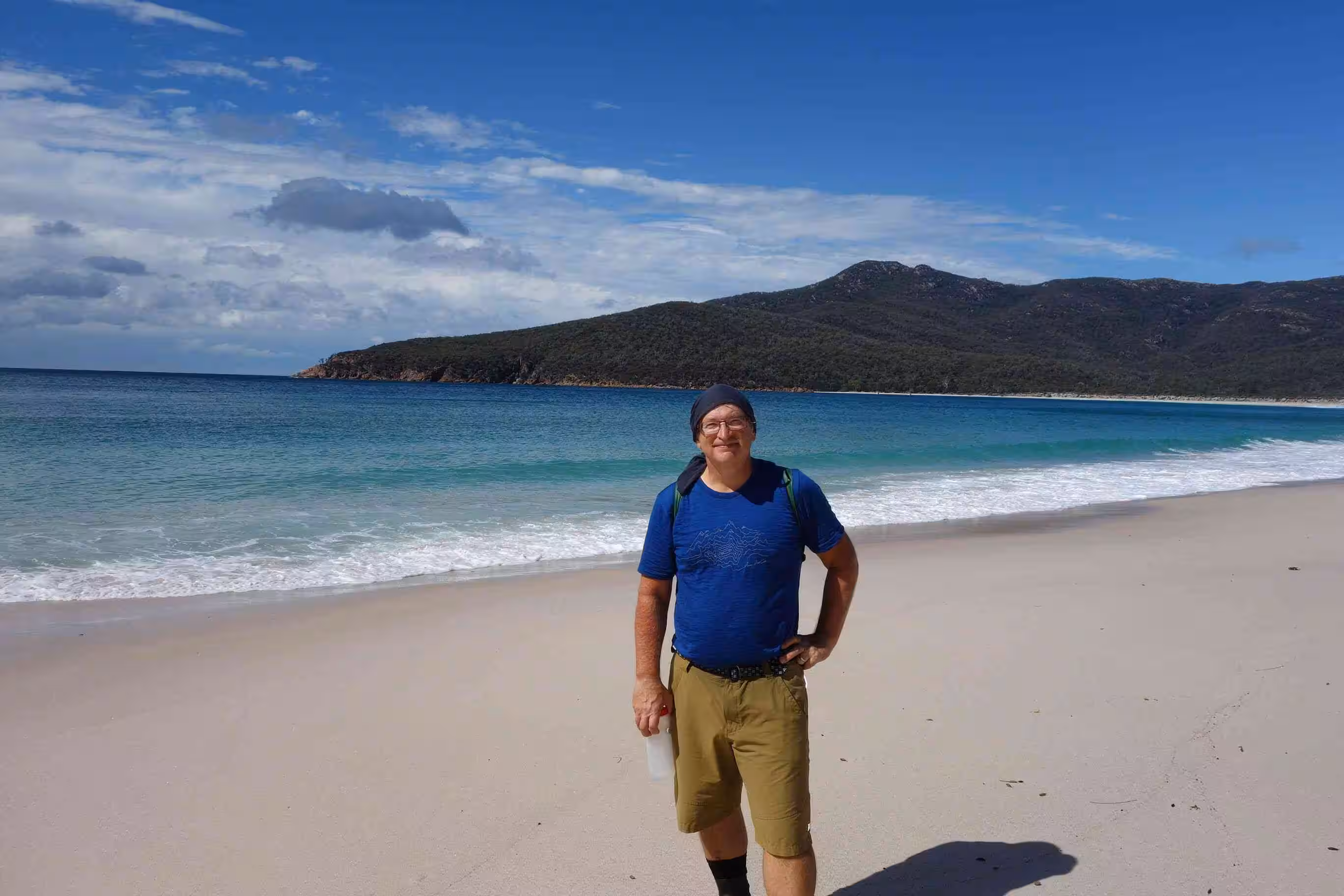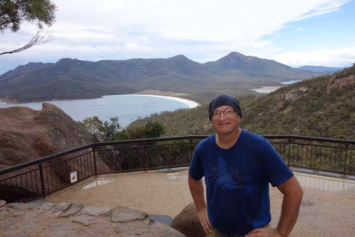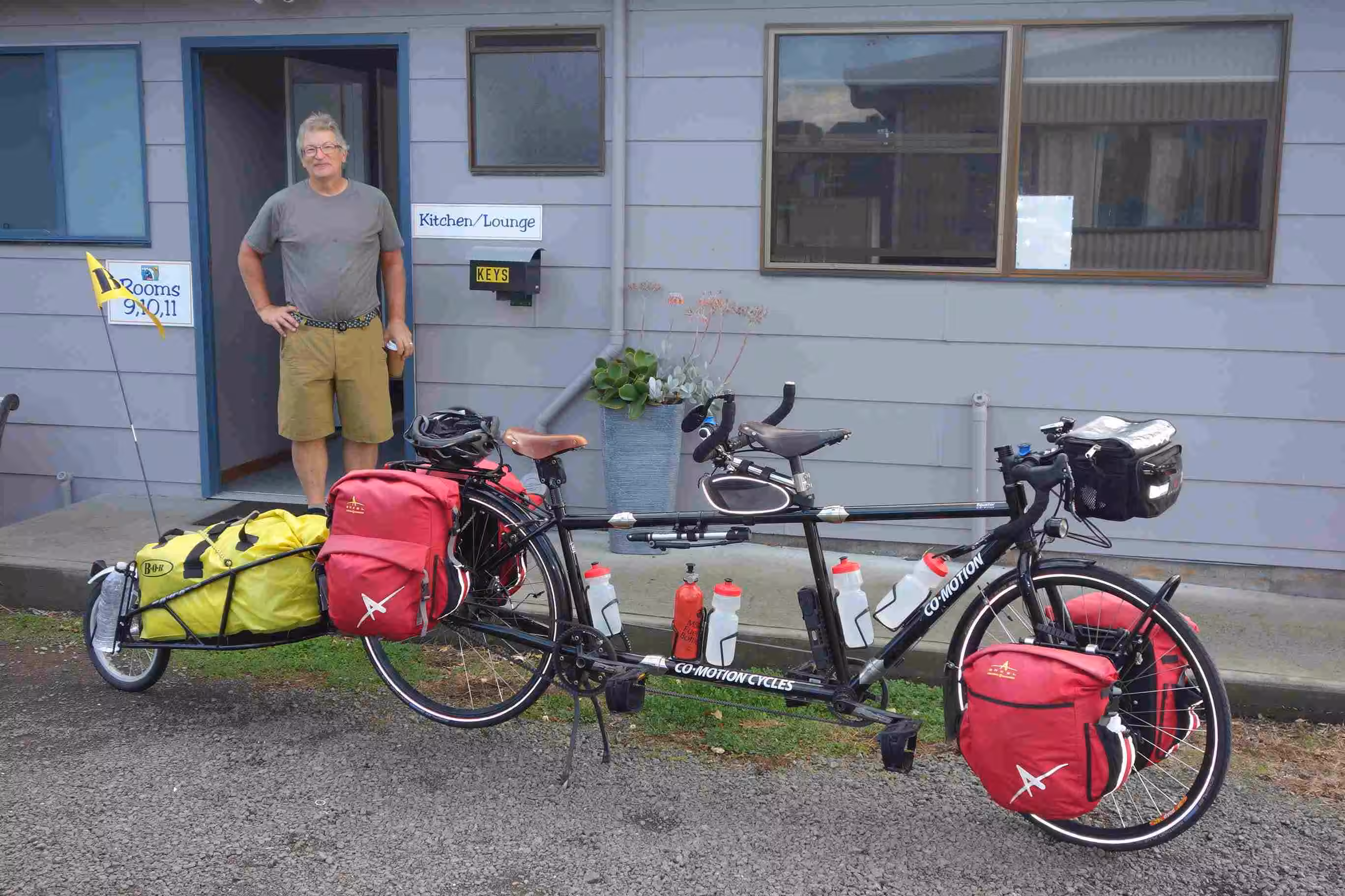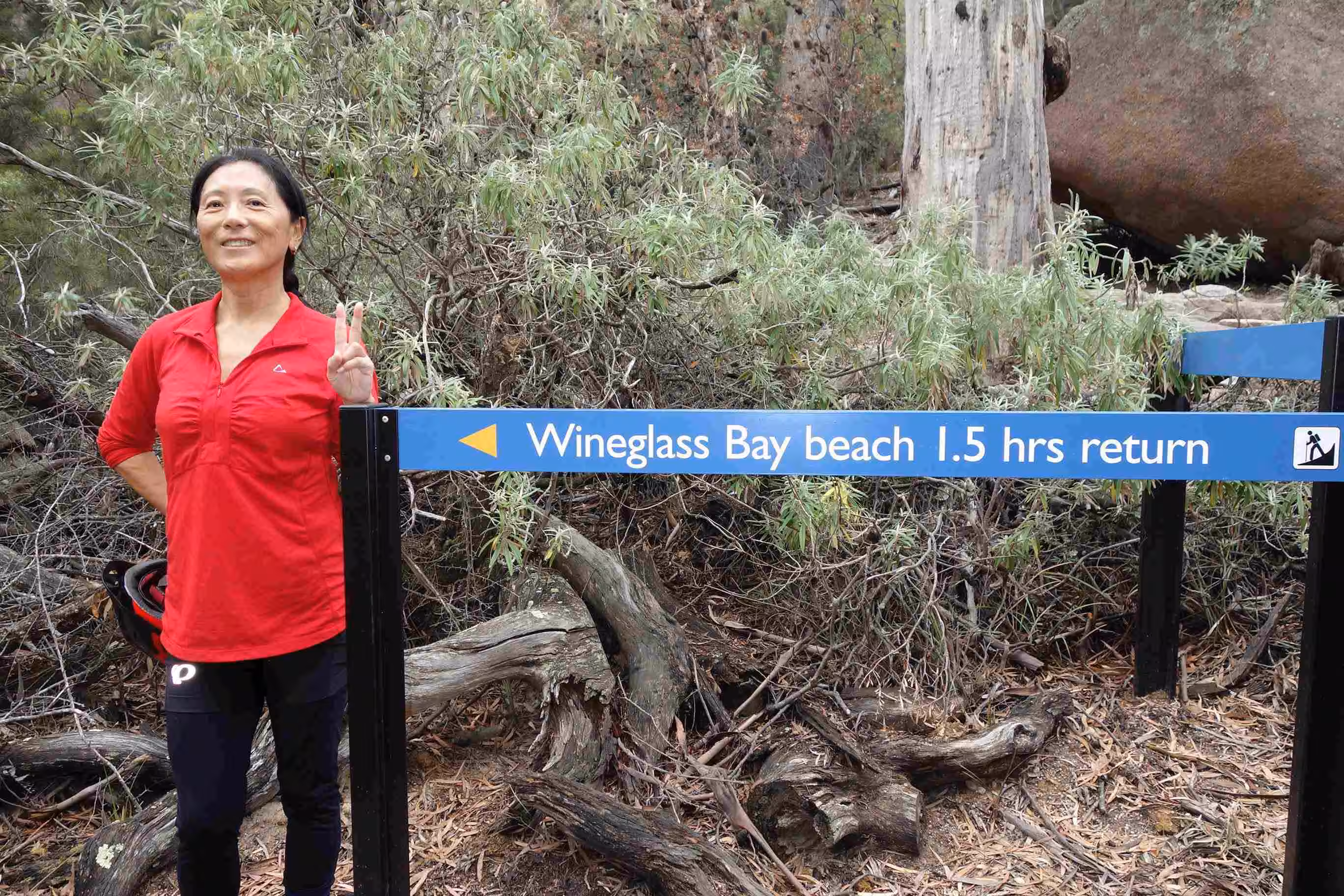 2018.03.18 – [AU] Coles Bay ==> Coles Bay (12 kms | Total: 4811 kms) – As forecast, we awoke to some rain. During our day of rest in Coles Bay, we had hoped to go for a hike at the nearby Freycinet National Park. After reviewing the hourly weather forecast, we decided to risk a visit to the Park. We left our backpacker accommodation with our rain gear and the tandem and we stopped at the bakery for our breakfast. We cycled 2 kms to the Park’s visitor center where we bought our daily park access passes. We cycled a 4 kms further to the car park where several trail heads began. We enjoyed the hike up to the Wineglass Bay lookout – especially as the rain stopped. From the lookout, we opted to take the 1.5 h return trail to the Wineglass beach for some photo opportunities and some bragging rights. By dropping by the beach we could enjoy saying that we had visited one of the top 10 beaches in the world according to the US magazine Outside. After our three hour hike, we cycled back to Coles Bay’s town center for a light lunch. We returned to the same restaurant for our evening meal.