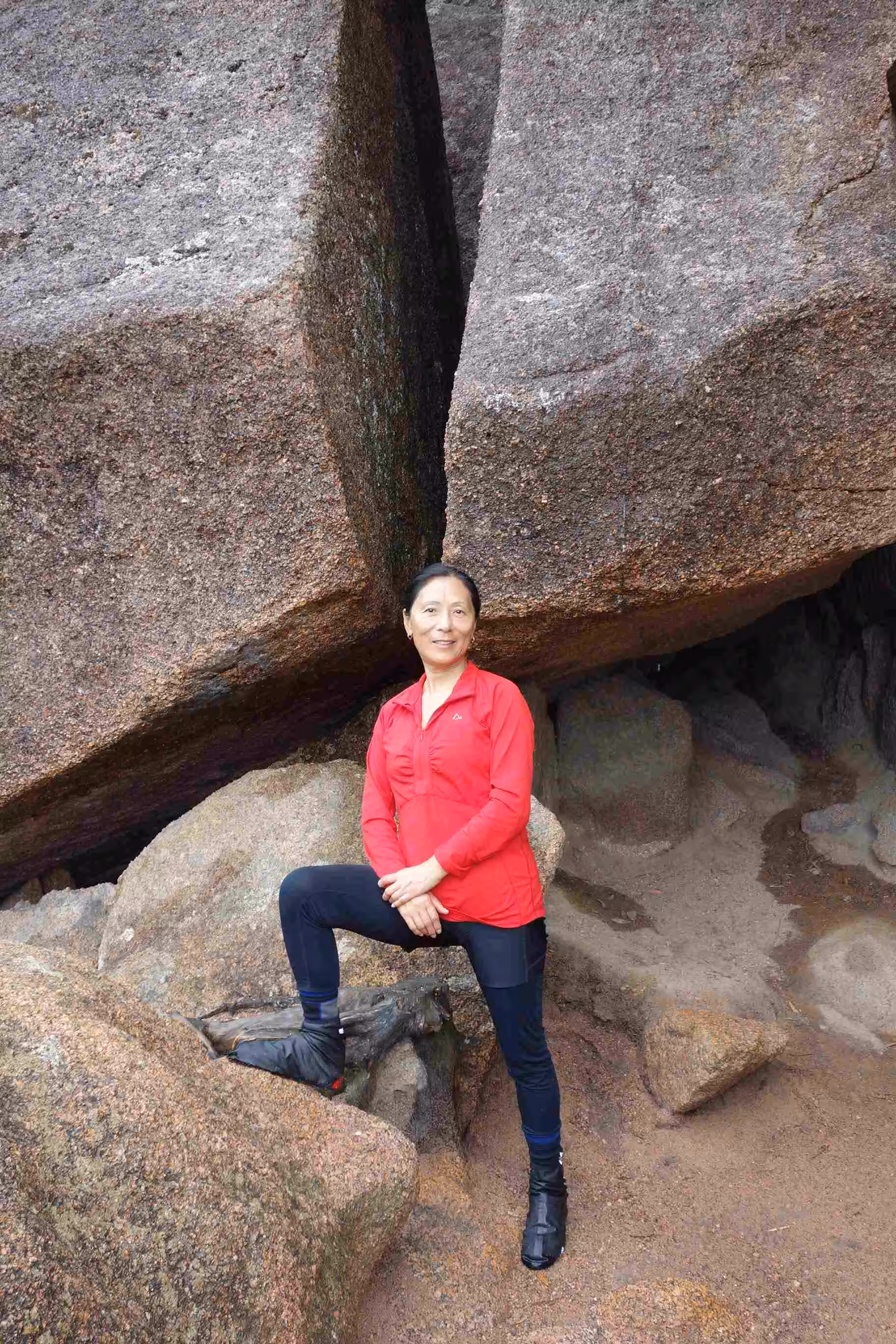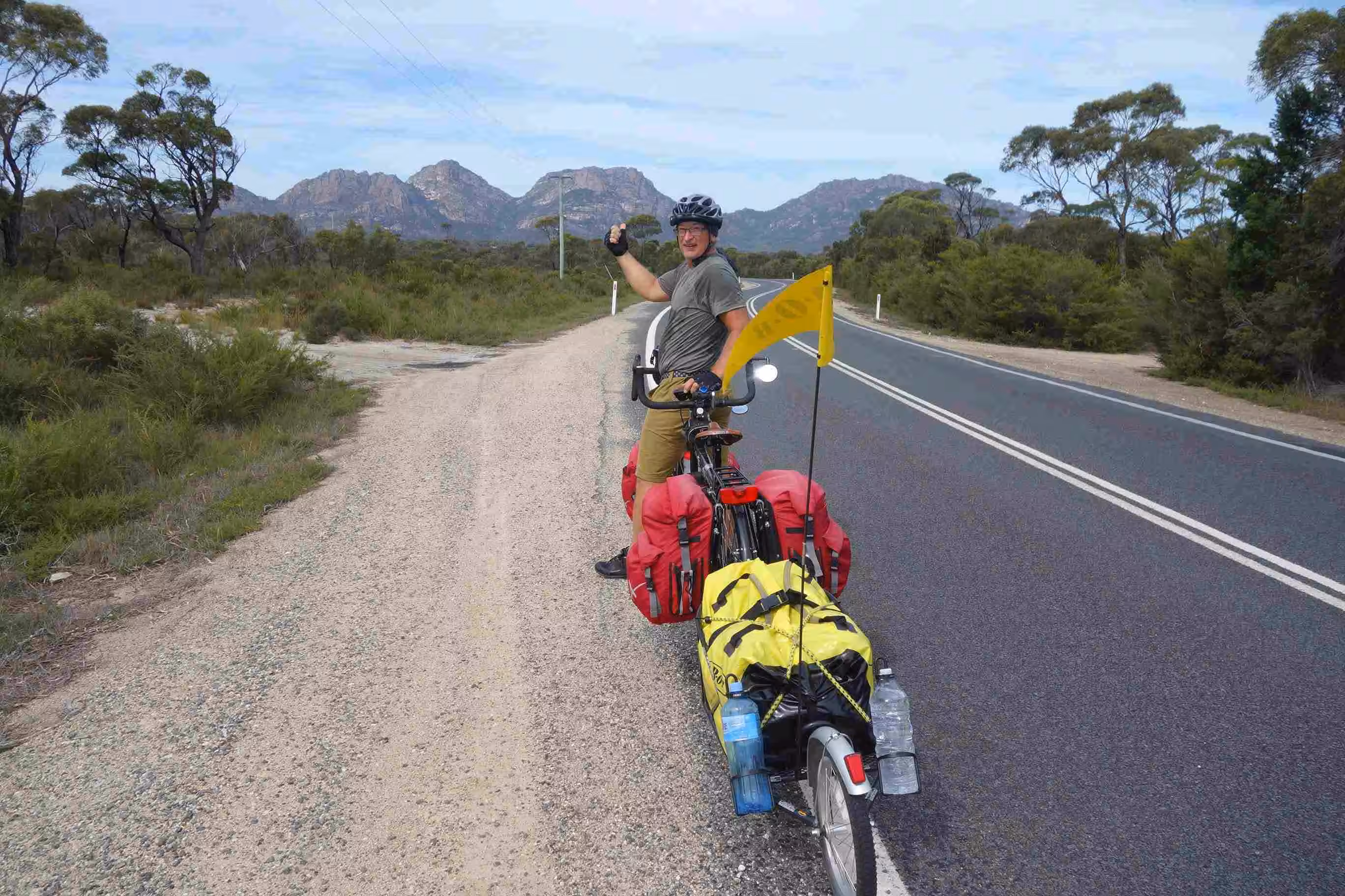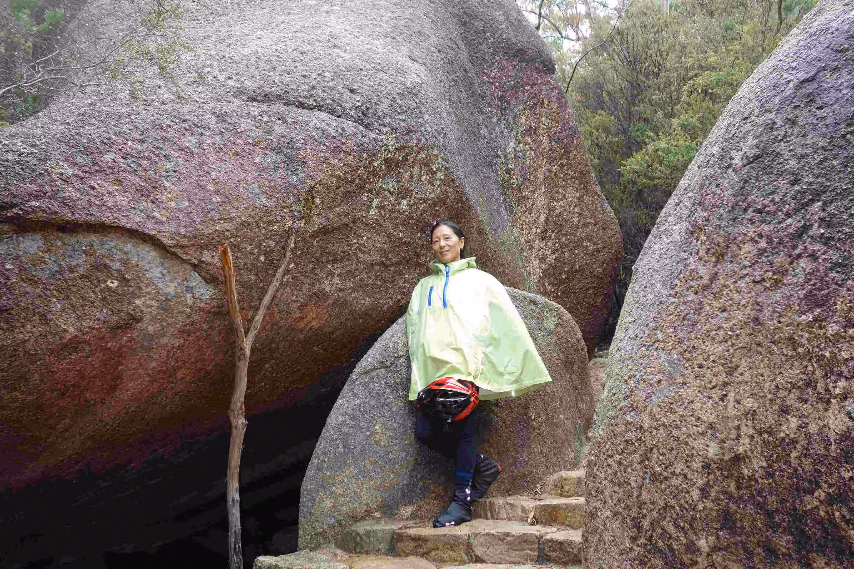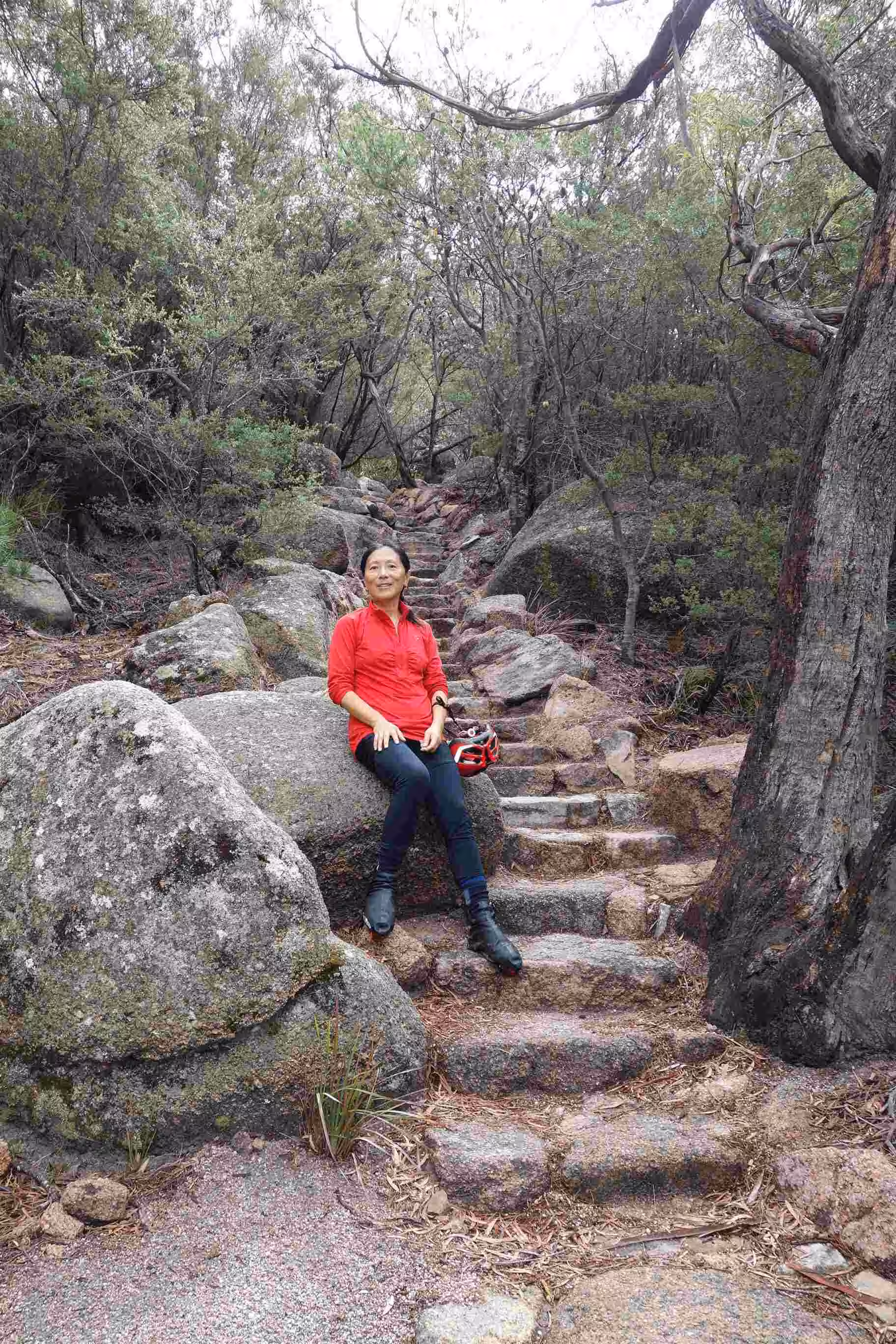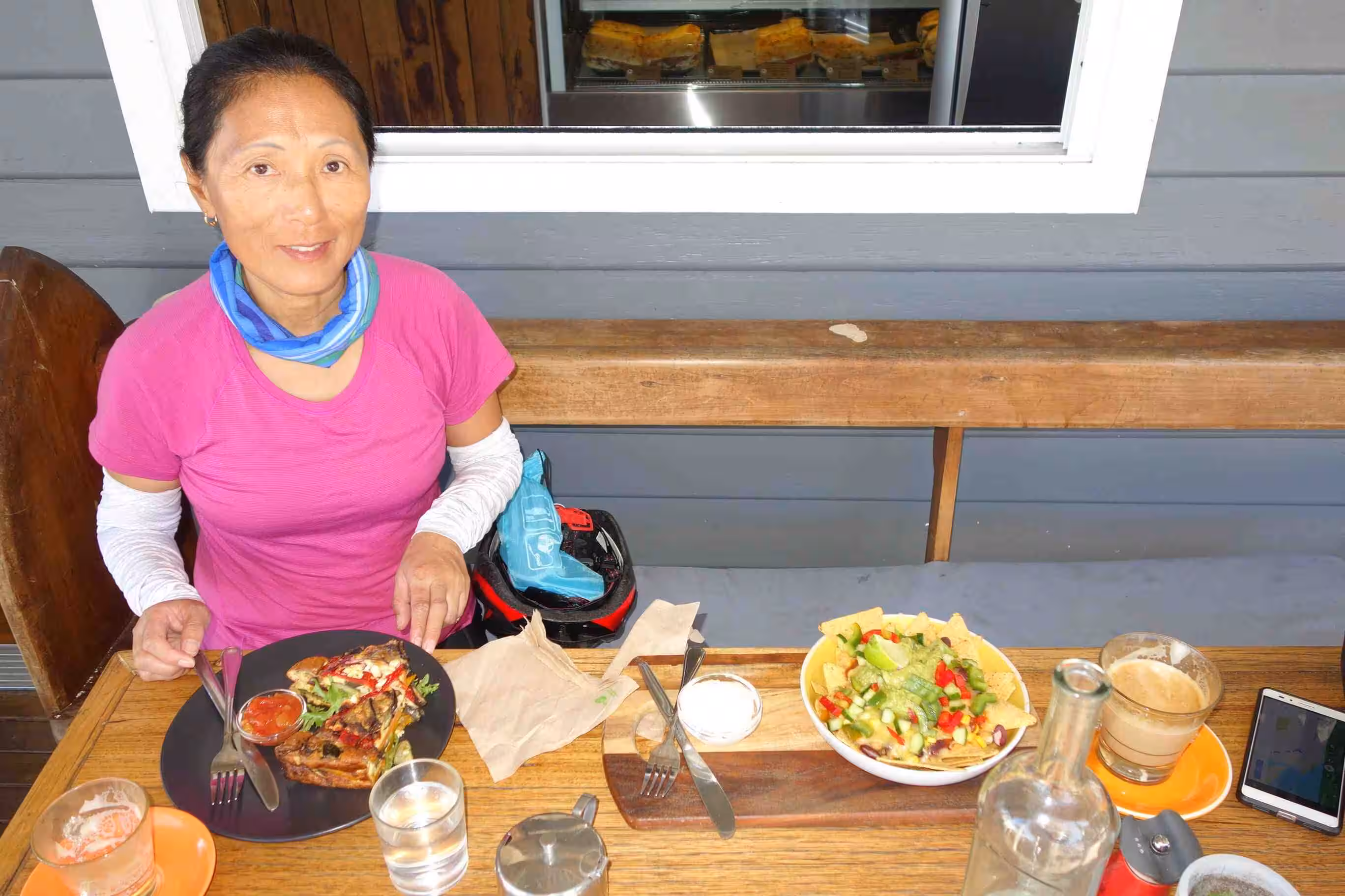 2018.03.18 – [AU] Coles Bay ==> Coles Bay (12 kms | Total: 4811 kms) – As forecast, we awoke to some rain. During our day of rest in Coles Bay, we had hoped to go for a hike at the nearby Freycinet National Park. After reviewing the hourly weather forecast, we decided to risk a visit to the Park. We left our backpacker accommodation with our rain gear and the tandem and we stopped at the bakery for our breakfast. We cycled 2 kms to the Park’s visitor center where we bought our daily park access passes. We cycled a 4 kms further to the car park where several trail heads began. We enjoyed the hike up to the Wineglass Bay lookout – especially as the rain stopped. From the lookout, we opted to take the 1.5 h return trail to the Wineglass beach for some photo opportunities and some bragging rights. By dropping by the beach we could enjoy saying that we had visited one of the top 10 beaches in the world according to the US magazine Outside. After our three hour hike, we cycled back to Coles Bay’s town center for a light lunch. We returned to the same restaurant for our evening meal.