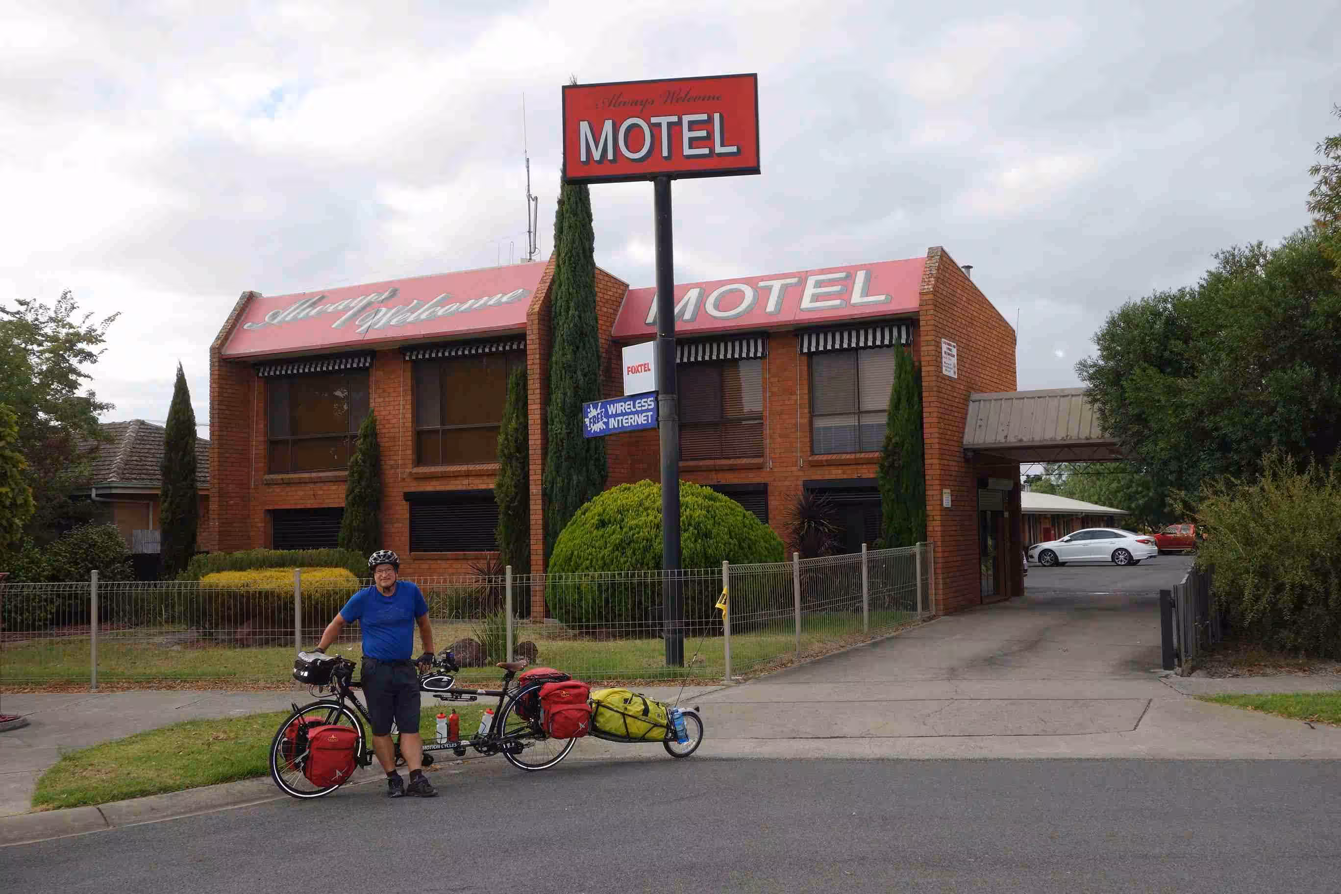 2018.03.03 – [AU] Sale ==> Morwell (65 kms | Total: 4232 kms) – After savoring our last courtesy continental breakfast at our motel, we left town under a heavy morning fog. As the road was fairly flat and offered a good shoulder, we managed to keep a good cycling pace. We stopped at a café in Rosedale, some 27kms away. We took another rest at a McDonald´s at the entrance of Traralgon, less than 15 kms before our final destination of the day. We checked into our motel after cycling 65kms. Although our motel had a somewhat of a cheesy name, “Always Welcome Motel”, we were quite pleased with our accommodation. We had an excellent Saturday night buffet at the nearby Morwell club.