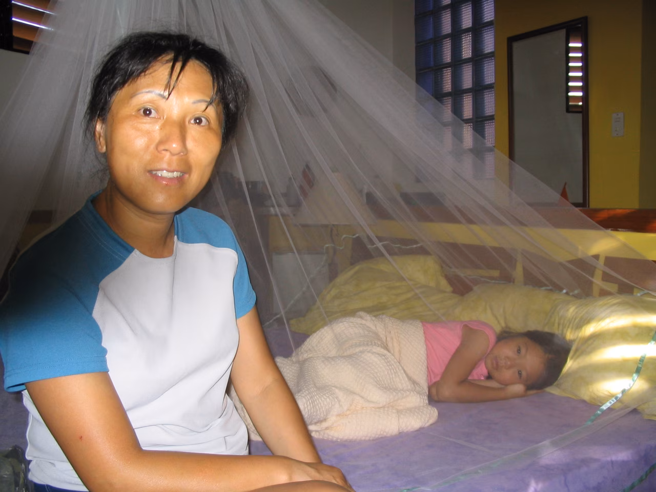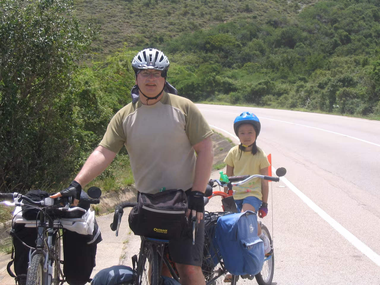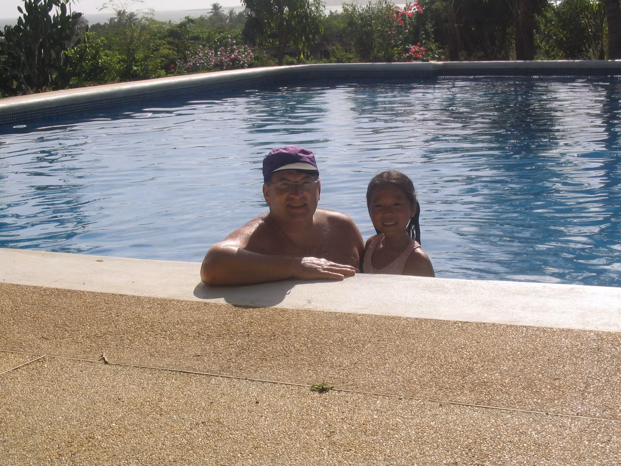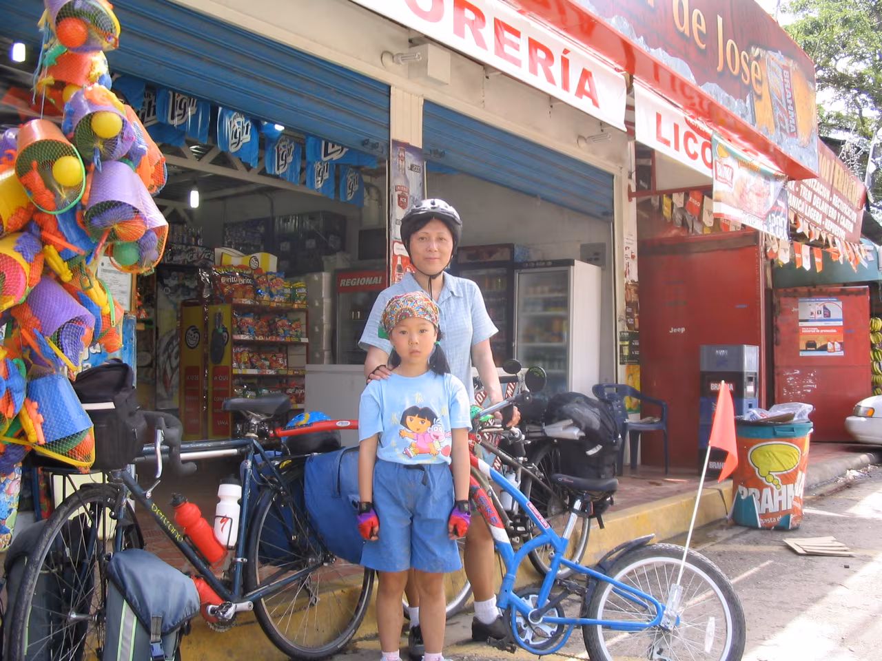 La nuit fut très bonne. Nous plions nos bagages. La visite à la plage d’hier a laissé des traces de sable dans la chambre. Nous déjeunons aux restants de pizza d’hier. On redescend les vélos du 4ieme étage. On reprend la route principale à basse vitesse. Il n’y a pas d’accotement, mais les automobilistes sont polis avec nous. Je crois qu’il n’y a pas beaucoup de cyclistes qui visitent l’île. Nous manquons la sortie pour Los Robles et nous de vous. Nous rebroussons chemin sur 1 km d’autoroute. Sur la route, la circulation est beaucoup moins dense. Nous sommes contents d’avoir tous les trois des “rétroviseurs”. La route est relativement plane, sinueuse et partiellement ombragée. La pluie plus tôt le matin a fait plusieurs flaques d’eau. Jenny et Victoria n’ont pas de garde-boue sur leurs vélos. Victoria est discrètement couverte de boue – elle n’est pas très confortable. Nous passons par la Asuncion (capitale de l’état). Les kms défilent facilement jusqu’à Playa El Agua. Nous magasinons de nouveau pour un hôtel. Les chambres sont beaucoup plus dispendieuses ici qu’à Porlamar. Nous arrêtons notre choix sur l’Hôtel Costa Linda Beach Resort – c’est un joyau de petit endroit, avec piscine. Victoria est emballée par la piscine, il est à peine 13h30 et notre chambre n’est pas prête. Nous devons revenir dans une heure. Nous retournons à vélo sur la rue devant la plage. On s’arrête manger des “empanadas”. Jenny et Victoria raffolent de ces choses. Un couple âgé de Hollandais nous jasons quelques temps – ils sont à leurs 18ième visite à l’île Margarita. Nous prenons quelques photos. où un Québécois s’offrent pour prendre une photo de groupe. De retour à l’hôtel, on se baigne. Victoria de même dans la piscine plusieurs heures – elle adore se baigner. En soirée, nous allons à chic restaurant pour souper, c’est très dispendieux. De retour à l’hôtel on se repose, sur le patio et dans la chambre. Plus tôt, Jenny a fait le lessive manuelle. Quel boulot!