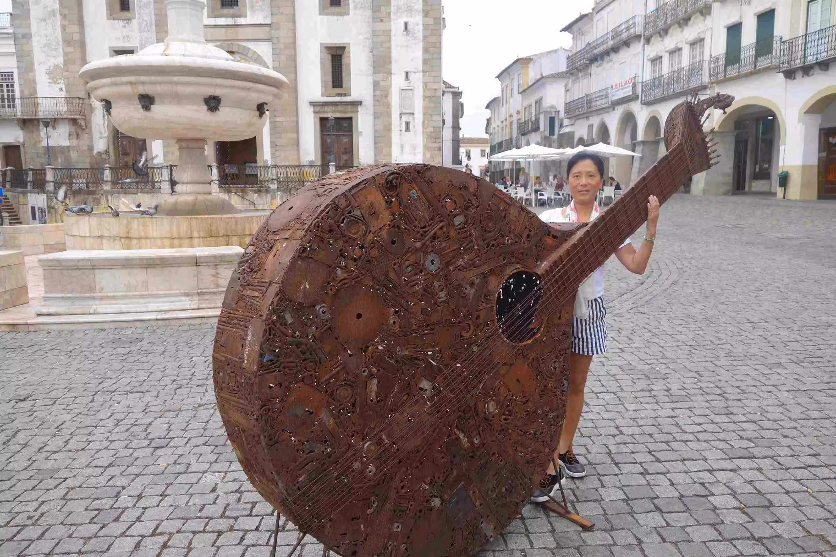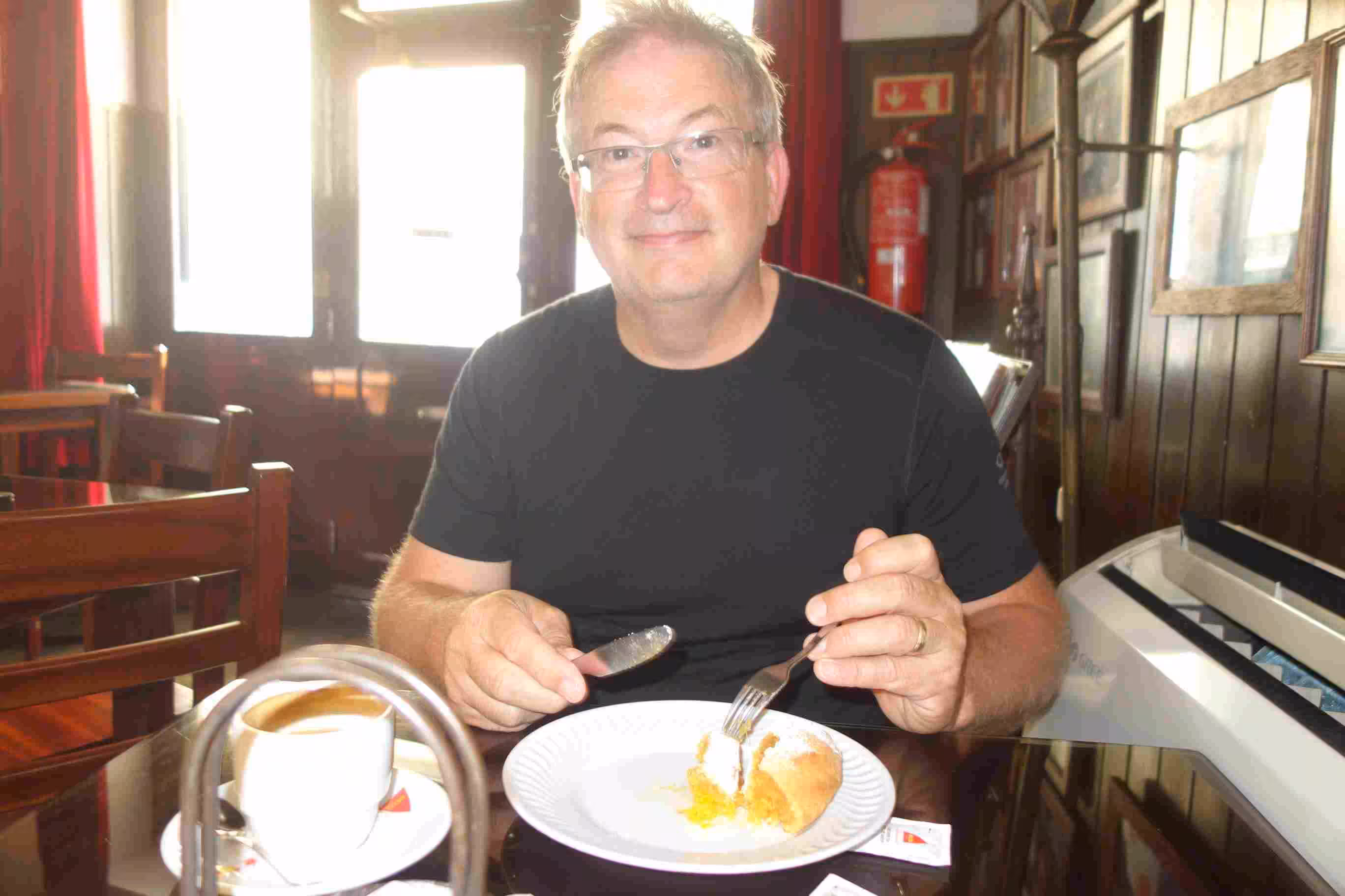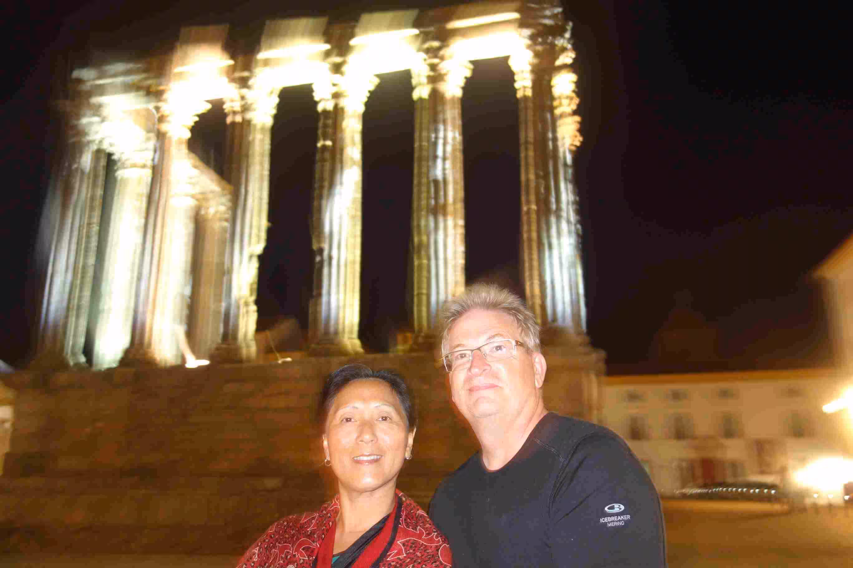 As we discussed over breakfast at a nearby bakery, we could have easily stayed an extra day or two in Lisbon but we had already made commitment to our next destination: Évora. Paulo, our apartment owner, showed up at 11am in time for our check-out. He graciously drove us to the nearby bus station. The one and half hour bus ride to Évora was pleasant as we took the two front seats for the third bus ride with Rede National Express – the perk of making ticket purchases on-line as we could select our seats. In Évora, we walked 15 minutes from the bus station to our hotel in the historic center of town. After some rest on our balcony, we went out to visit a well known bakery for some coffee and cake. Upon our return, we completed our travel arrangements for our next segment after which we went for an early supper. Back at our room we relaxed on our balcony till dark.