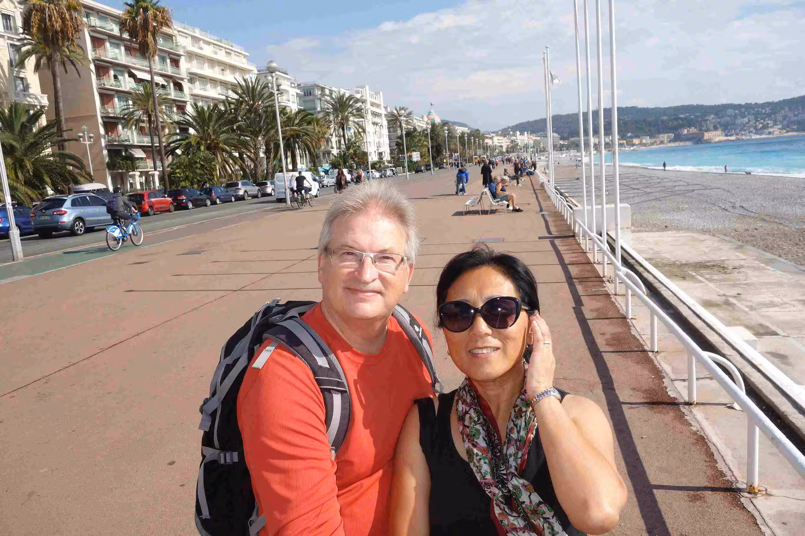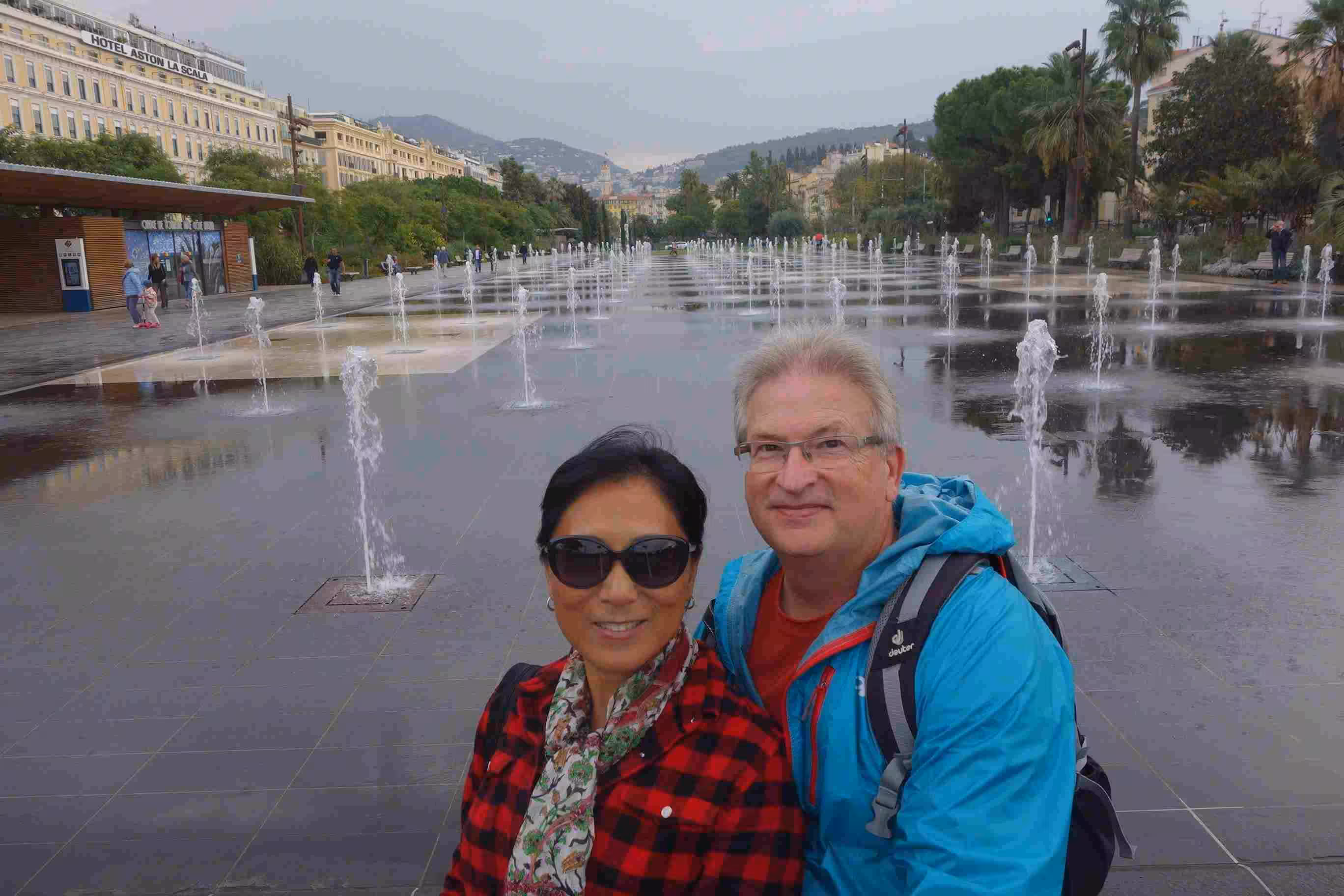 Clearly the weather in Nice was now calling for long pants. The hotel’s included breakfast was well appreciated. We set out to explore some of the key tourist sites – along our walk on the Promenade des Anglais we encountered a large and touching memorial to the victims of July 14th’s attack in Nice. We wandered also into the old city center and the nearby hills offering beautiful views of the city. We got initiated to the tram on our way back to the hotel. We ended up having some Chinese fast food for supper after some unsuccessful restaurant visits.