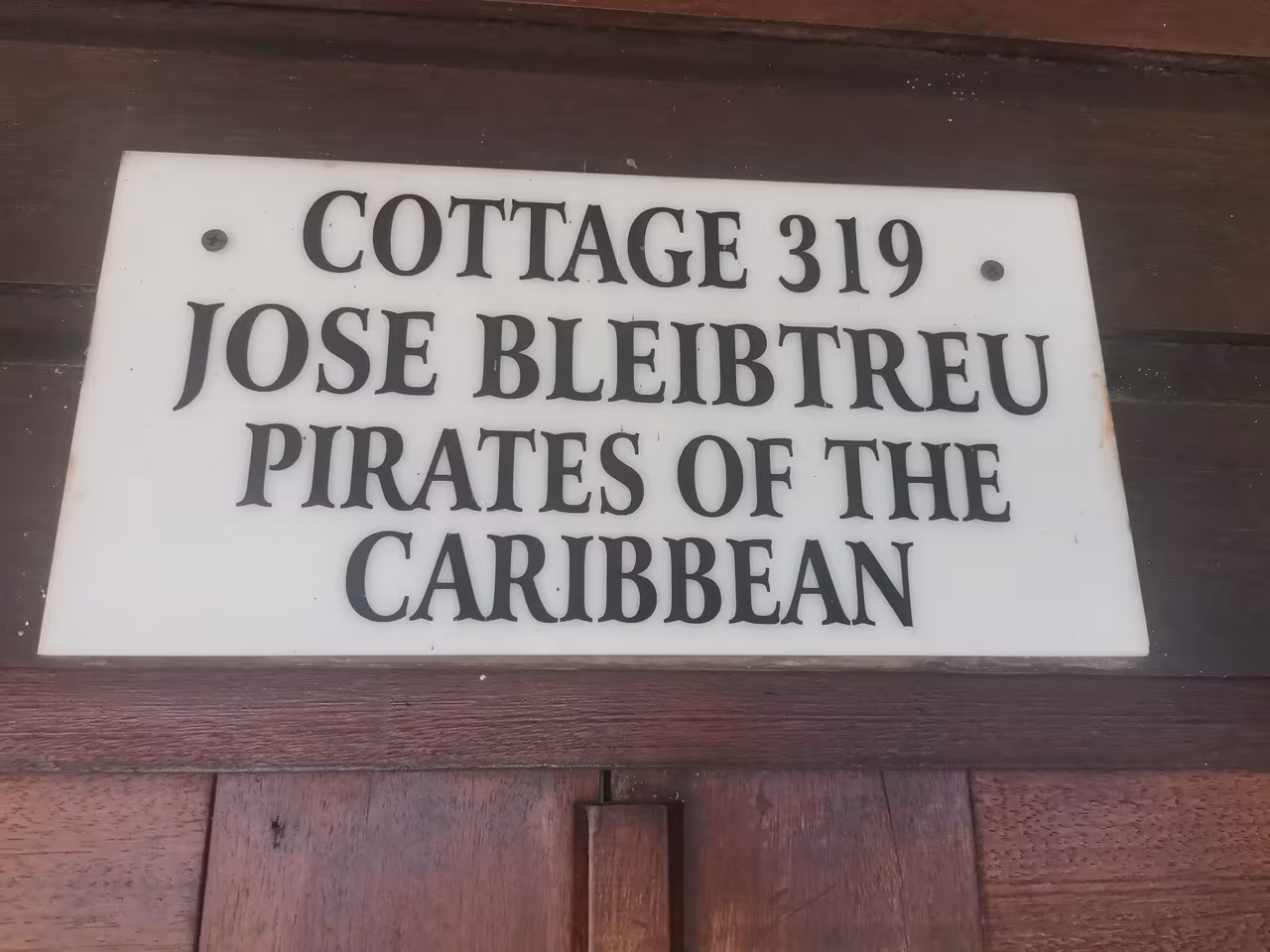 Interesting fact: The complex of 18 cottages where we’re staying hosted film crew members during the filming of the Pantano River scene in Pirates of the Caribbean: Dead Man’s Chest (2006). Each cottage has a plaque above the door commemorating who stayed there.