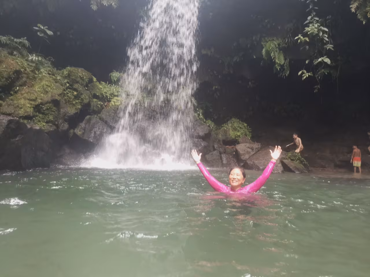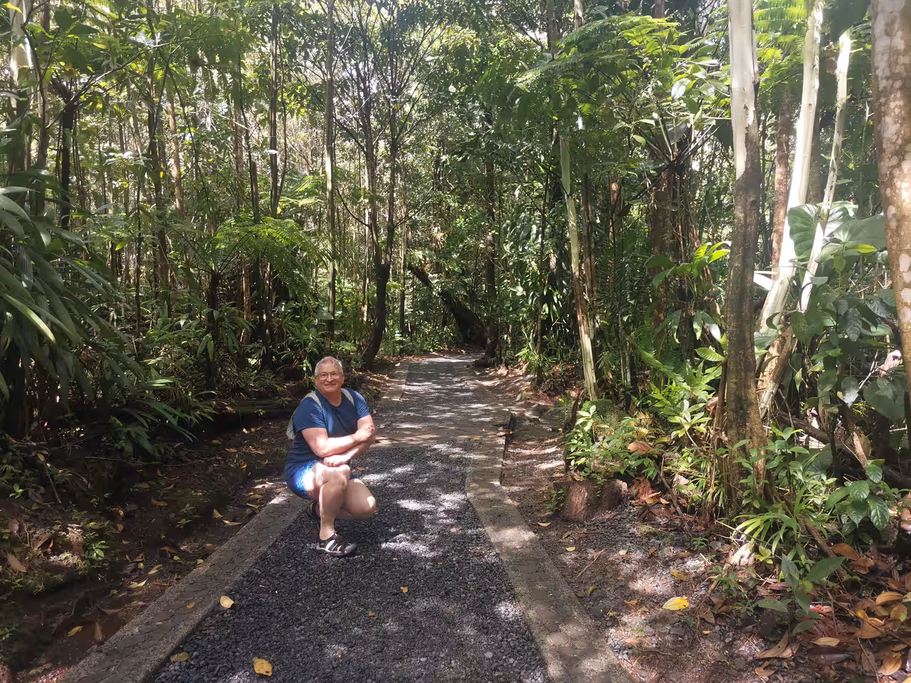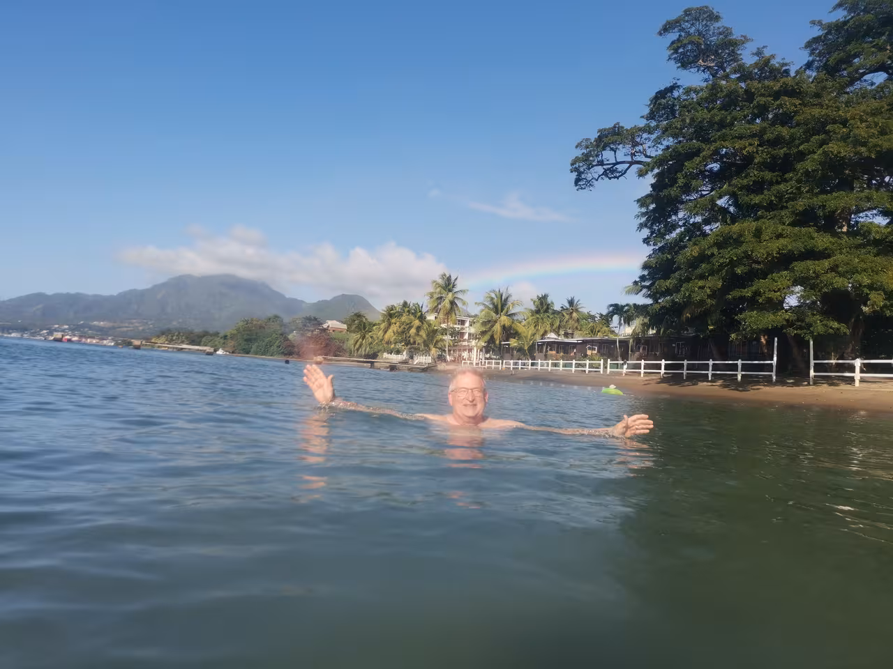 About five kilometers before the car park, the road improved significantly. Upon arrival, we followed a well-maintained path leading to the Emerald Pool. We enjoyed a refreshing swim for around twenty minutes and took plenty of photos along the way. For the return journey, we opted for a longer but much better-conditioned route. Back at the cottage, we ended the day with a short swim at the beach right in front of our complex.