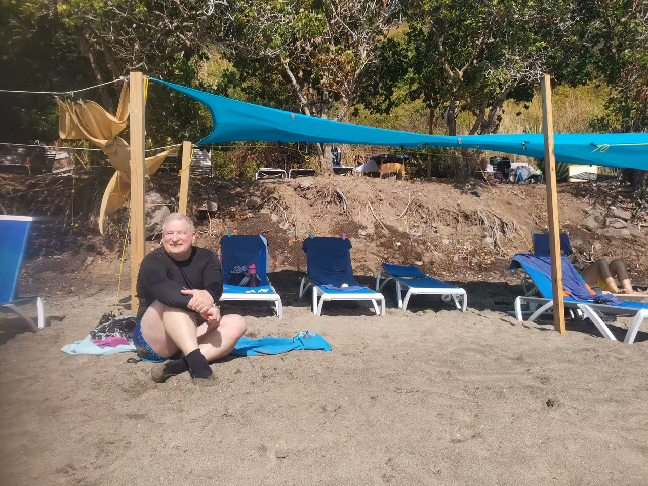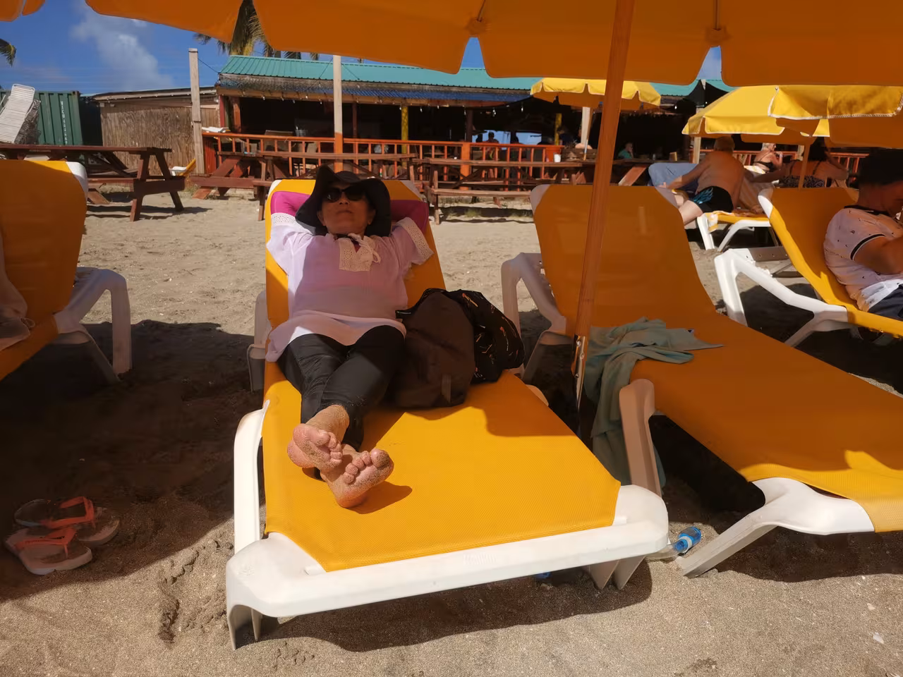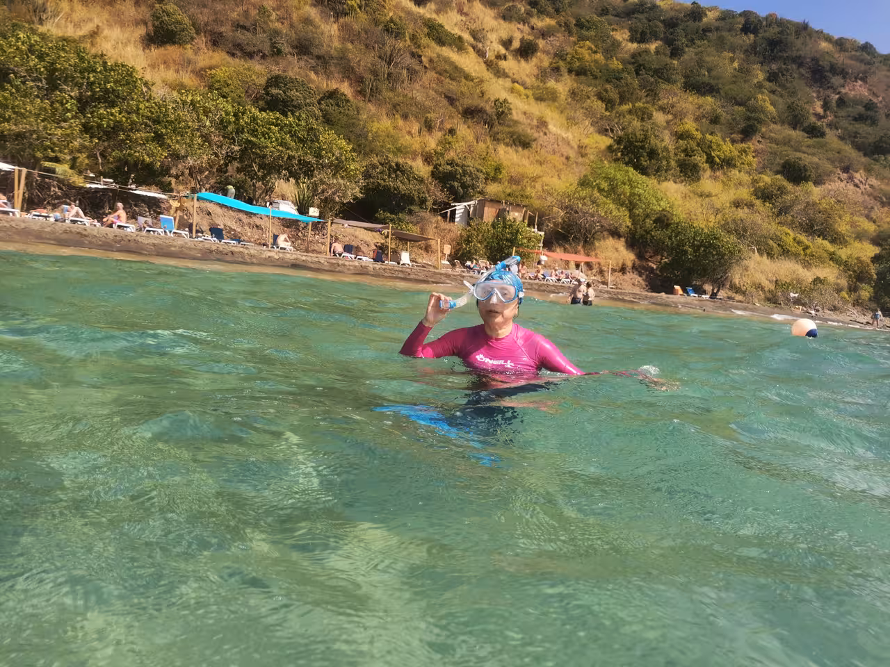 After our bank visit, we drove to our first snorkeling spot. It took a while to finally find a reef with colorful fish activity. After about an hour, we moved on to a second snorkeling location along a popular beach. We rented sunbeds and an umbrella for the afternoon. The “reef” here turned out to be a man-made underwater boulder wall. While the snorkeling provided good exercise, we’ve experienced far more captivating underwater scenery elsewhere. Nonetheless, we were glad we had brought our own snorkeling equipment, as renting gear for both locations would have cost us $50 USD.