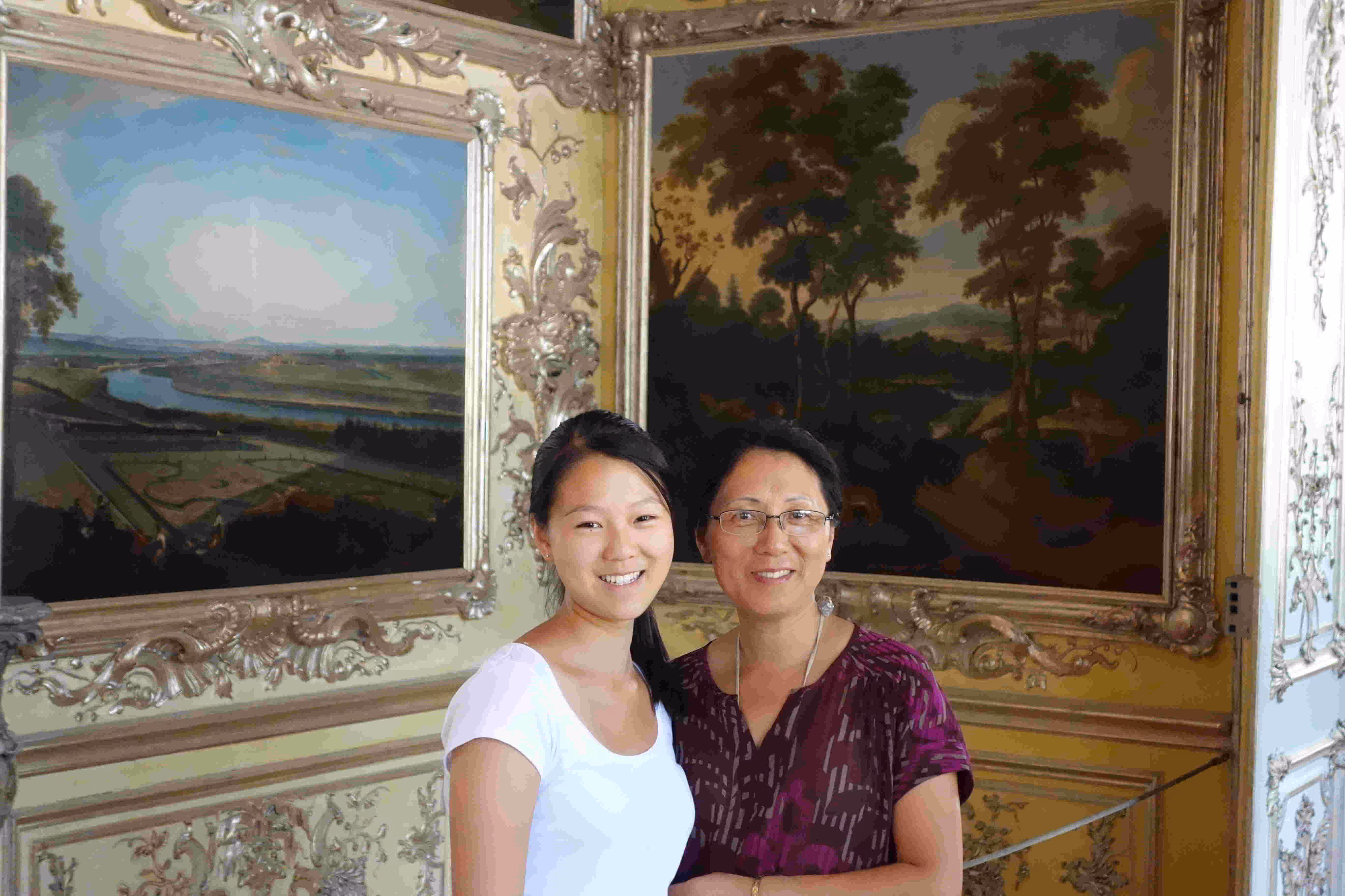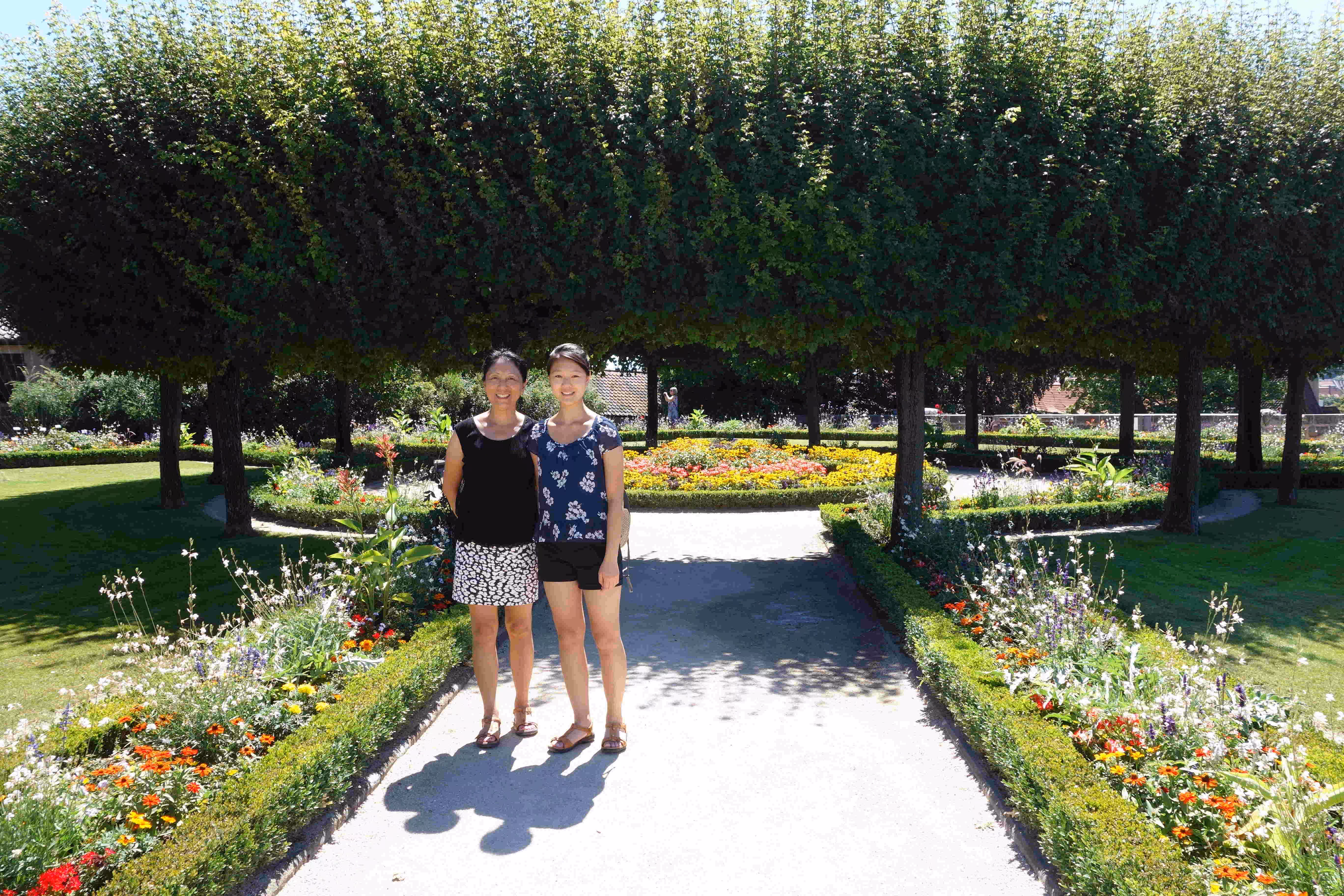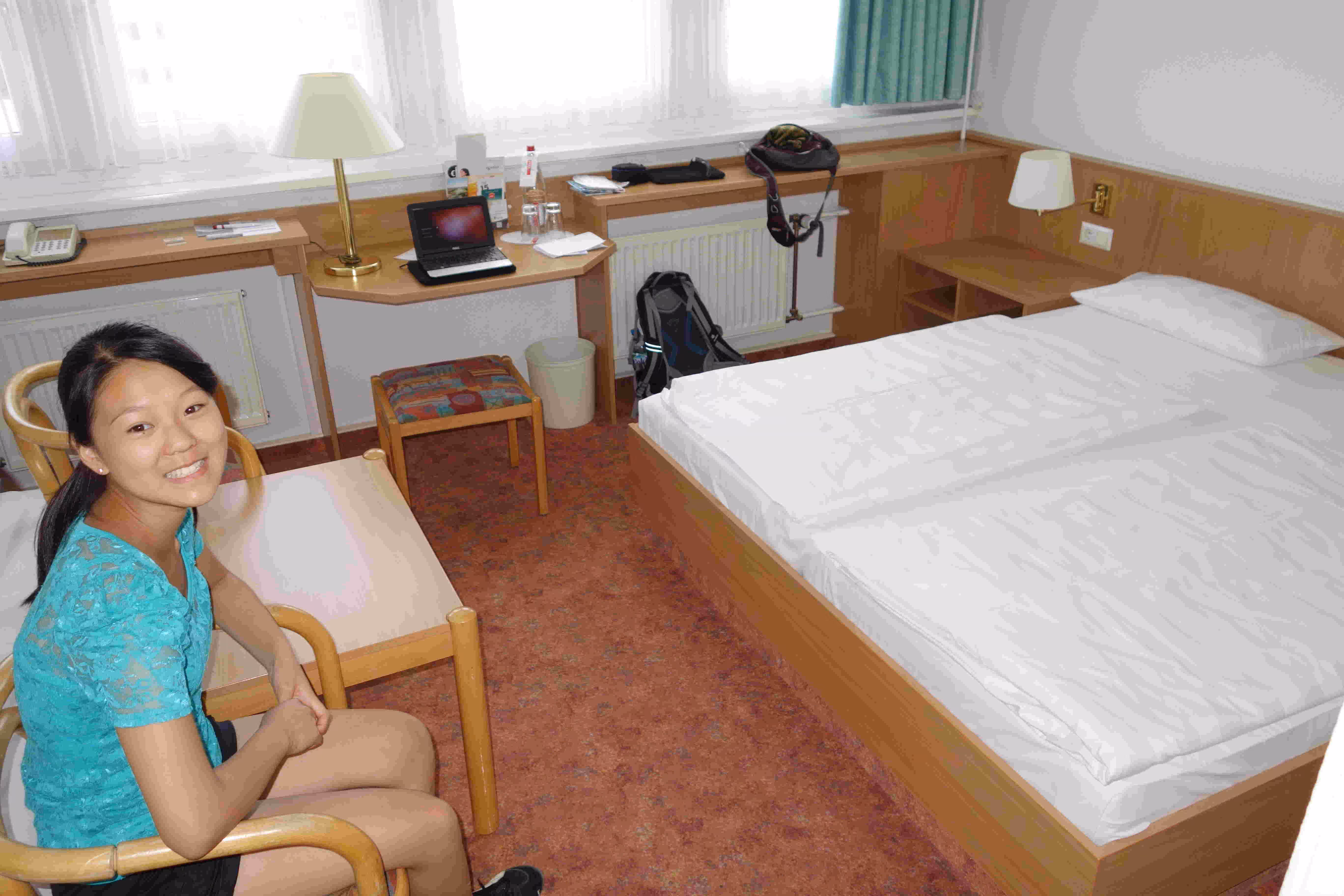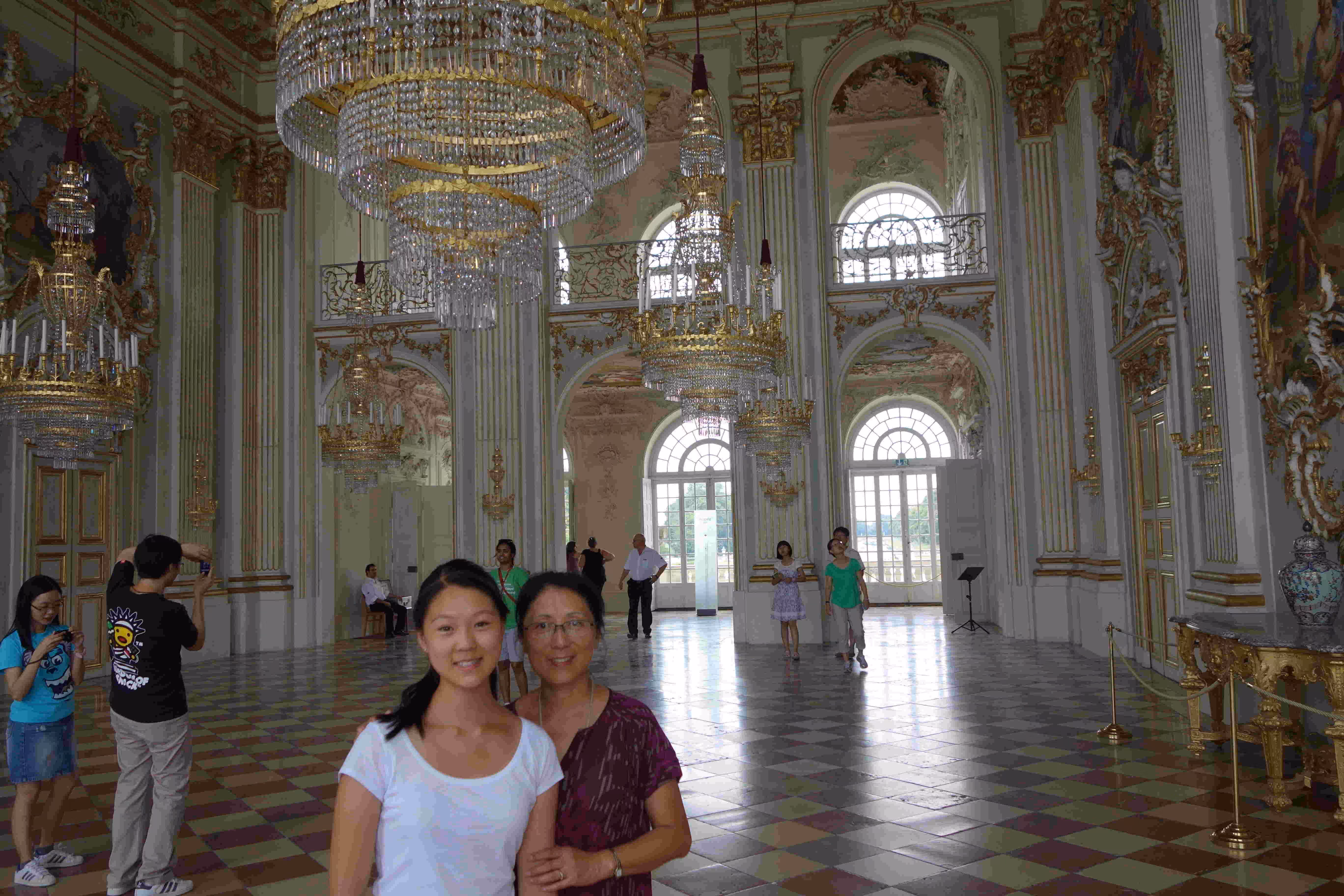 We woke up at 9:15am this morning to make sure we could catch the courtesy buffet breakfast at the hotel which ended at 10:30am. The breakfast was a very nice surprise as it was plentiful with friendly staff. We discovered that the S-Bahn station was closed on weekends until September. We end up taking the SEV city bus to the city center. Jenny and Victoria were again excited by all the clothes stores along our walk. We stopped for the noon carillon (glokenspiels) show at the residenz. Jenny and Victoria took 30 mins to do some shopping while I listen to an Ecuadorian musician group on the pedestrian street. We encountered a few musicians along the way, namely Ivan who played the accordion like no one we had seen or heard. The guy really got into his music to the point where Jenny initially thought he was a blind musician. We later took the tram to visit the past royal family’s summer palace. We spent a few hours visiting the museum and the many buildings in the vast garden/park. Before taking the tram back to the hotel, we had some ice cream. The tram ride was not very pleasant due to the excessive heat. At the hotel, we looked up some recommended restaurants for winner schnitzels. Unfortunately, the restaurant we had chosen was fully booked this Saturday evening. We resigned ourselves to visit the German restaurant across the street from of our hotel. At the restaurant, we became concerned by the fact that we appeared like the only patrons in the place. Nonetheless we appreciated the attention the old owner gave us. By the time we finished our meal, the outside patio had filled up. Back at the hotel, we went for a swim at the hotel pool.